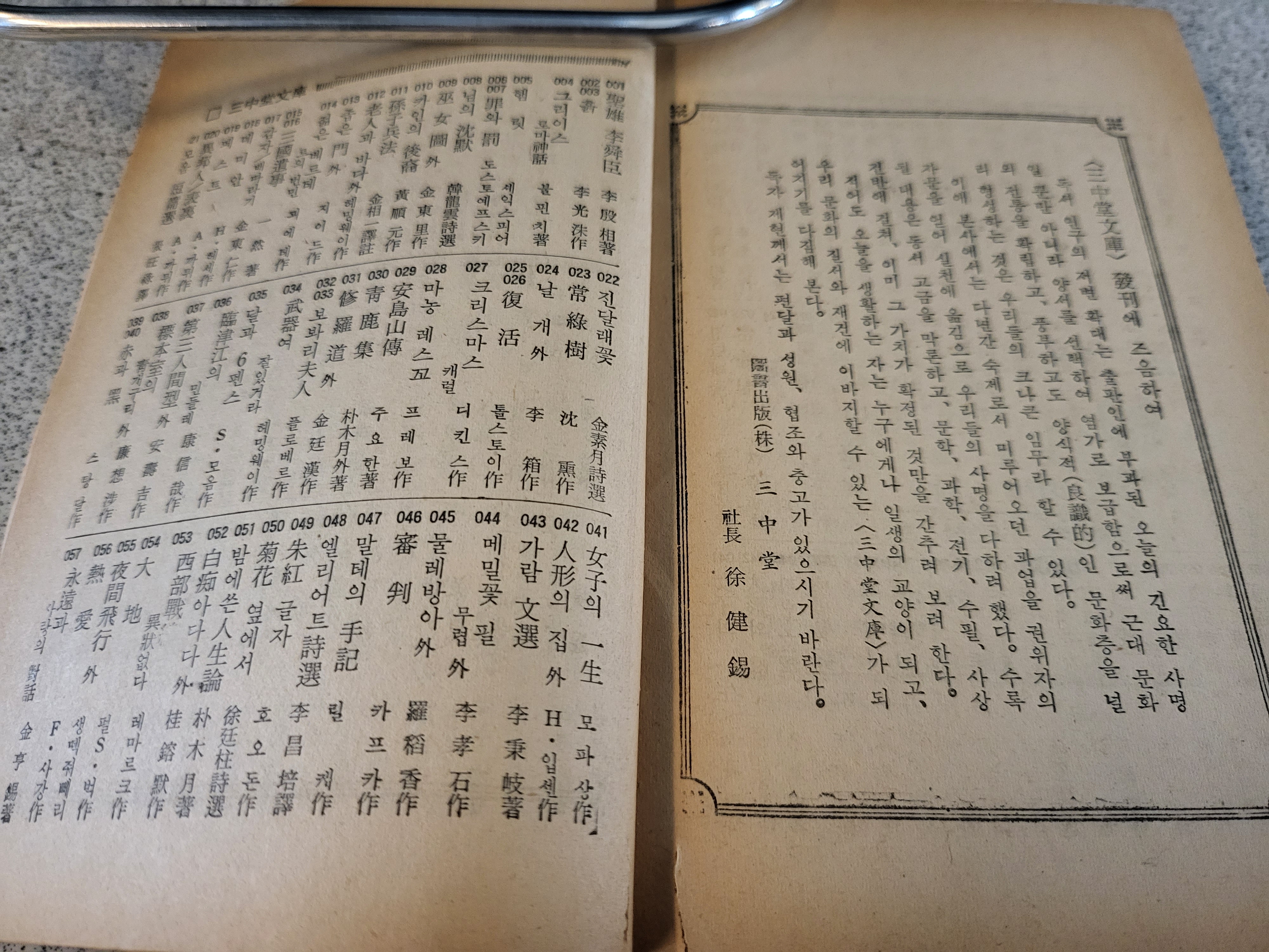 출판 혹은 독서문화라는 측면에서 60~70년대는 문고본시대라 할 만하니 그 시대를 대표하는 상품 중 하나가 이 삼중당문고였다. 기억에 분량이 가장 방대하고 무엇보다 염가였으니 내가 대학을 다닌 80년대 중후반까지도 서점가에 보였으니 나 역시 그 독자였다.