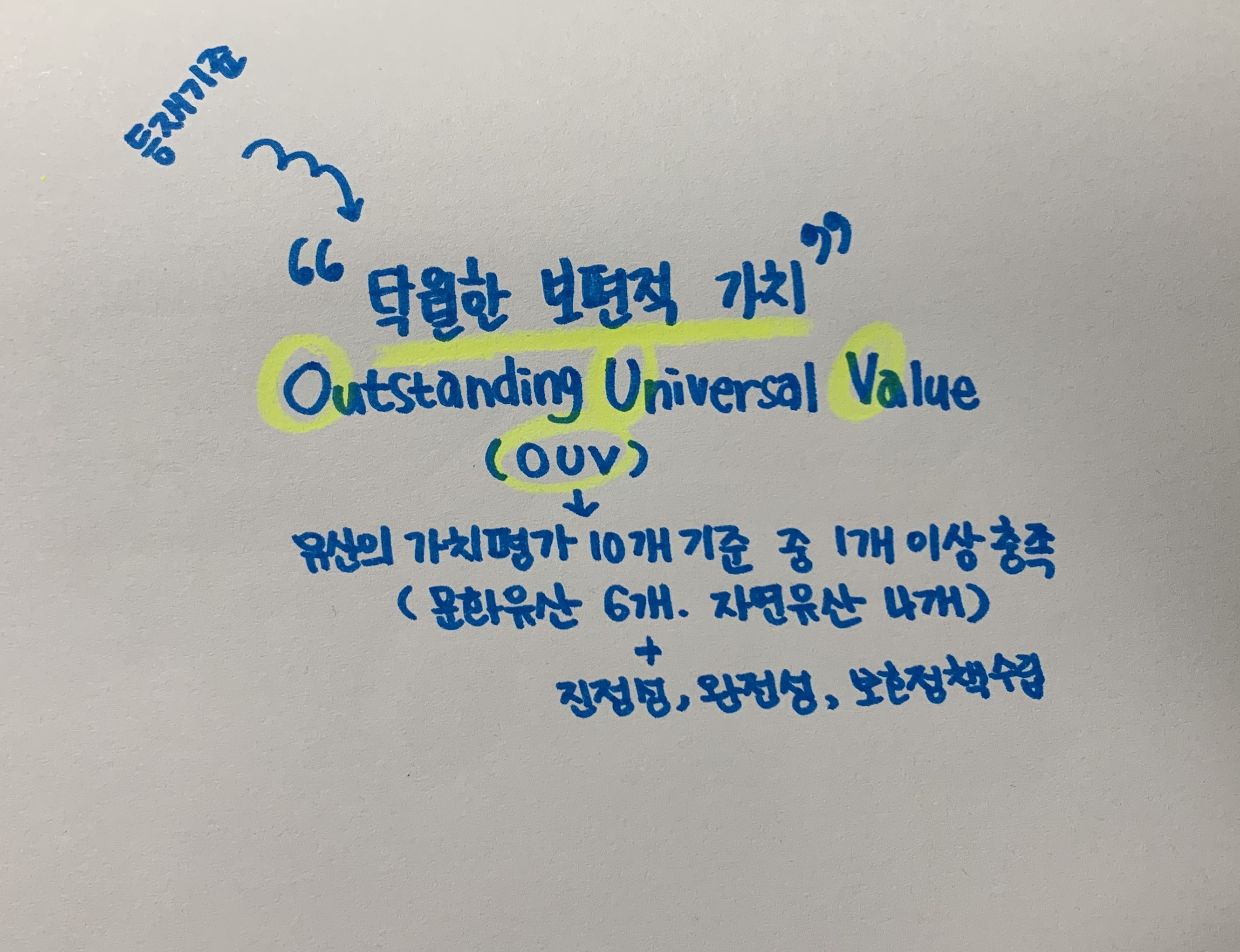 또한 OUV 부분도 “등재기준충족+완전성(문화유산은 진정성도)+보존관리” 세 가지가 모두 충족/수립되어야 만 합니다.