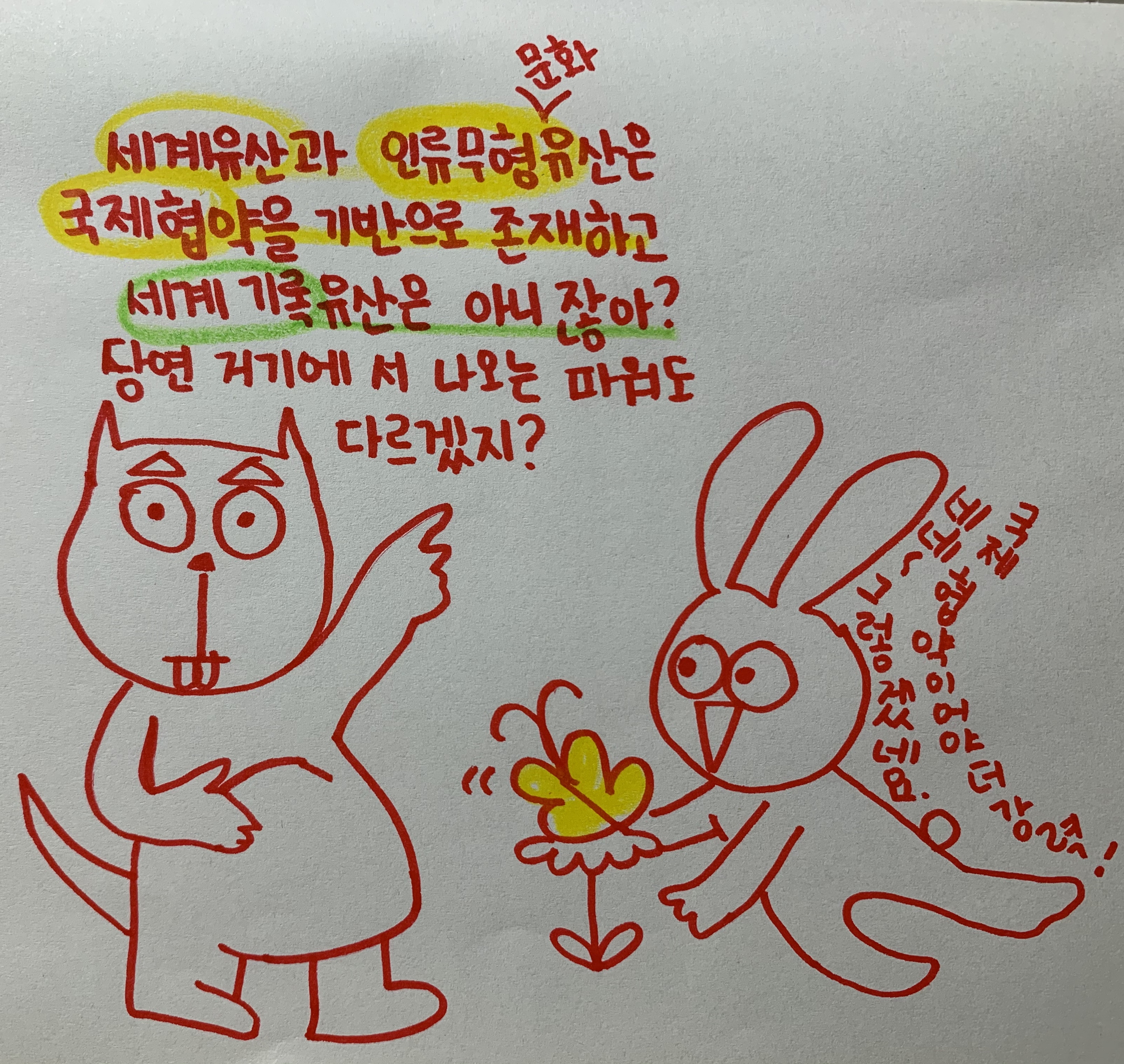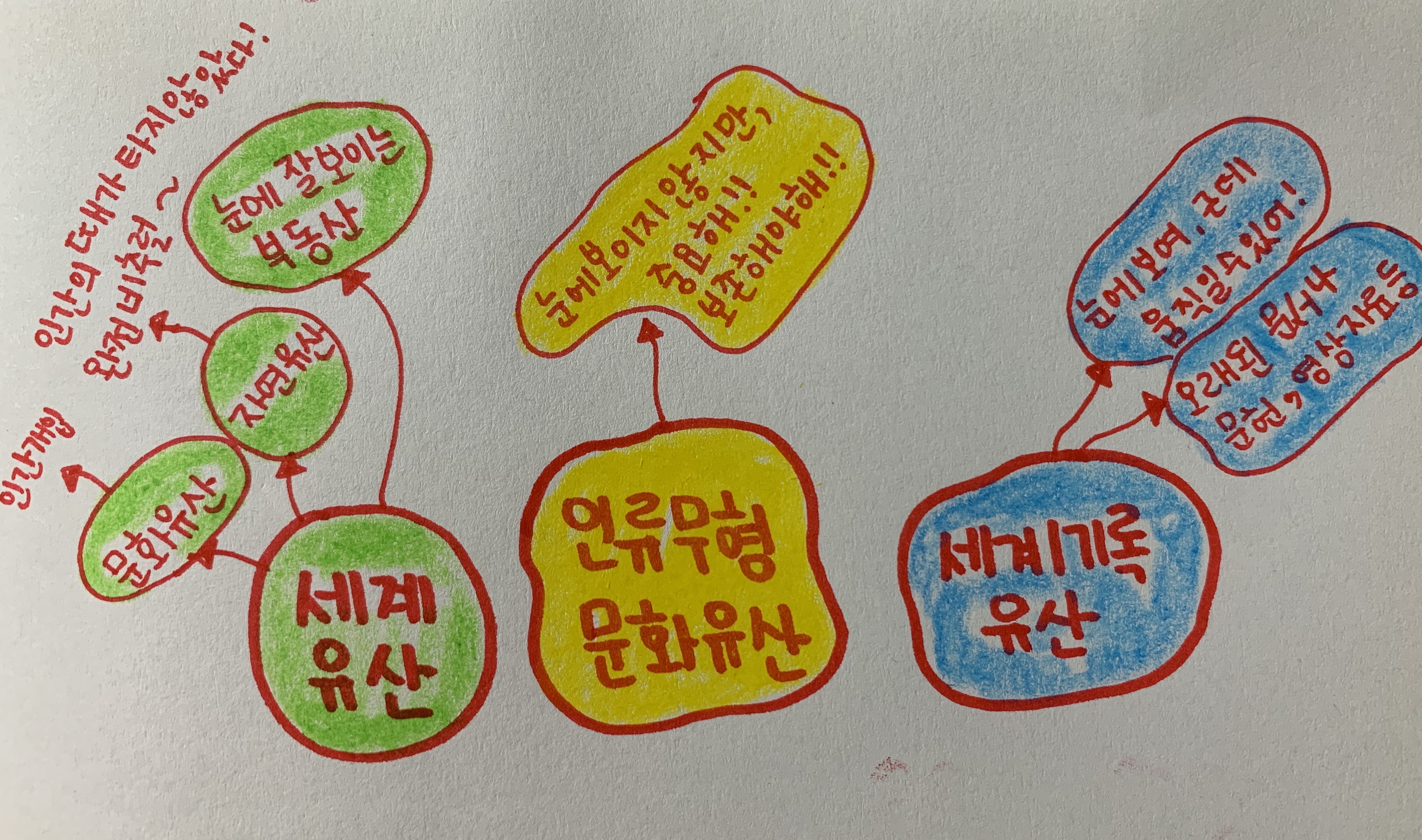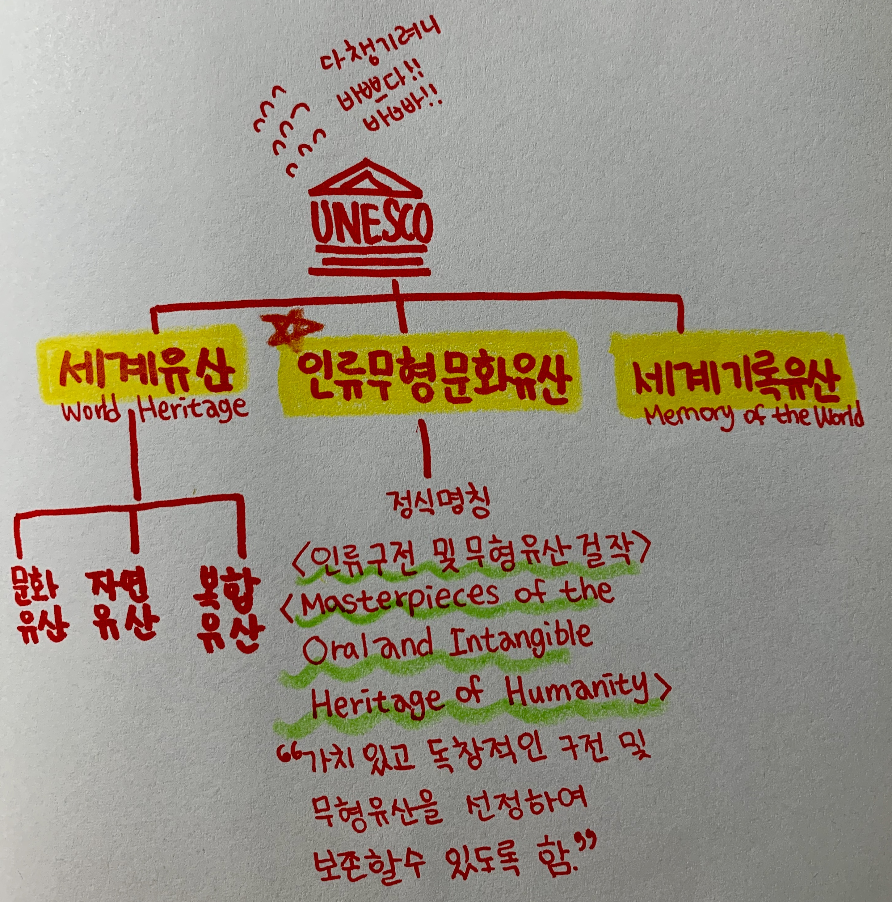 우리가 말하는 세계유산으로 흔히 다음 세 가지를 혼용해서 마구잡이로 씁니다. 1. 세계유산 world heritage 2. 인류무형문화유산 Intangible Cultural Heritage of Humanity 3. 세계기록유산 memory of the world..