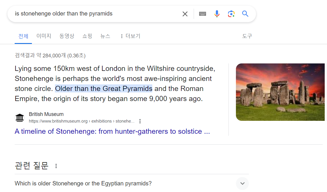 저 스톤헨지. 저건 등장시기가 논란이 많을 줄 아는데, 아마 초기 피라미드랑 엇비슷하지 않을까 기억하거니와, 저기서도 저런 논리가 통용한다. 피라미드보다 앞선다!
