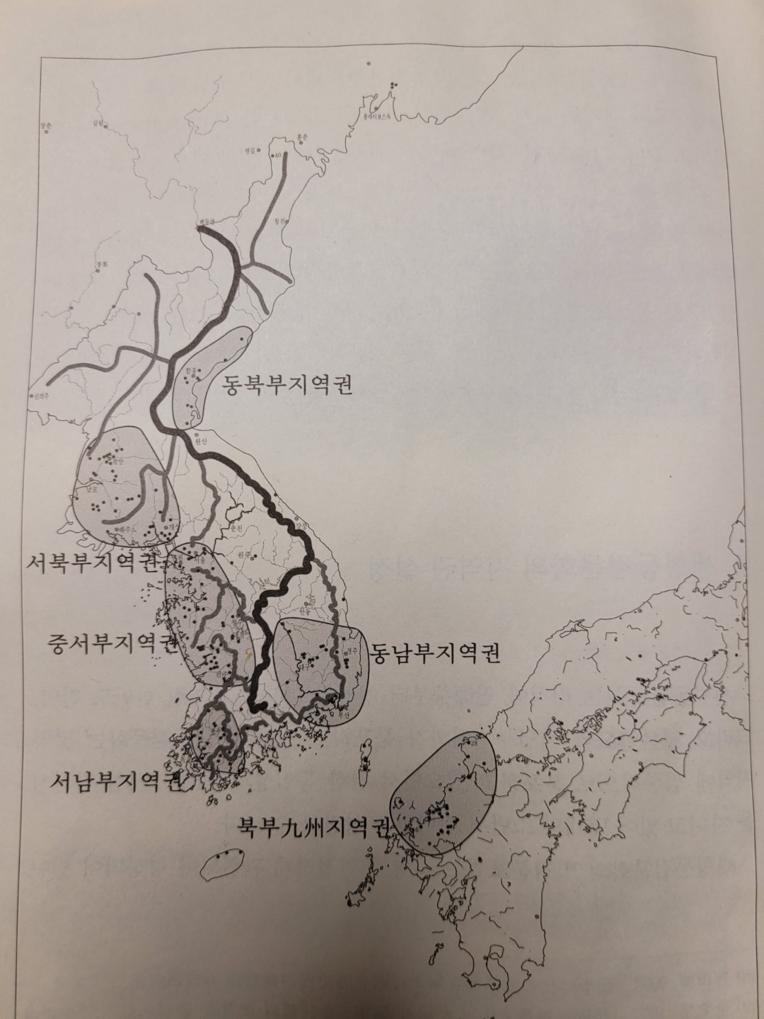세형동검 분포도를 보면, 여러 개 권역으로 나뉘는데 그 중 동해안쪽으로는 동북부지역권이 있다.