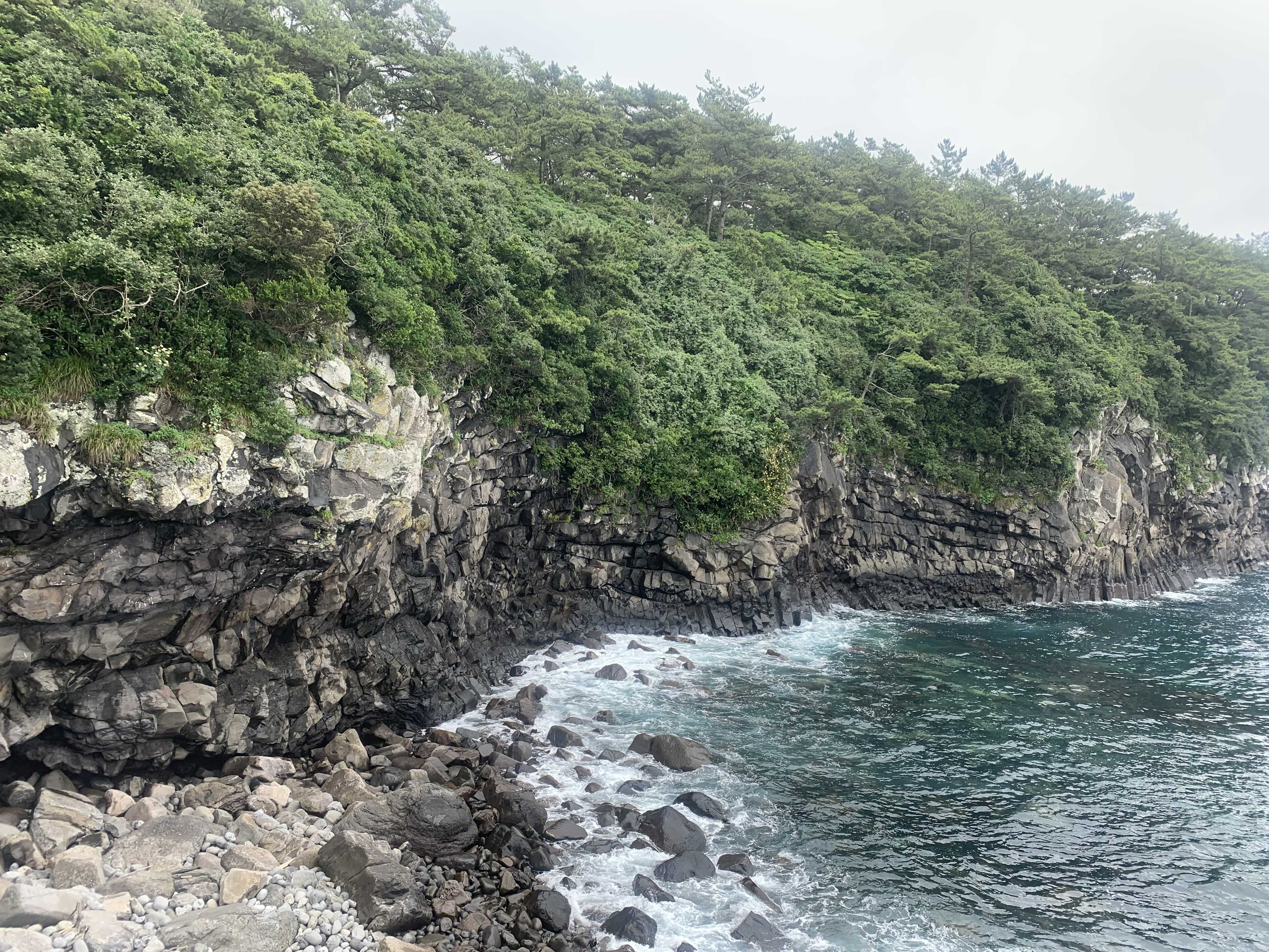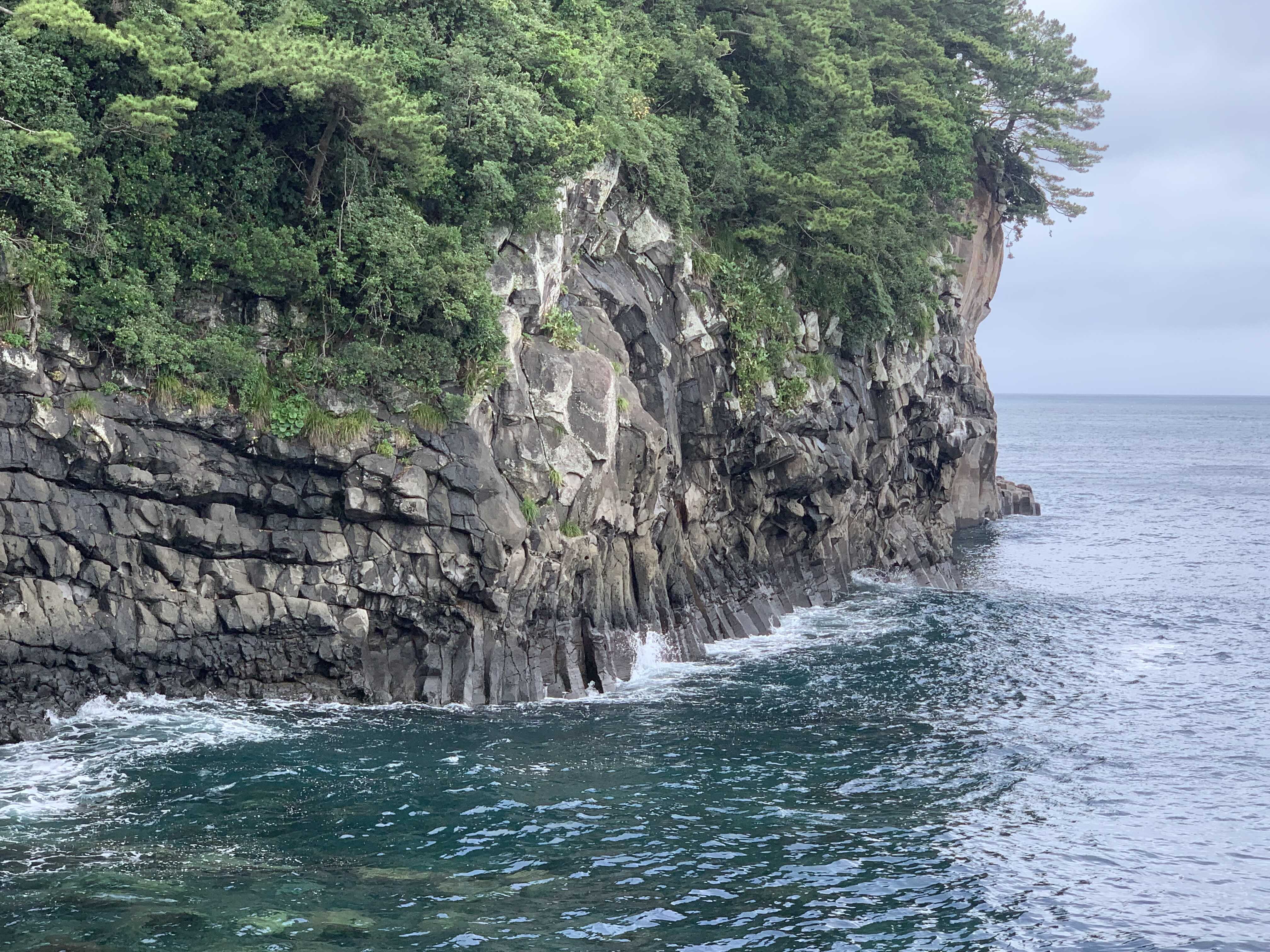 소정방폭포에서 보는 검은 해안절벽과 푸른 서귀포 바다도 참 멋집니다.