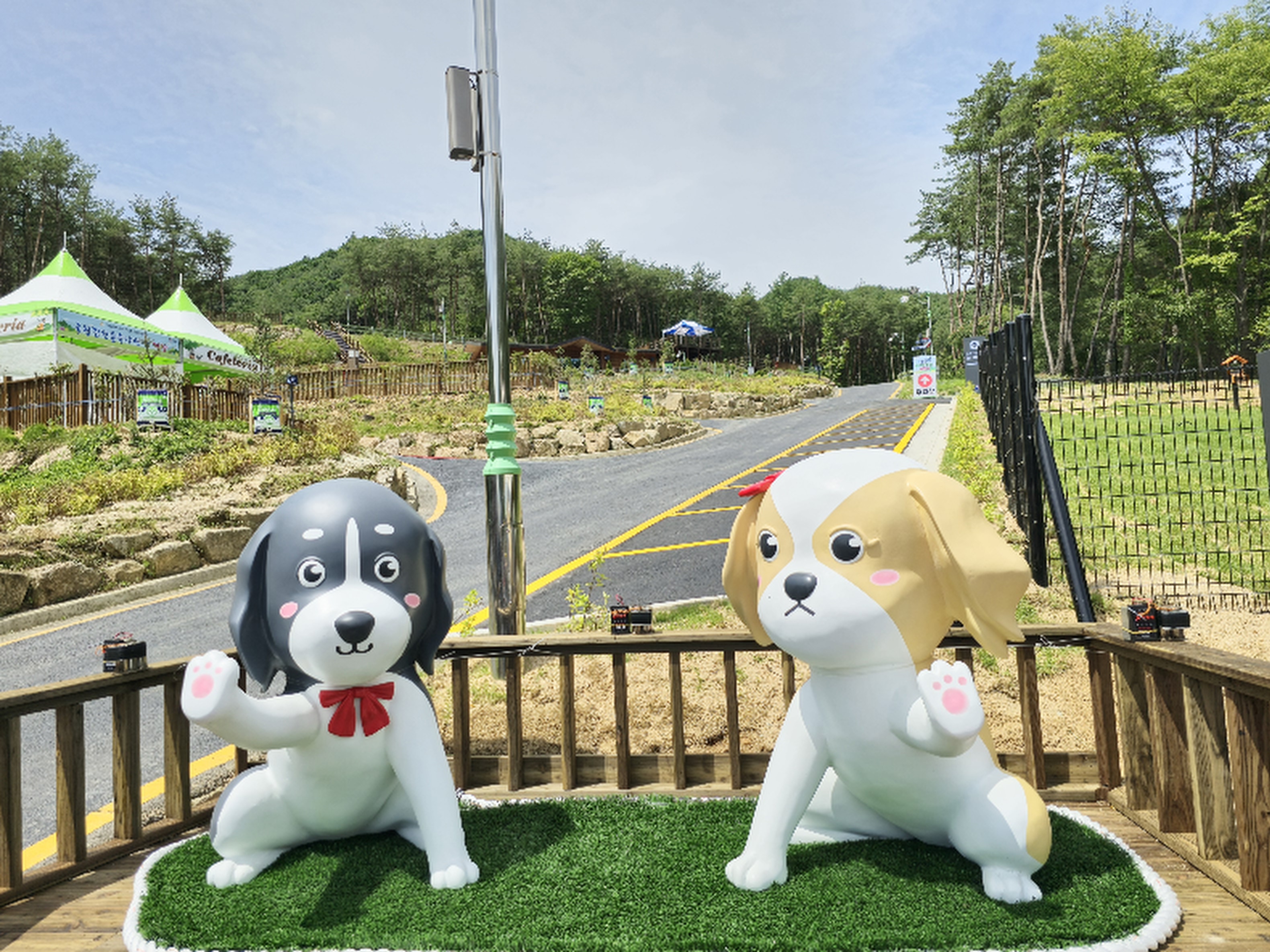 * 반려견 운동장, 반려견주를 위한 쉼터 등 기반시설, 안내판, 조형물 등