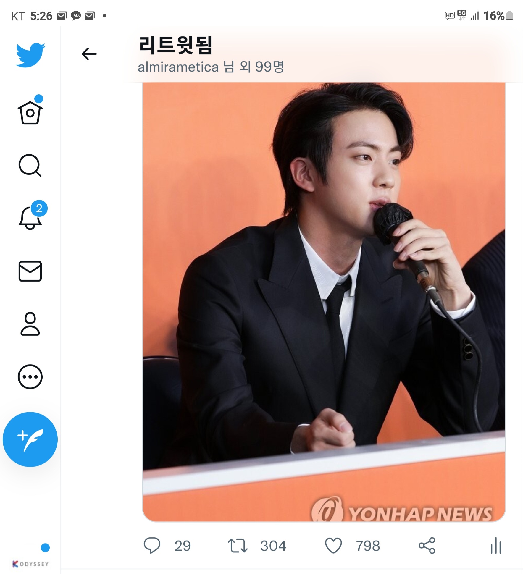 다시 그걸 우리 트위터 계정 @korea_odyssey억 걸었더니 지금 현재 반응이 이렇다.