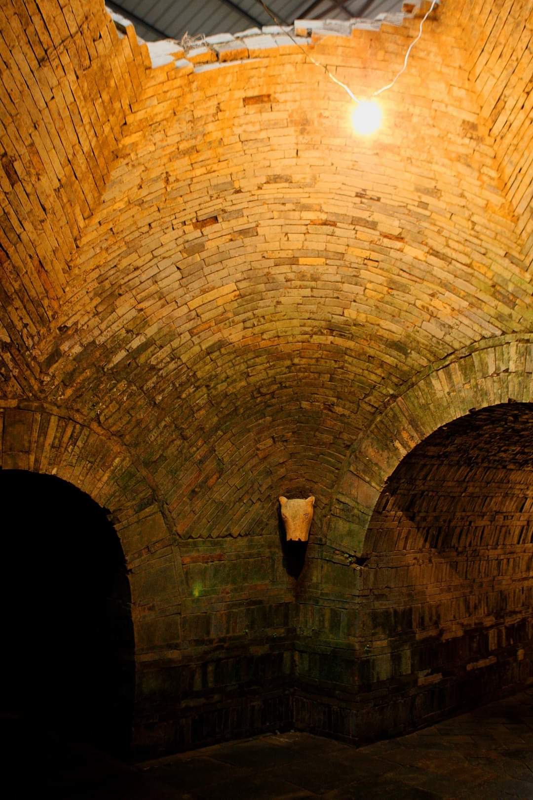 전실은 도면에서 보듯이 전실前室과 후실後室이 있다. 또 각 전실 양쪽 벽체 중앙에는 이실耳室이라 해서 딸린 공간을 별도로 마련했다. 전실과 후실 네 귀퉁이네는 돌로 만든 황소대가리를 벽 중턱에 박았으니 이는 등잔대였다.