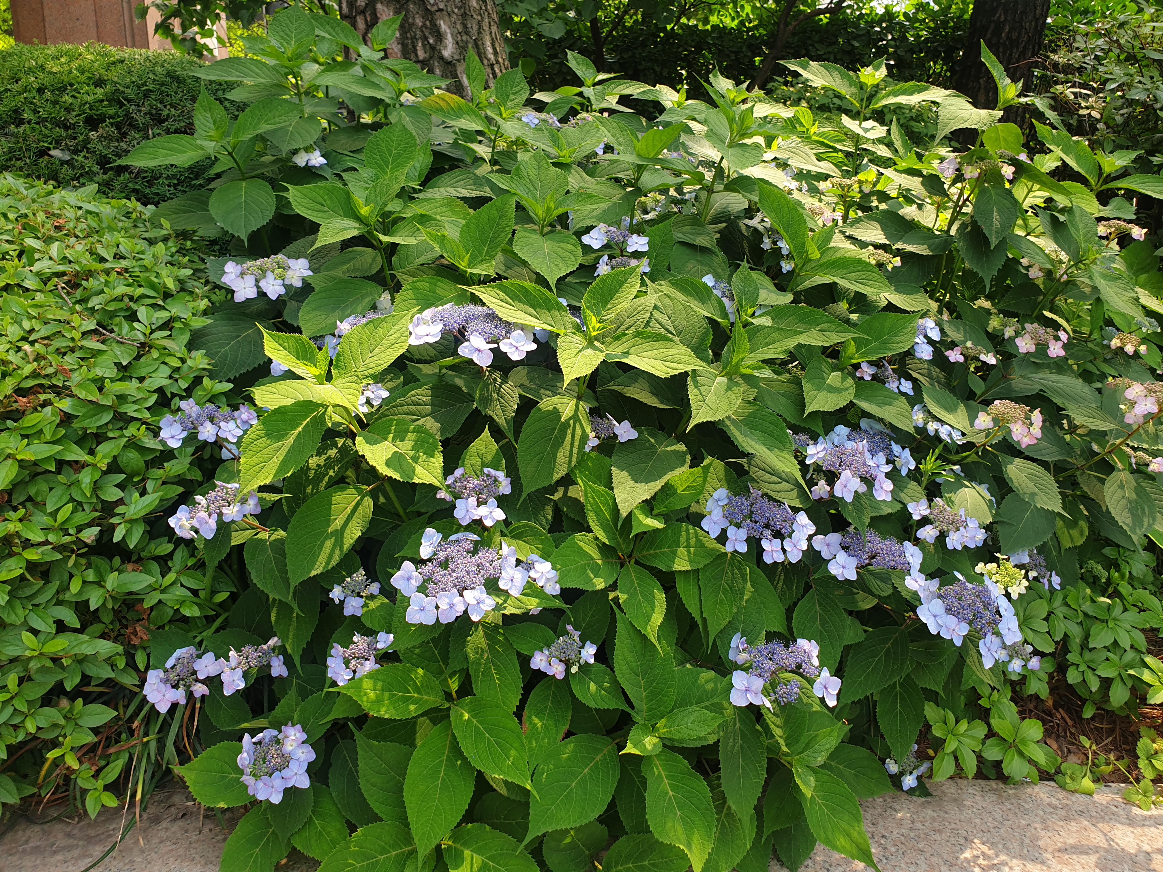 수국은 다른 꽃에 견주어 핌이 느리다.