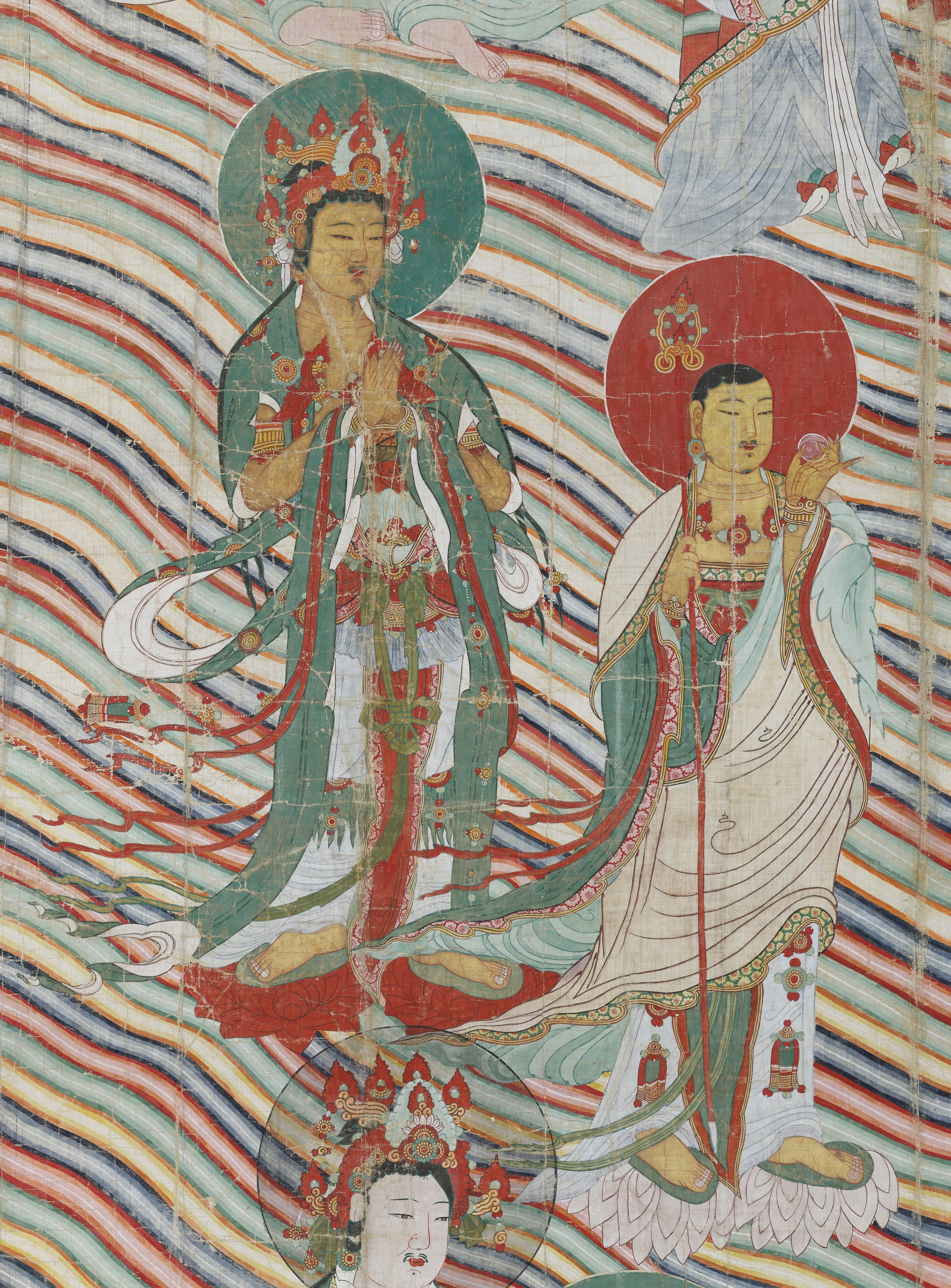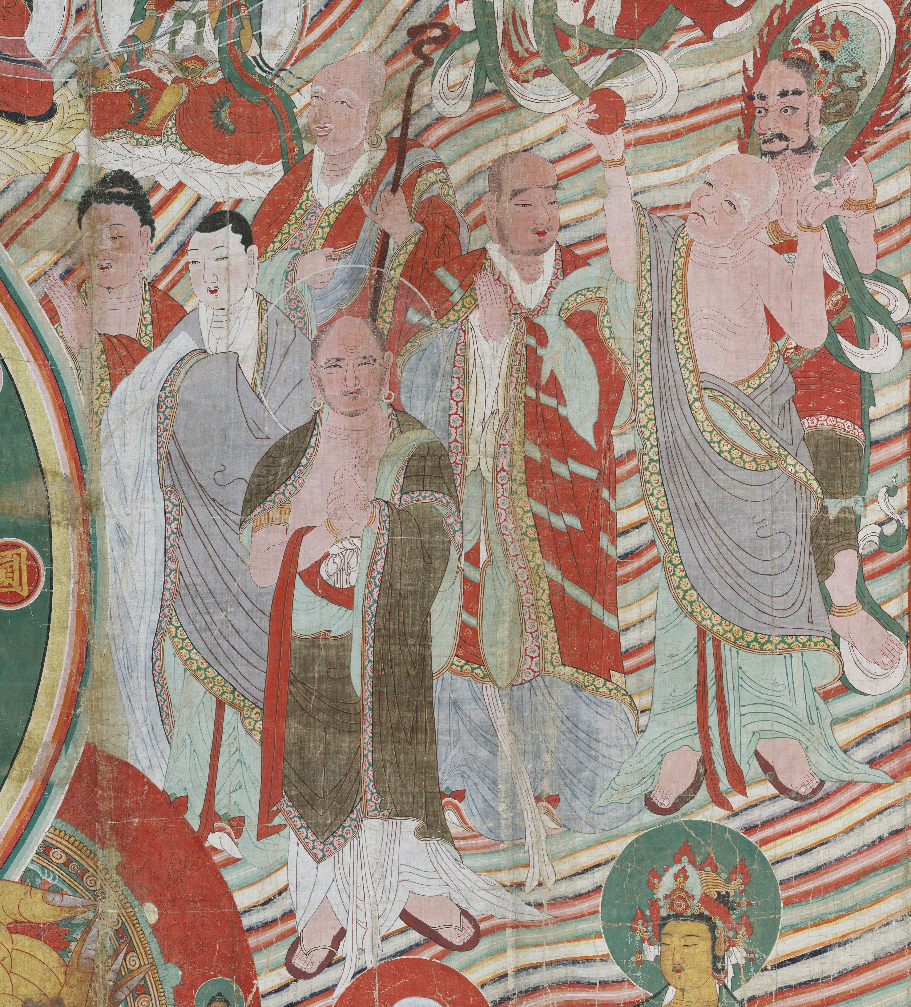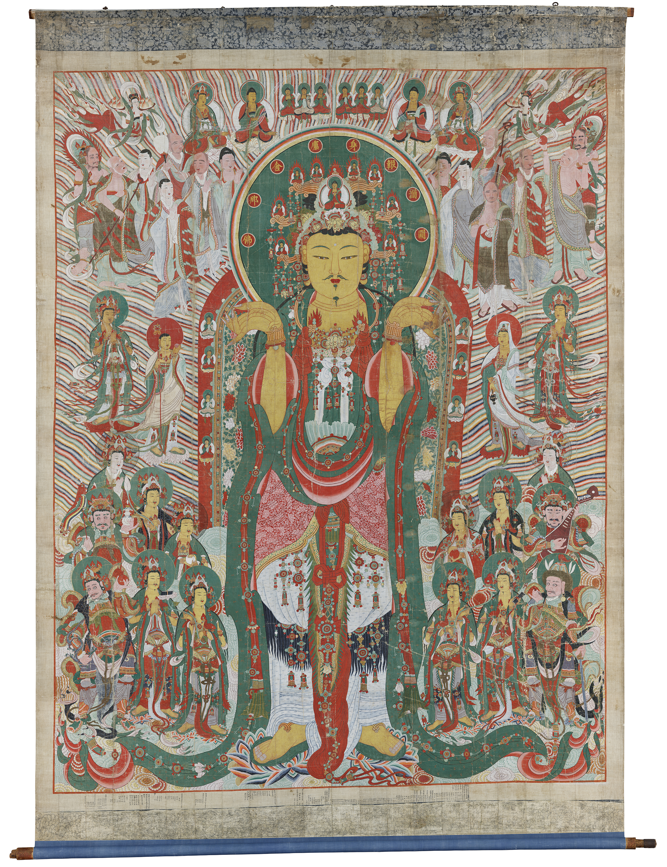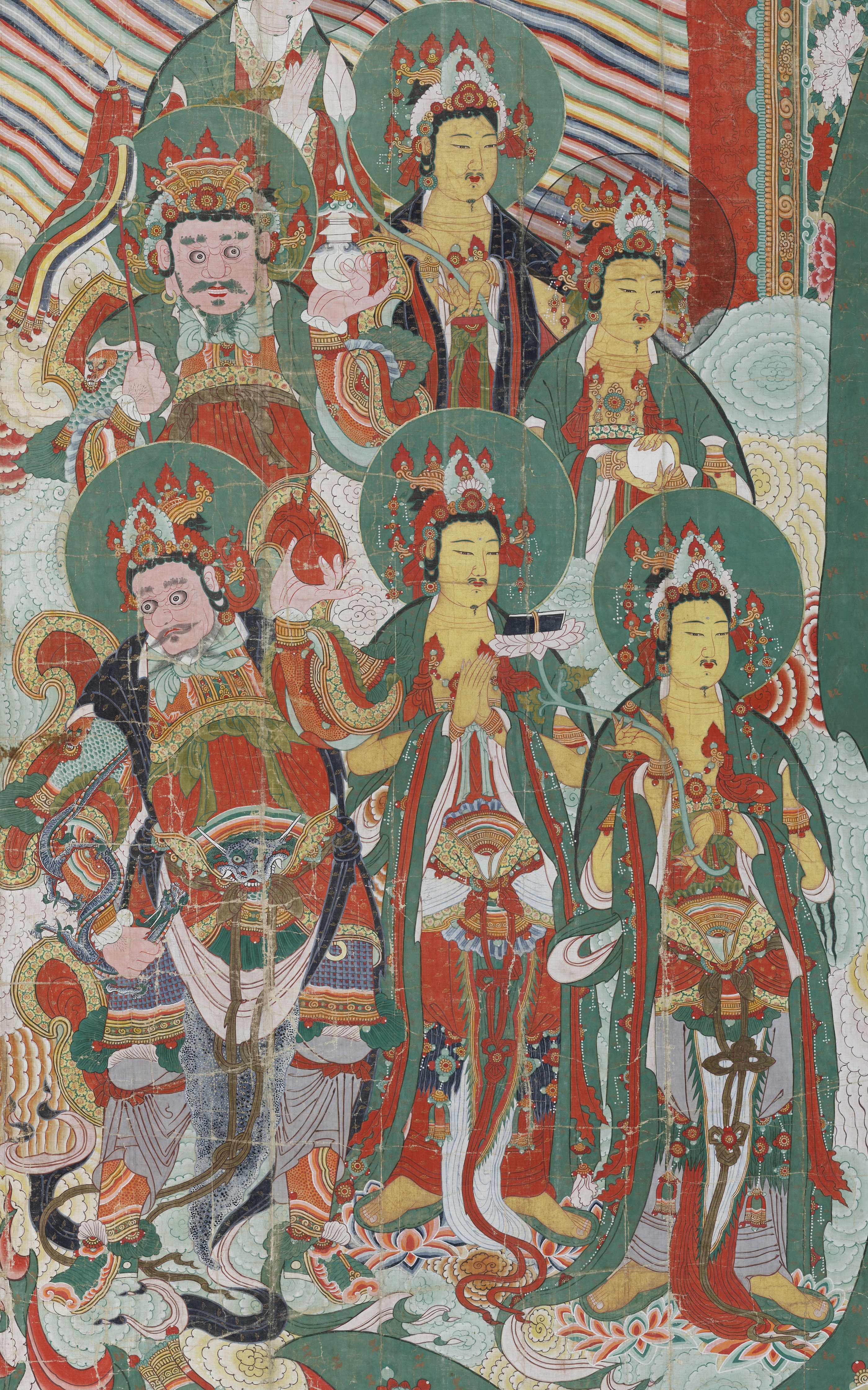 Huge scroll paintings of Buddhist deities for massive outdoor assemblies defy the widespread notion of Buddhism of the Joseon Dynasty as a faith for stoic spiritual practice and abstinence, persecuted by Confucian-oriented rulers.