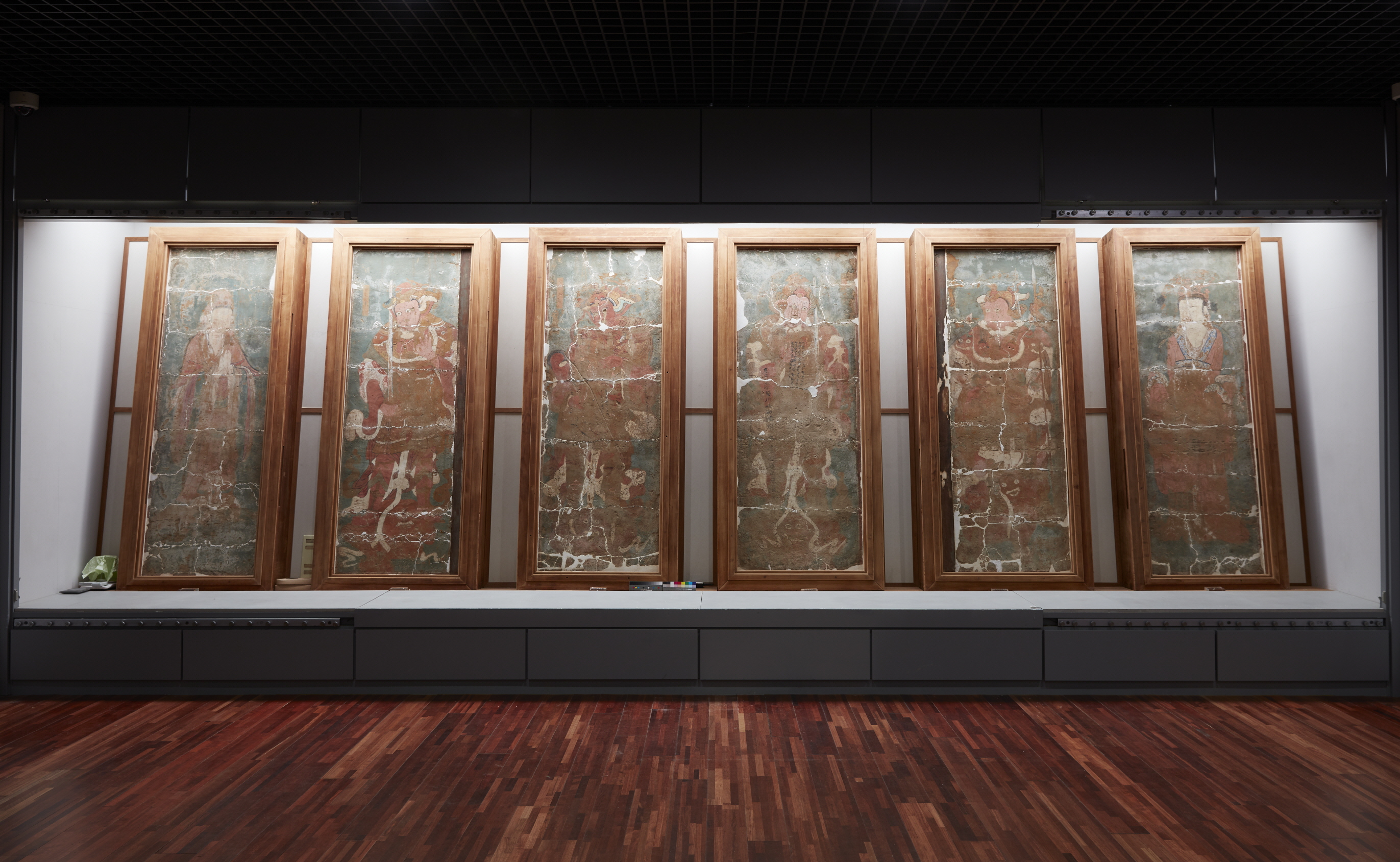 Depicting six Buddhist deities, Four Guardian Kings, Brahma Deva, and Indra, these mural paintings had been displayed on the inner wall of the Josadang Shrine (National Treasure No. 19) in Buseoksa Temple, which was built to honor Buddhist Monk Uisang (625-702), founder of the temple and Avatamsaka School in Korea.