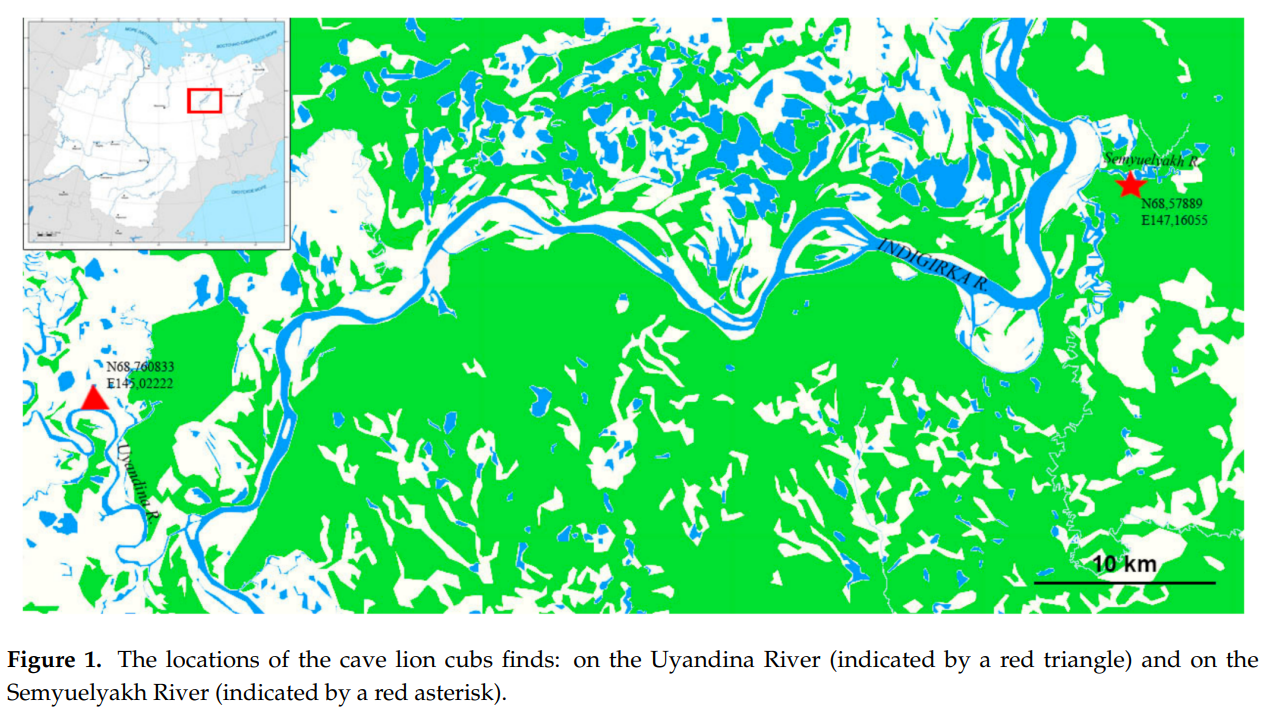 It seems unlikely that it is a coincidence that all four mummies of the cave lion cubs found to this day are from the Karginian interstadial and were found in a quite confined area in the river basin in the midstream of the Indigirka River (lower reaches of Uyandina River and Semyuelyakh–Tirekhtyakh River, located only c. 60 km from each other).