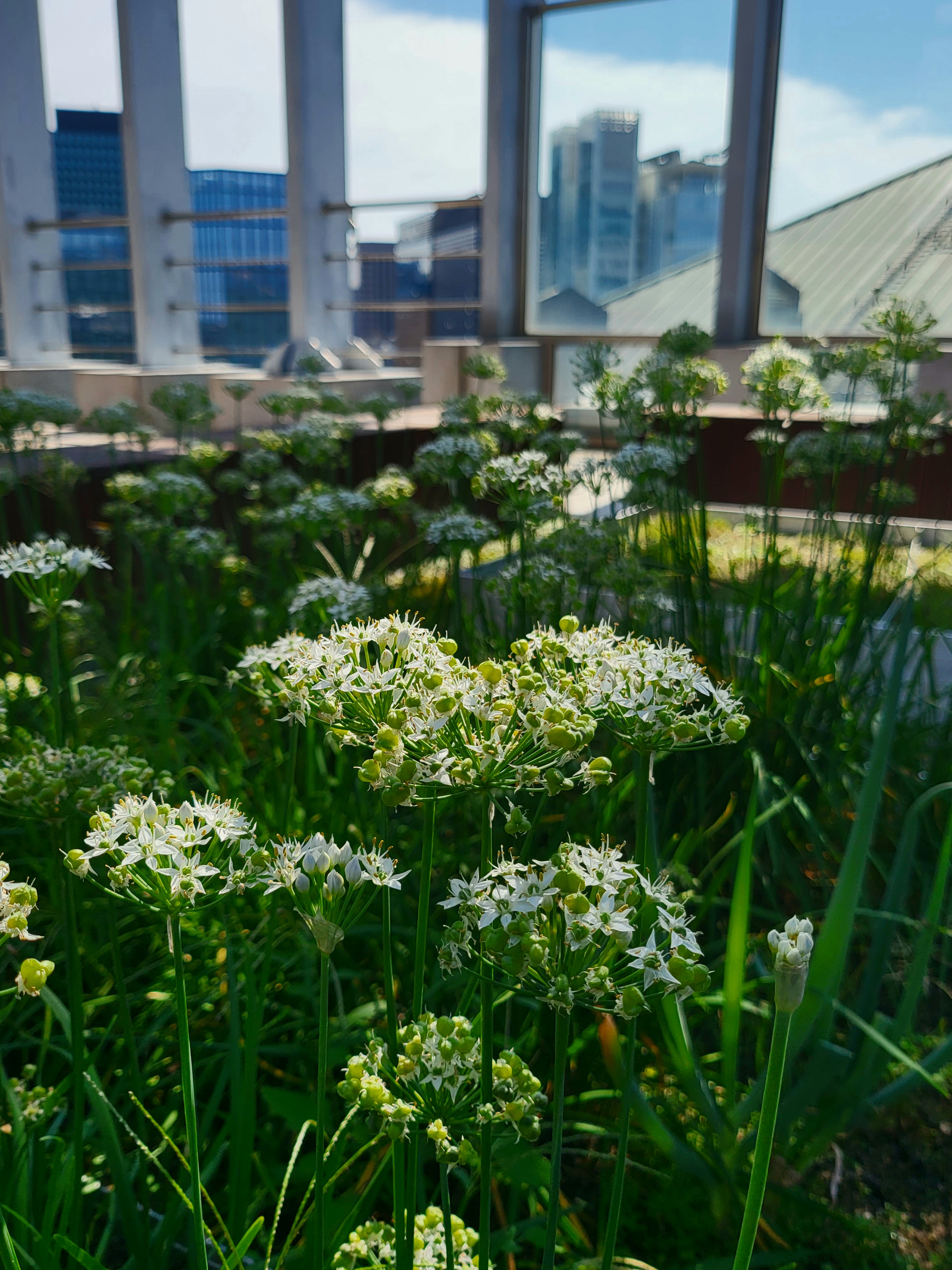 요새 수송동 옥상은 정구지 꽃 구경으로 재미가 쏠쏠하다.