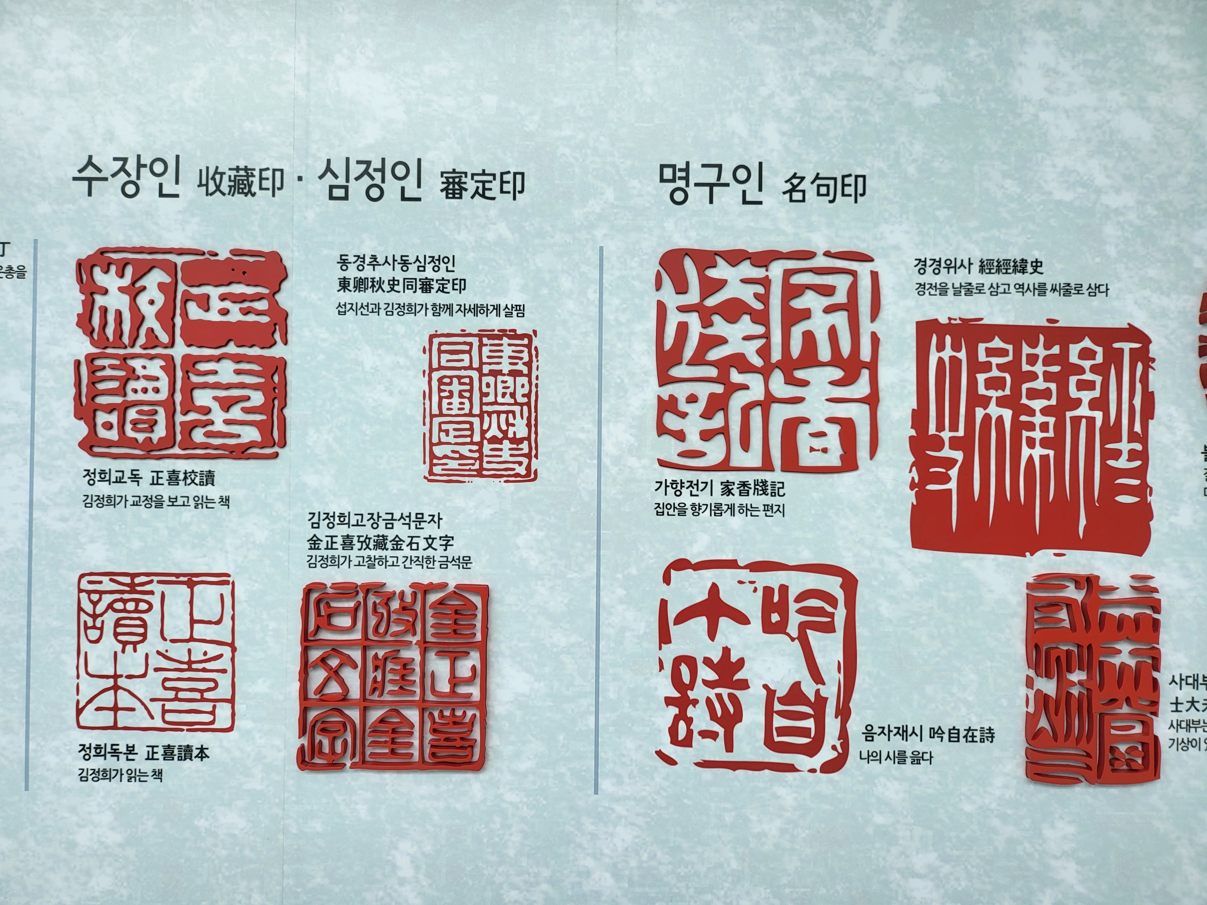 추사는 인장을 새기는 전각篆刻에 조예가 깊었고 여러 인장을 사용했다.
