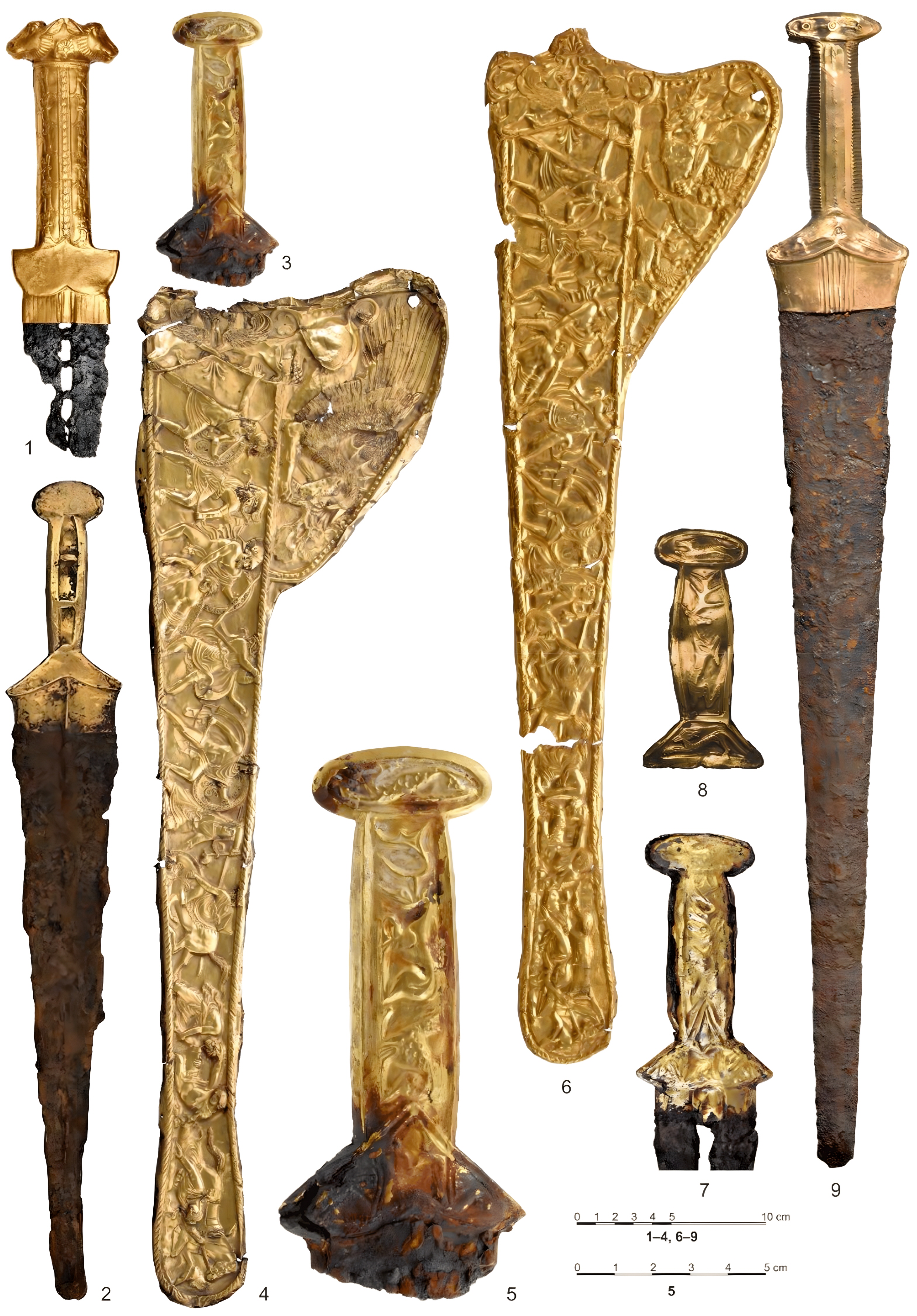 유라시아 초원지대에서 발굴조사를 통해 드러난 스키타이 시대 장검과 단검 중에서도 이른바 "의식용" 성격이 아주 강한 것들을 모아서 그 분포 양상과 변화 양상을 분석한 논문에서 인용한 자료들이다.