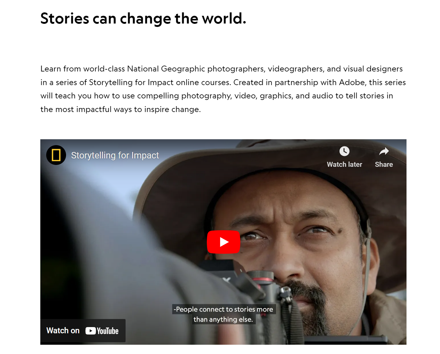 Learn from world-class National Geographic photographers, videographers, and visual designers.