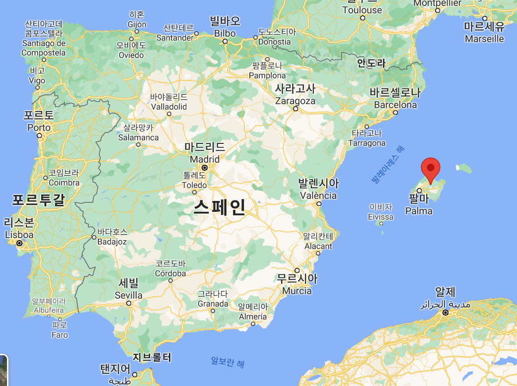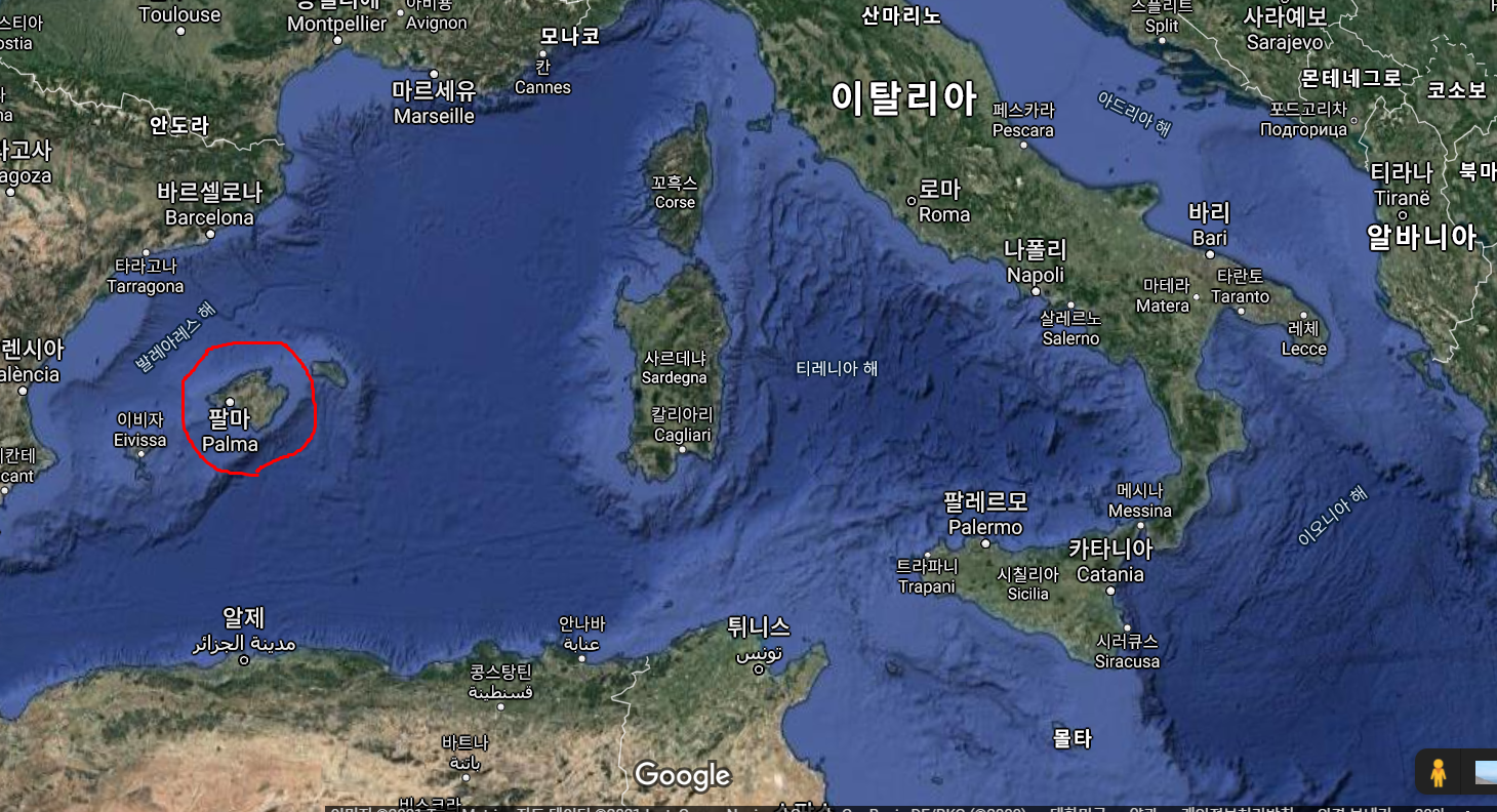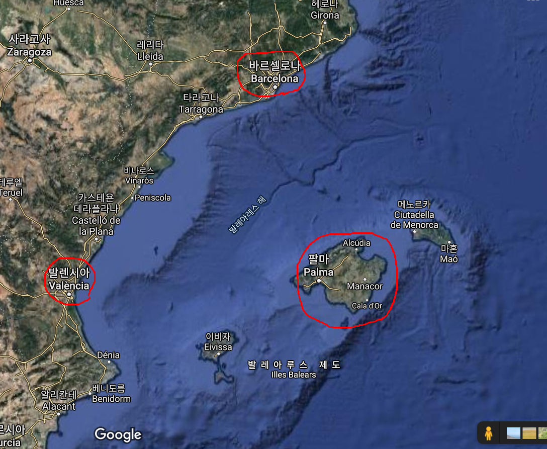 지도에서 보다시피 카탈루냐 두 대도시 발렌시아와 바르셀로나에서는 거의 등거리에 위치하며 지중해 교통에서는 매우 중대한 위치를 점하는 곳임을 직감한다.