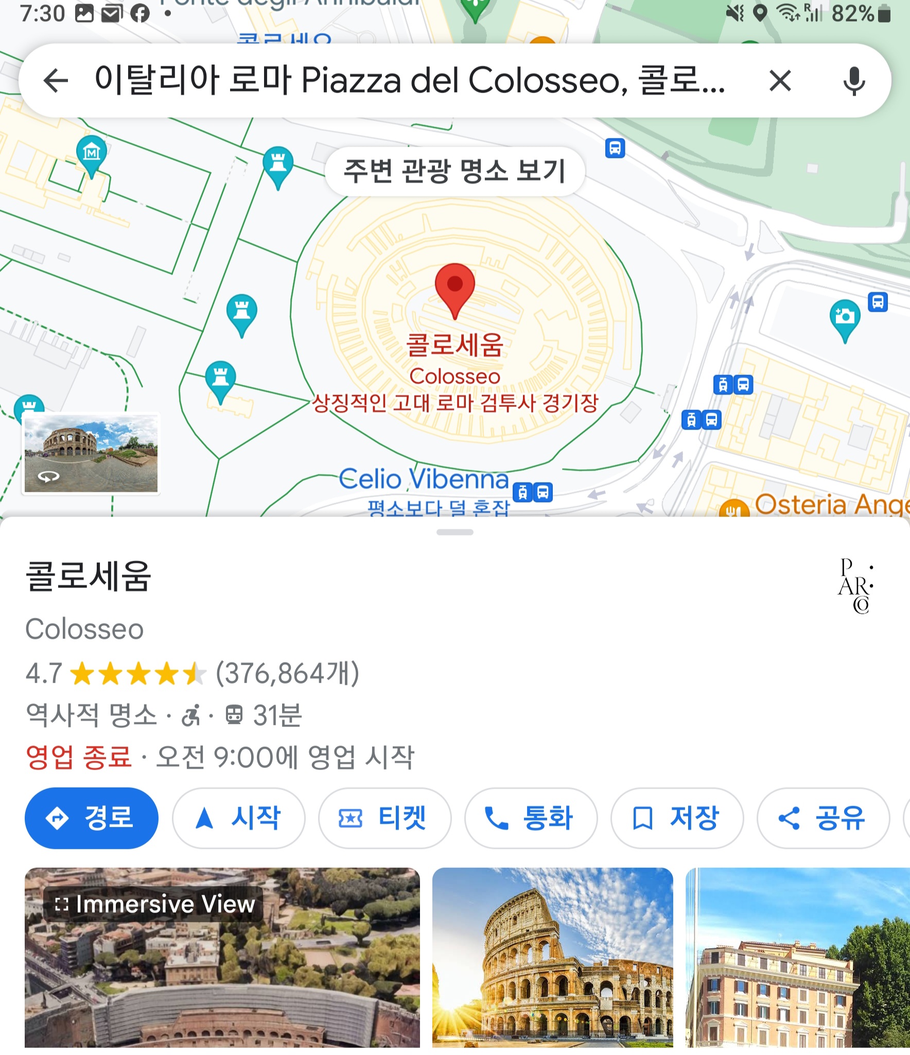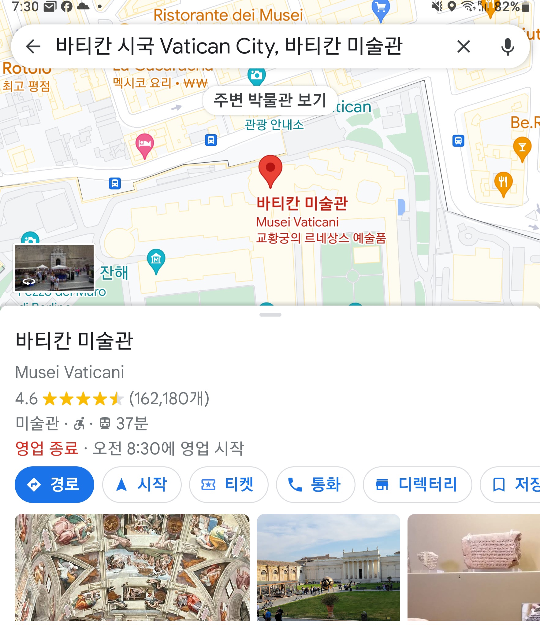 심심파적 삼아 로마 시간 월요일 오전 일곱시인 지금 이 지역을 대표하는 명소 두 군데, 콜로세오와 바티칸미술관을 두들기면 아래와 같다.
