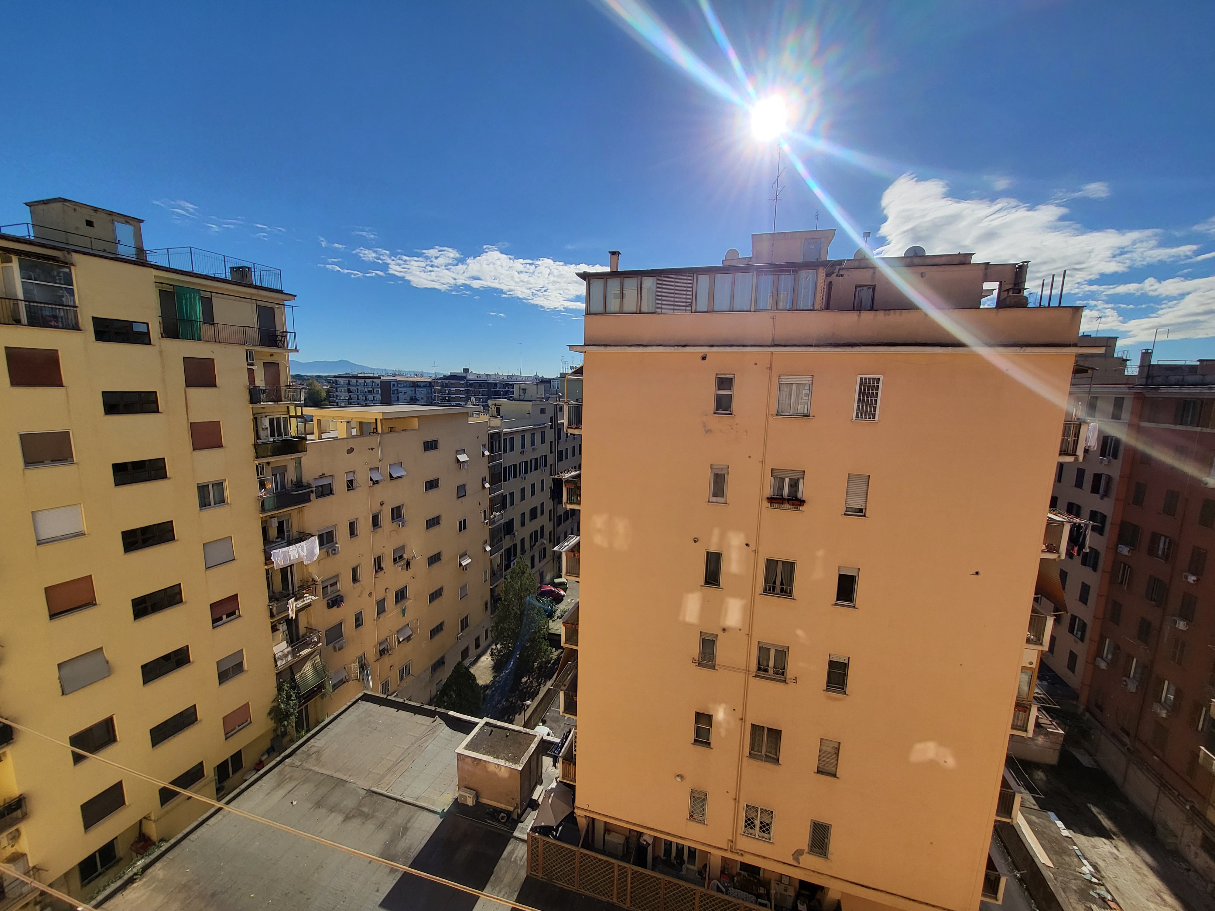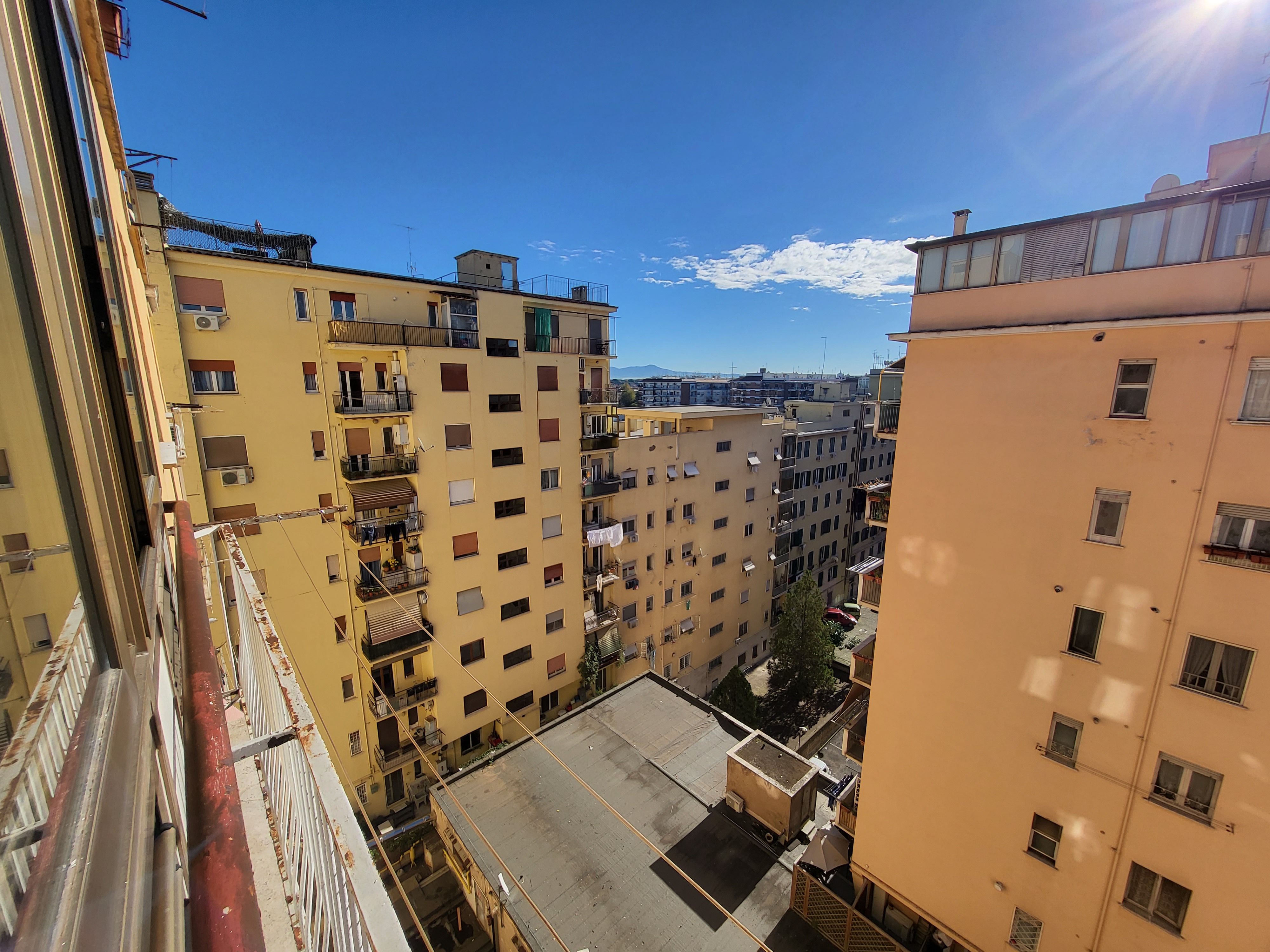 내가 이태리말을 몰라 무슨 내용인지 알 수는 없지마는 어느 중년 여성이 실내복 차림으로 역시 베란다서 한 대 빨며 이어폰 꽂고는 통화 중이다.