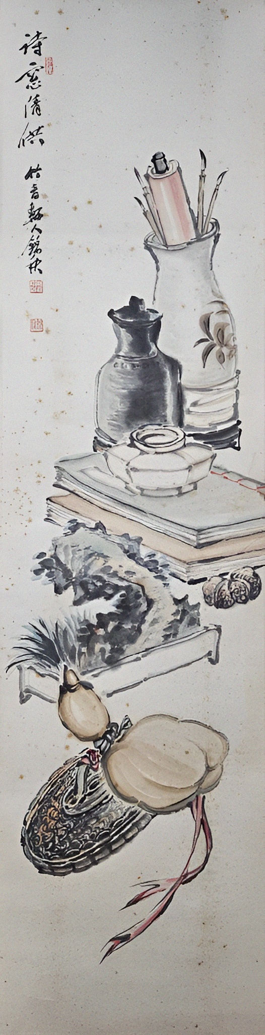 그릇과 책, 청동거울, 괴석, 호리병 따위 옛 기물을 화면에 놓았는데, 되는 대로 던져둔 것 같으면서도 구도가 안정적이고 특히 청동거울의 무늬와 질감 묘사가 돋보인다.