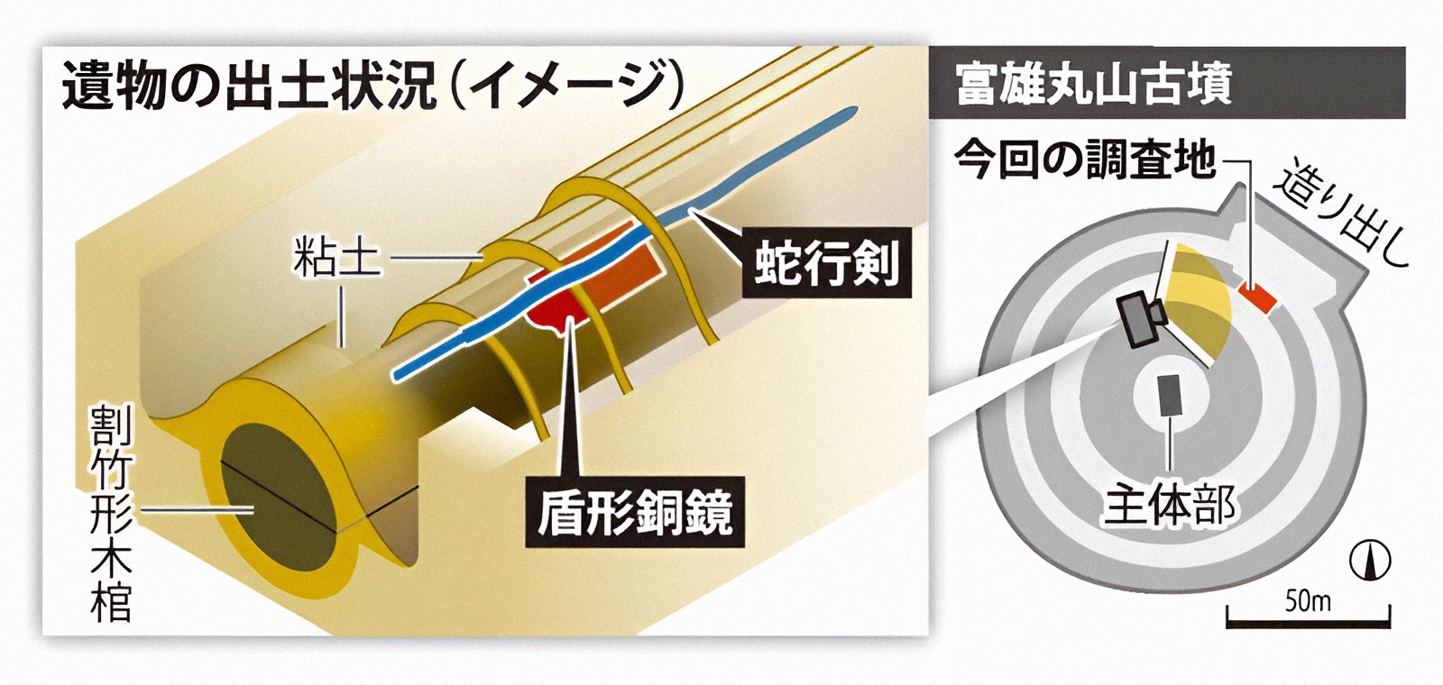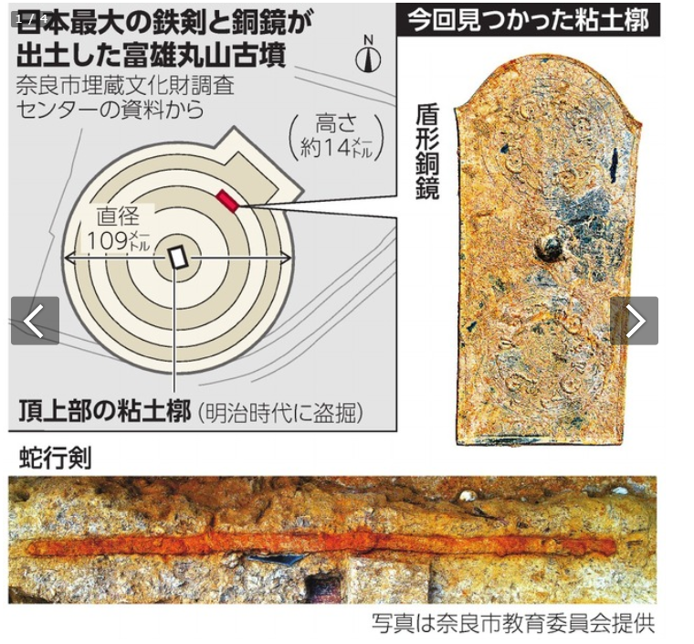 시체 얼굴에 수은을 쏟아부은 고대 일본 무덤[1] 검劍과 경鏡