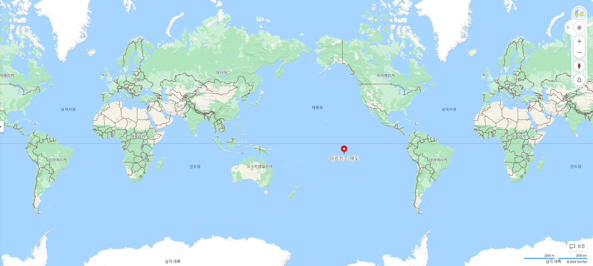 망망한 태평양, 적도 아래에다가 점을 찍는데 뵈지도 않는다.
