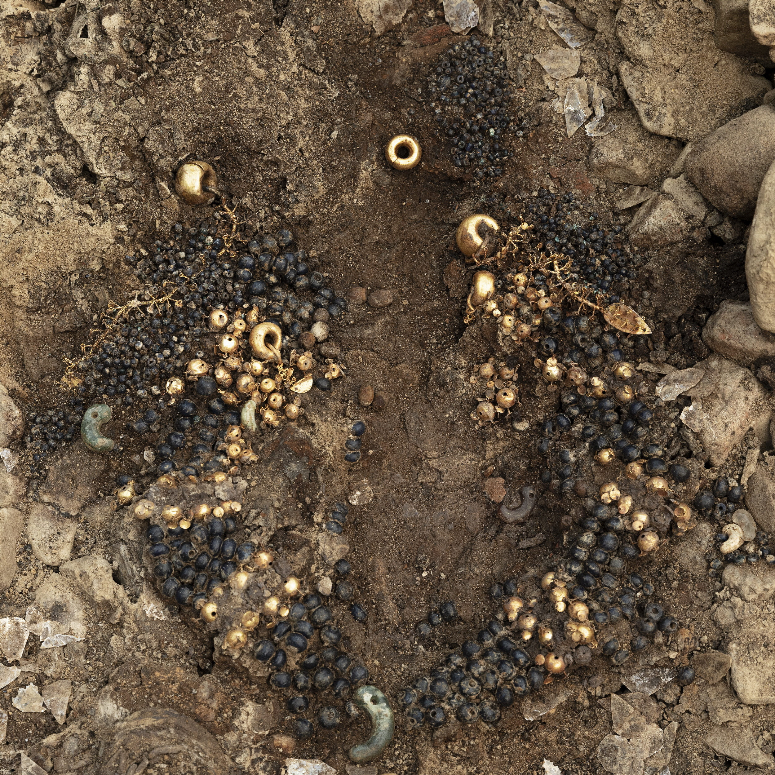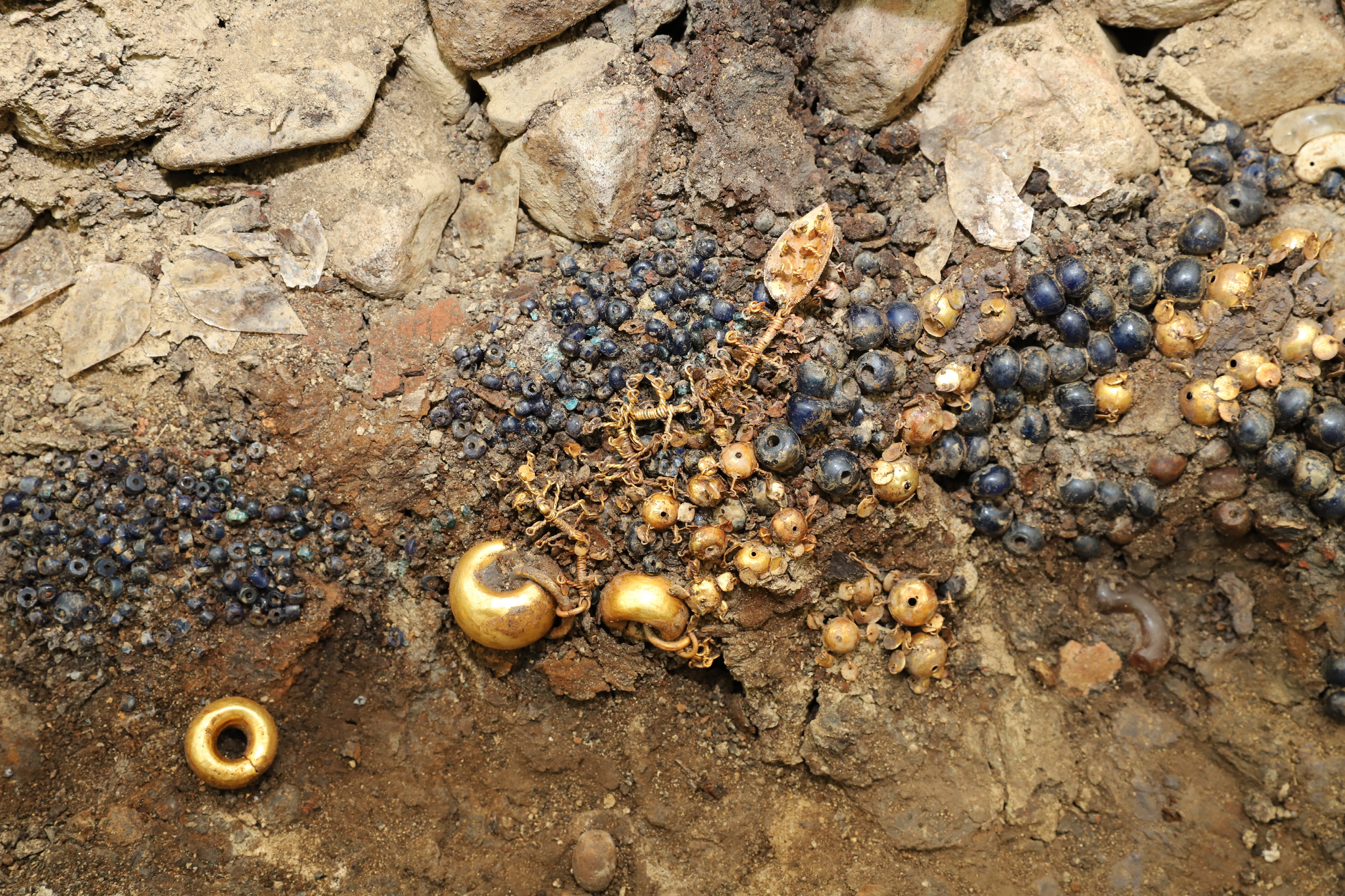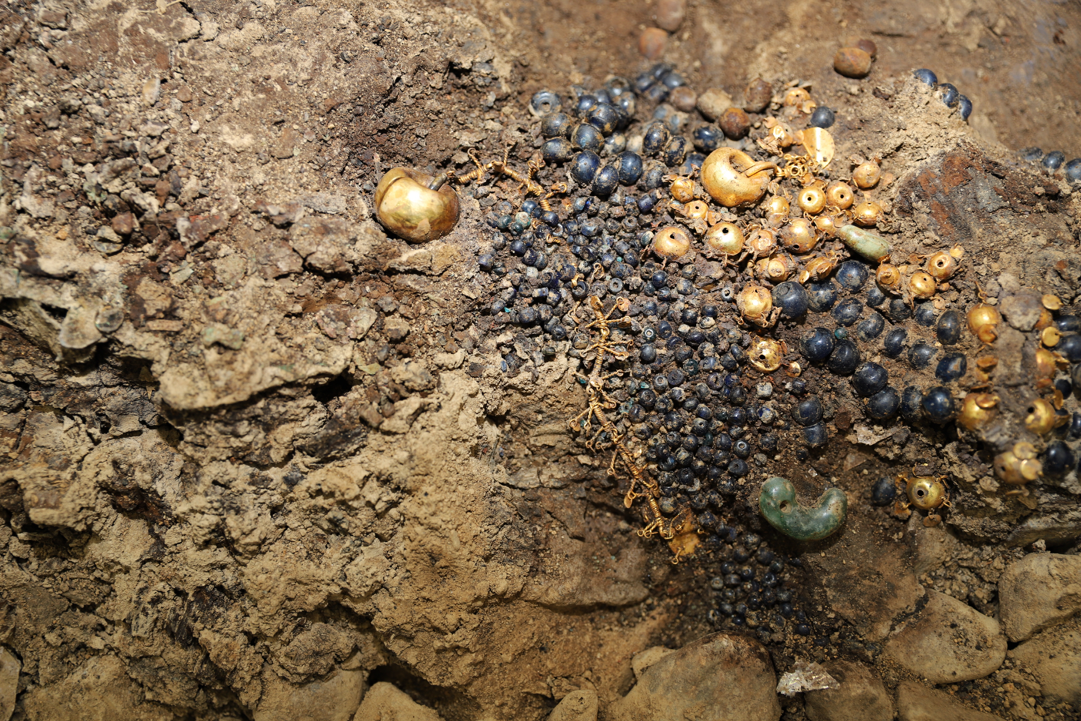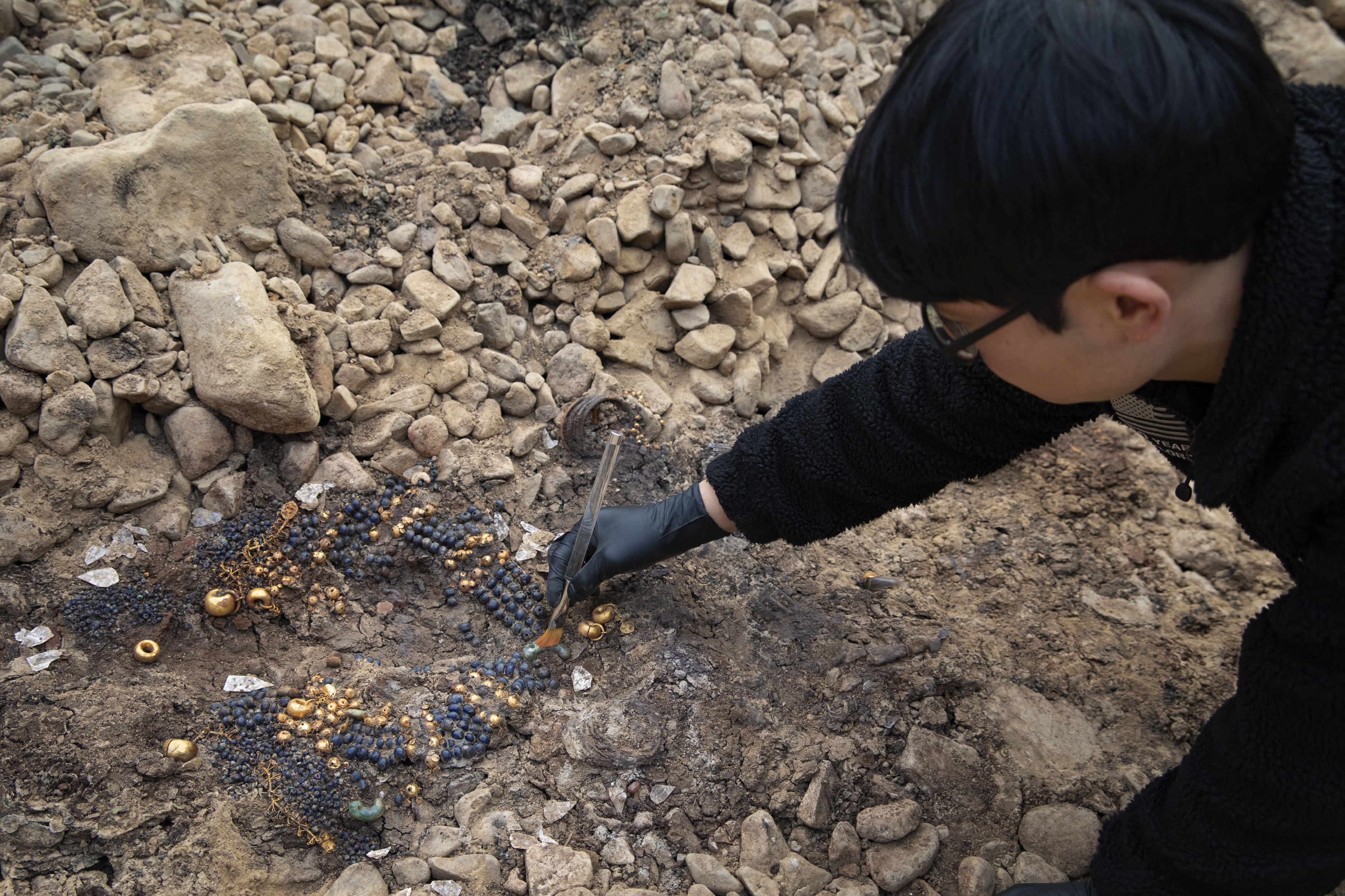 경주 쪽샘 44호에서 바둑돌 200여점과 함께 쏟아진 신라 여성 호화 장신구