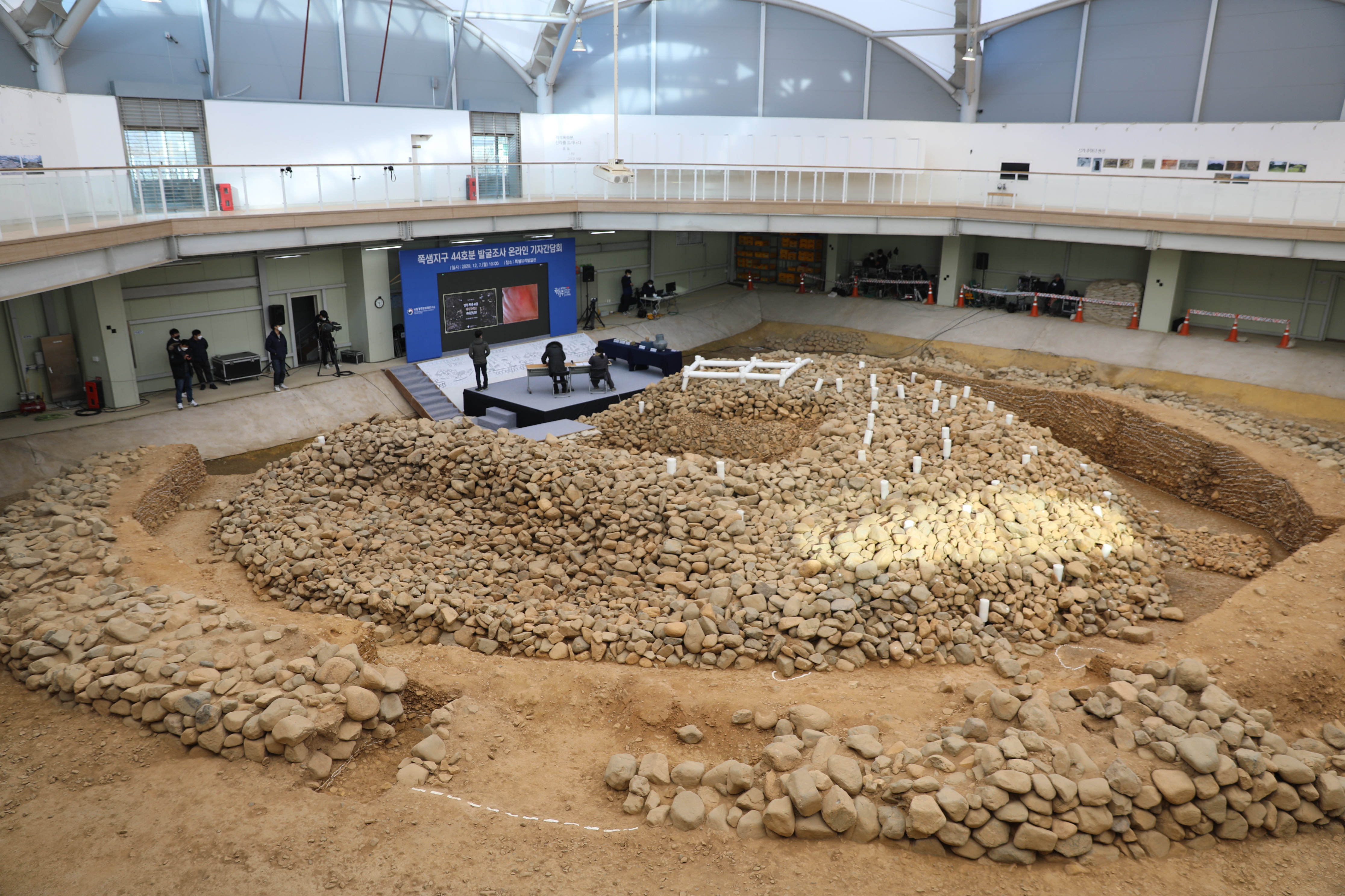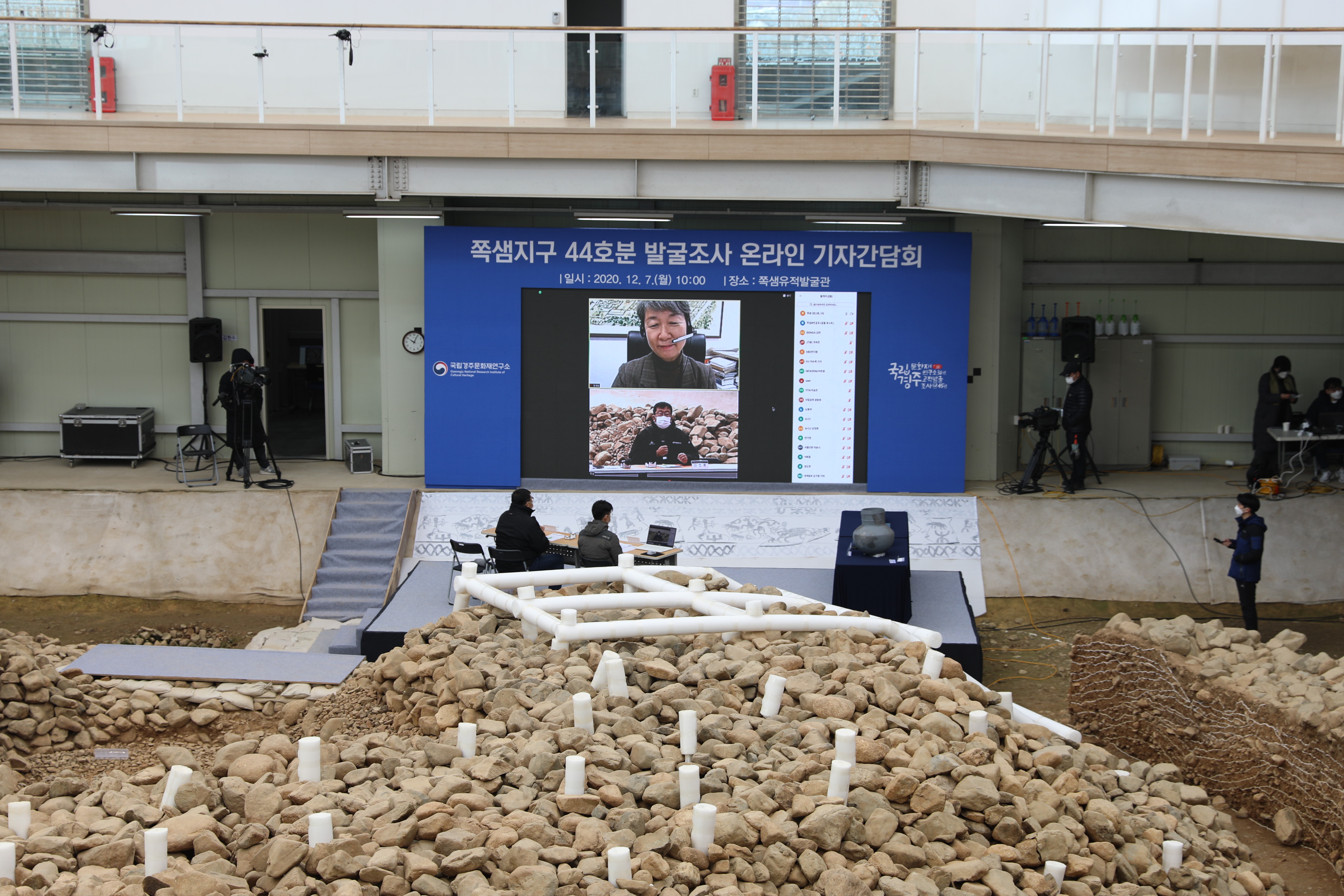 2014년부터 진행한 이번 경주 쪽샘지구 신라고분 44호분 발굴조사는 올해로 7년차이고, 현재 매장주체부 유물 노출까지 진행되었다. 그동안 호석(護石) 주변에서 행해진 제사흔적, 봉분 성토방식, 적석부 구조와 축조방식, 다양한 지점에서의 의례행위 등이 확인되었다. 이를 통해 중대형 적석목곽묘의 구조와 축조방식을 복원할 수 있는 다양한 근거자료를 확보하였고, 이번에 공개하는 유물을 통해서는 당대 신라 최고 지배층 사회의 장묘문화를 이해할 수 있었다.