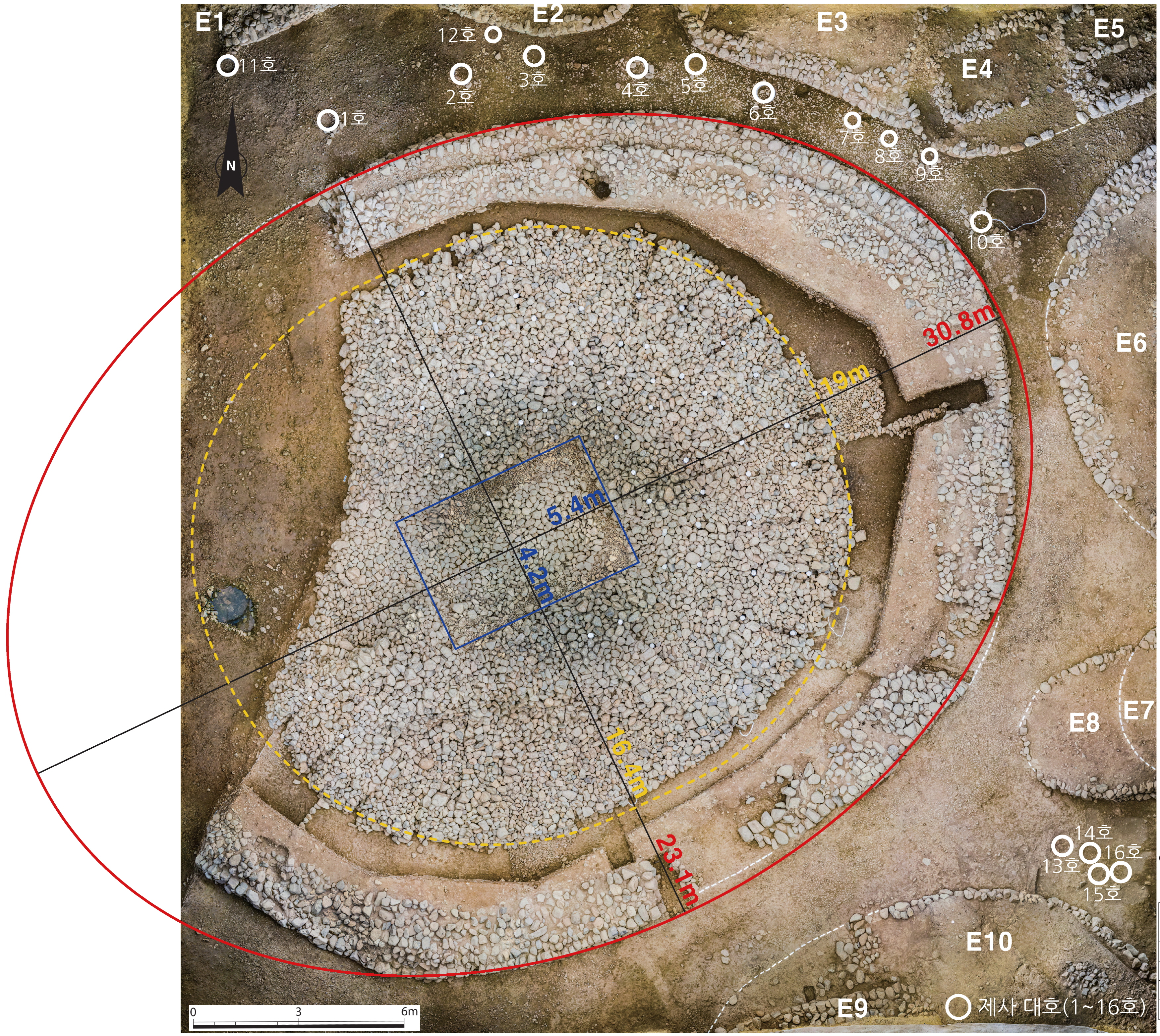 * 둘레돌(호석, 護石): 무덤의 둘레에 돌려 쌓은 돌
