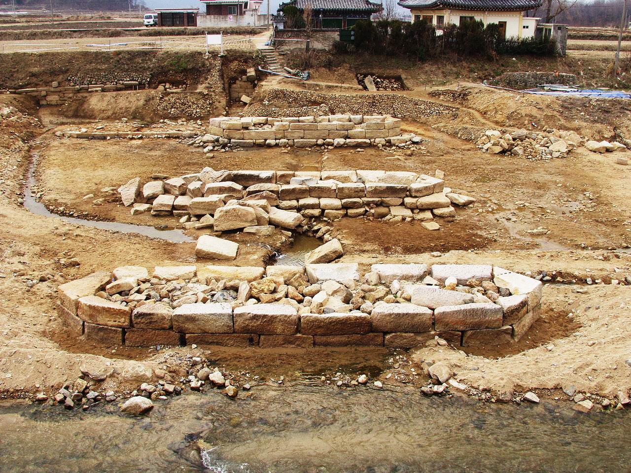 교량유구 이외에도 동편 교대지의 북쪽 월성 방향으로 폭 1.2~2.5m, 길이 110m의 석축과 이 석축의 축조와 관련이 있는 목주 19개가 2열로 남이 있음이 확인되었는데, 이 석축은 교대지 동편의 제방 위에 잘 보호해야만 하는 중요 시설물이 있었음을 반증해 주는 유구라 할 수 있다.