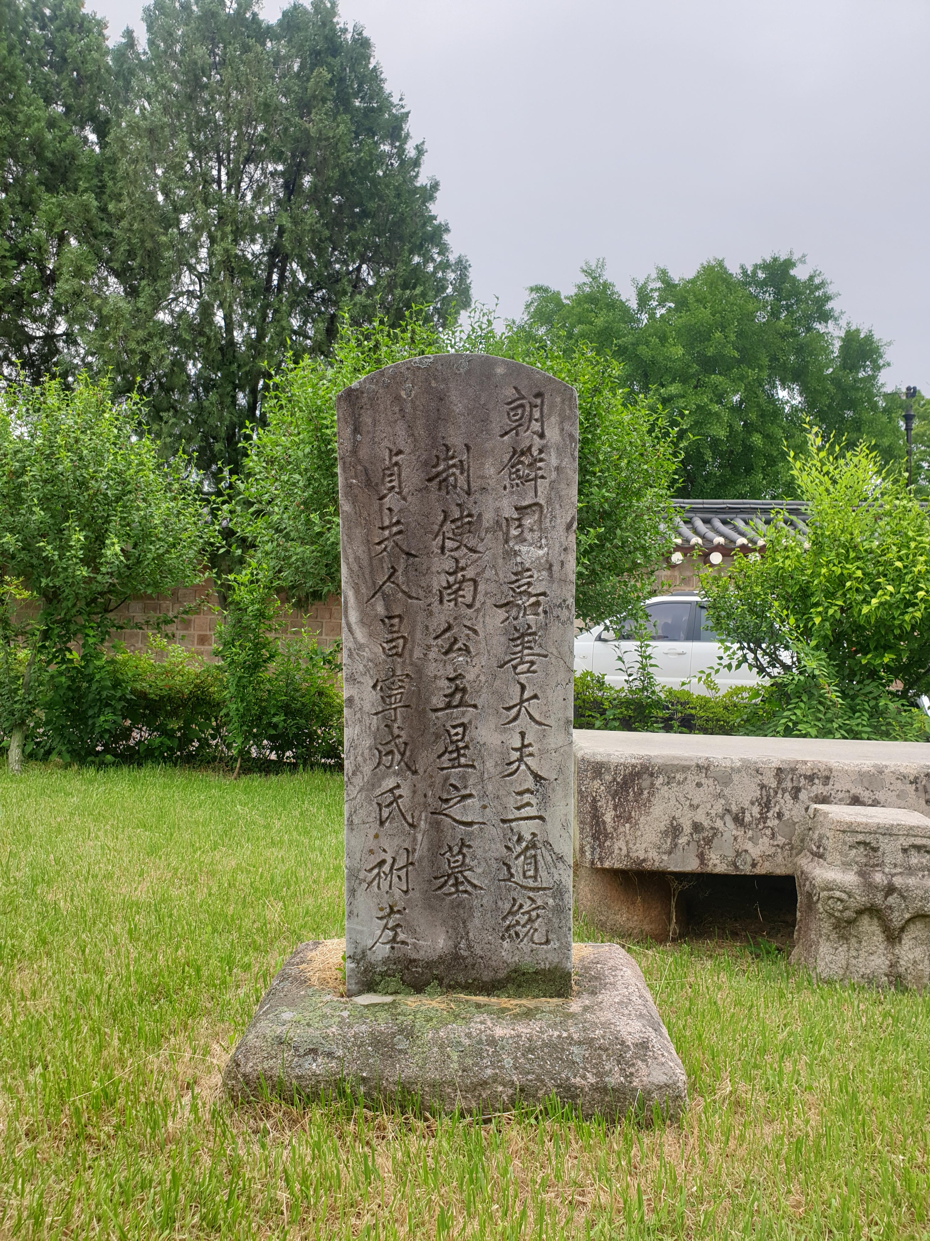The front of the memorial stone reveals that the tomb held the remains of General Nam and his wife, and the back of the stone contains an epitaph composed by the general's grandson, Im Bak.