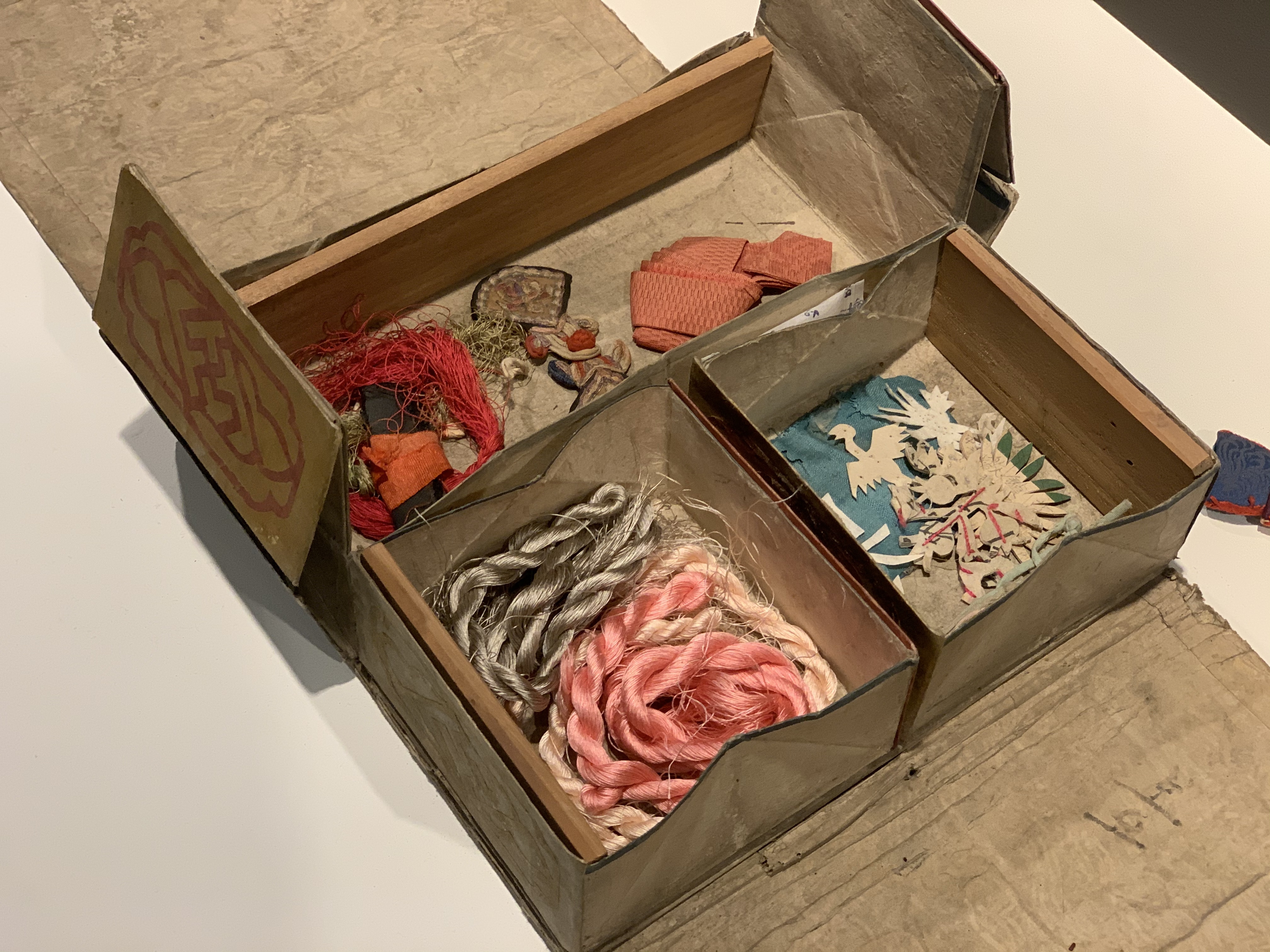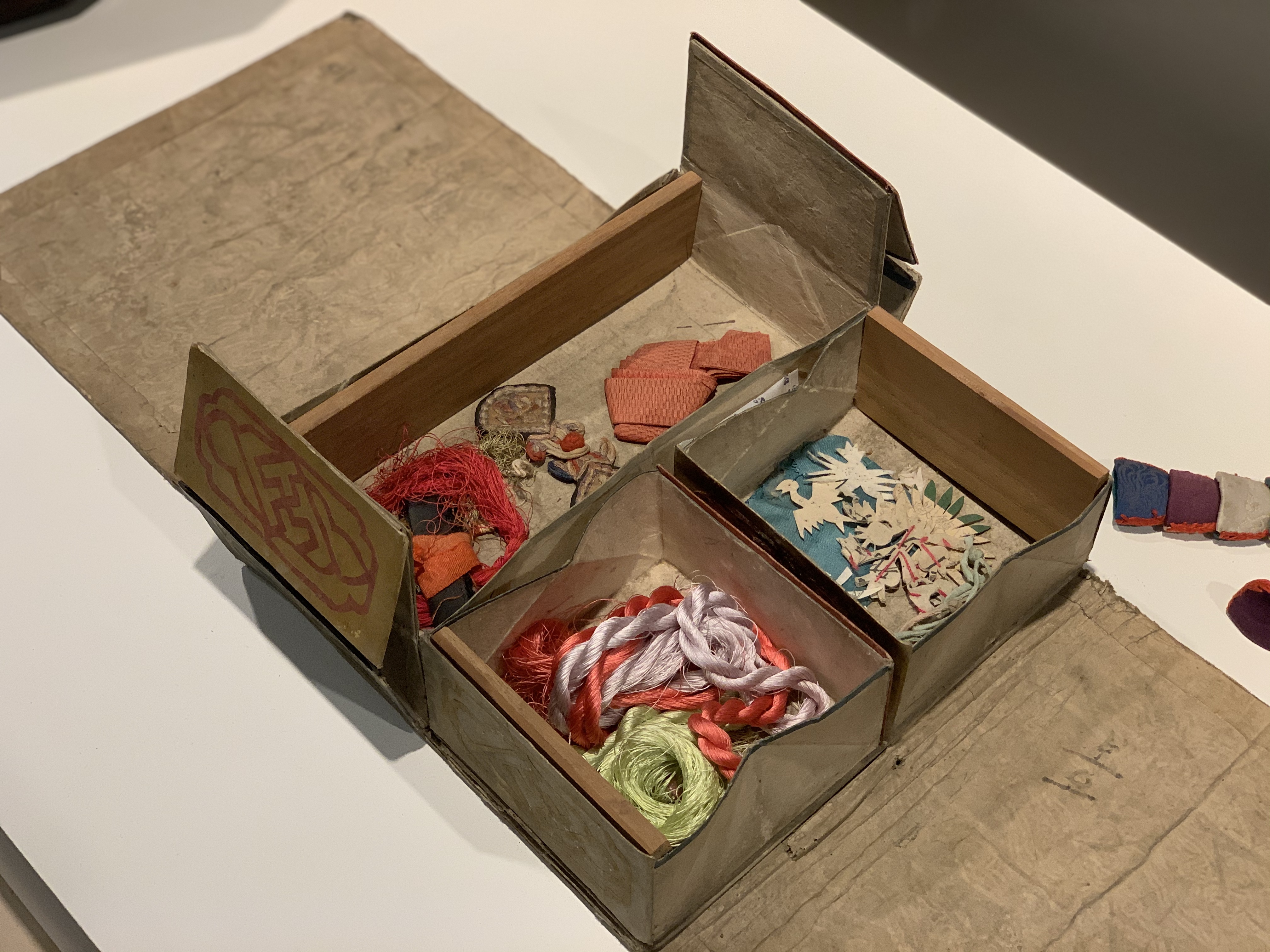 역시 복식 관련 전공자분들답게 의생활 쪽 관련 유물을 볼 때 눈이 반짝반짝 빛났다. 그러다 전시 중인 실첩상자 앞에 멈춰섰다. 실첩상자 안에 실은 없고, 골무만 넣고 전시된 모습이 유물의 성격과 전시 형태가 맞지 않기도 하고, 안타까운 마음에 연구관님께서 “여러분들 중 천연 염색한 실 조금 보내주면 좋겠어요.” 라는 식으로 가볍게 말씀 주셨었다.