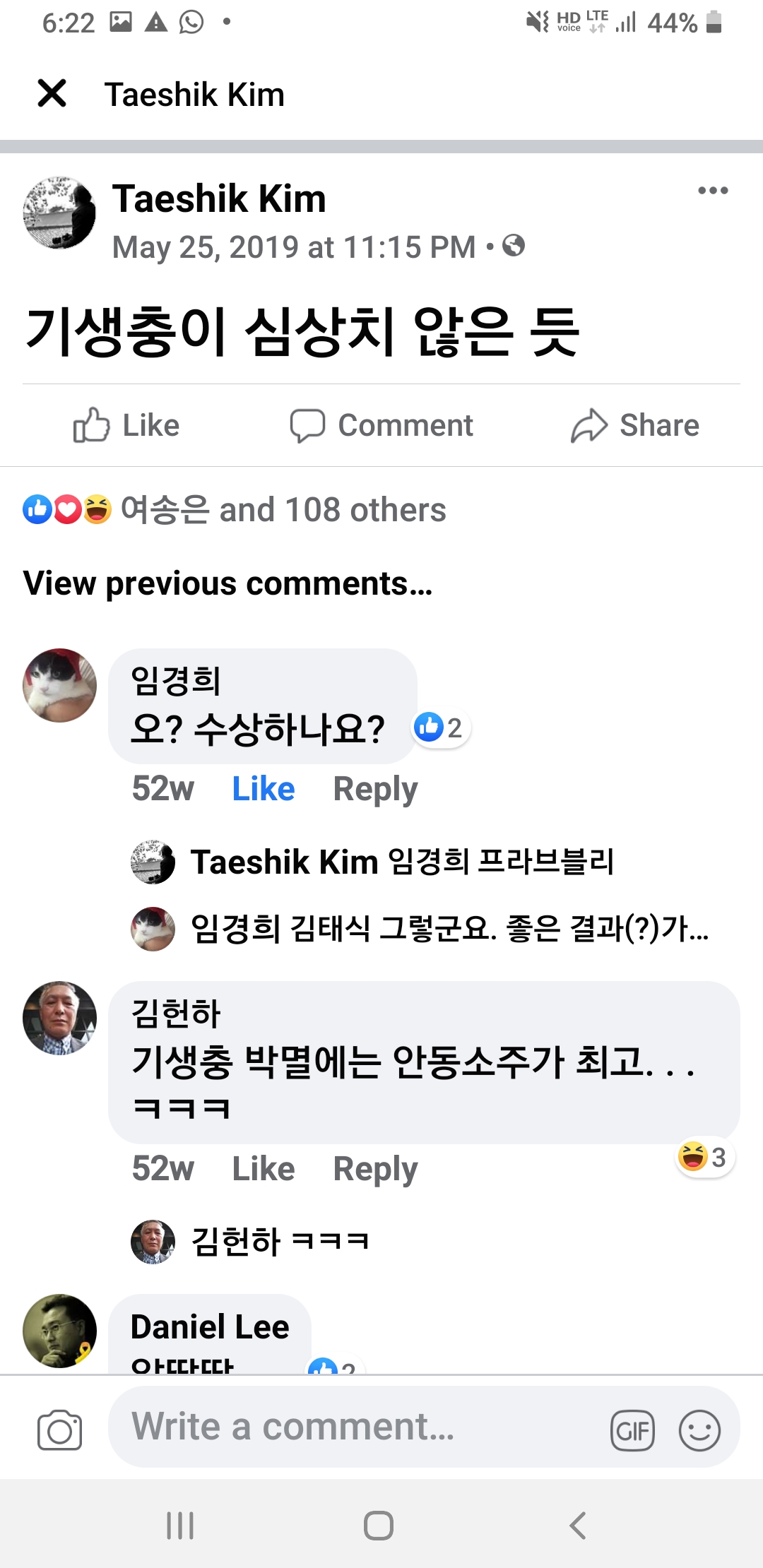 봉준호가 기생충으로 칸영화제 황금종려상을 먹었으니 기생충 신화의 시작이었다.
