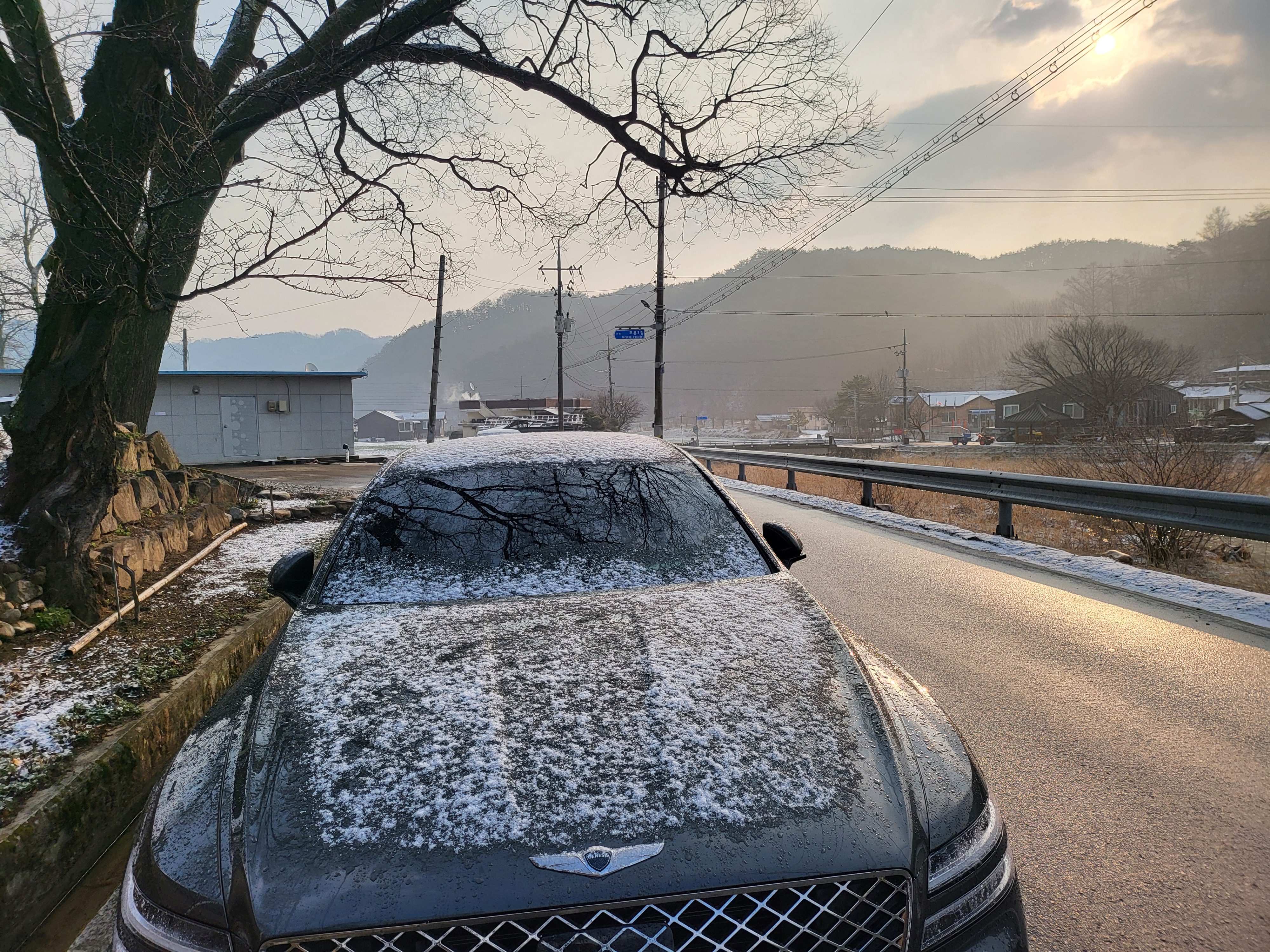 간밤 살짝 뿌린 눈이 녹아내린다.