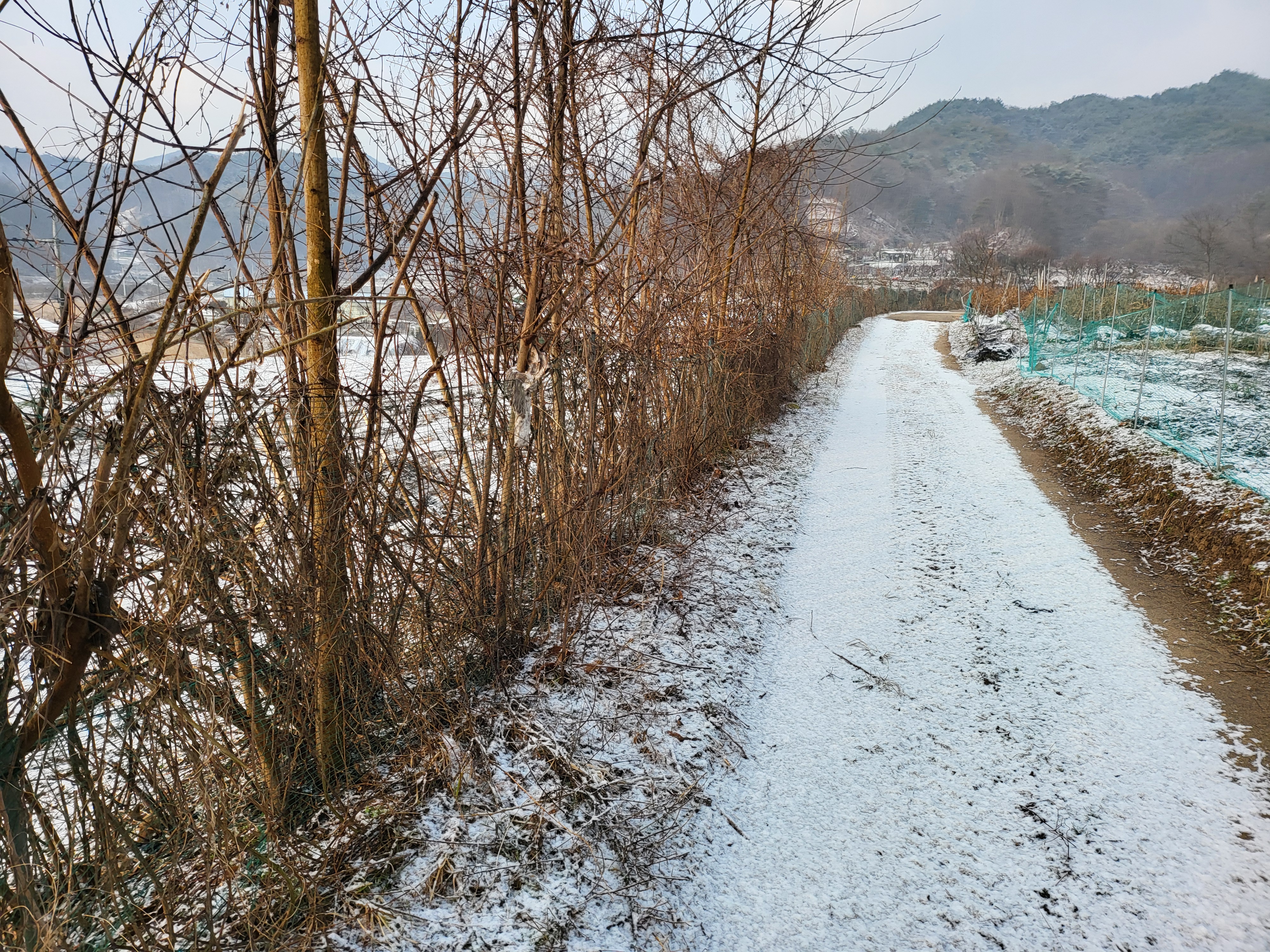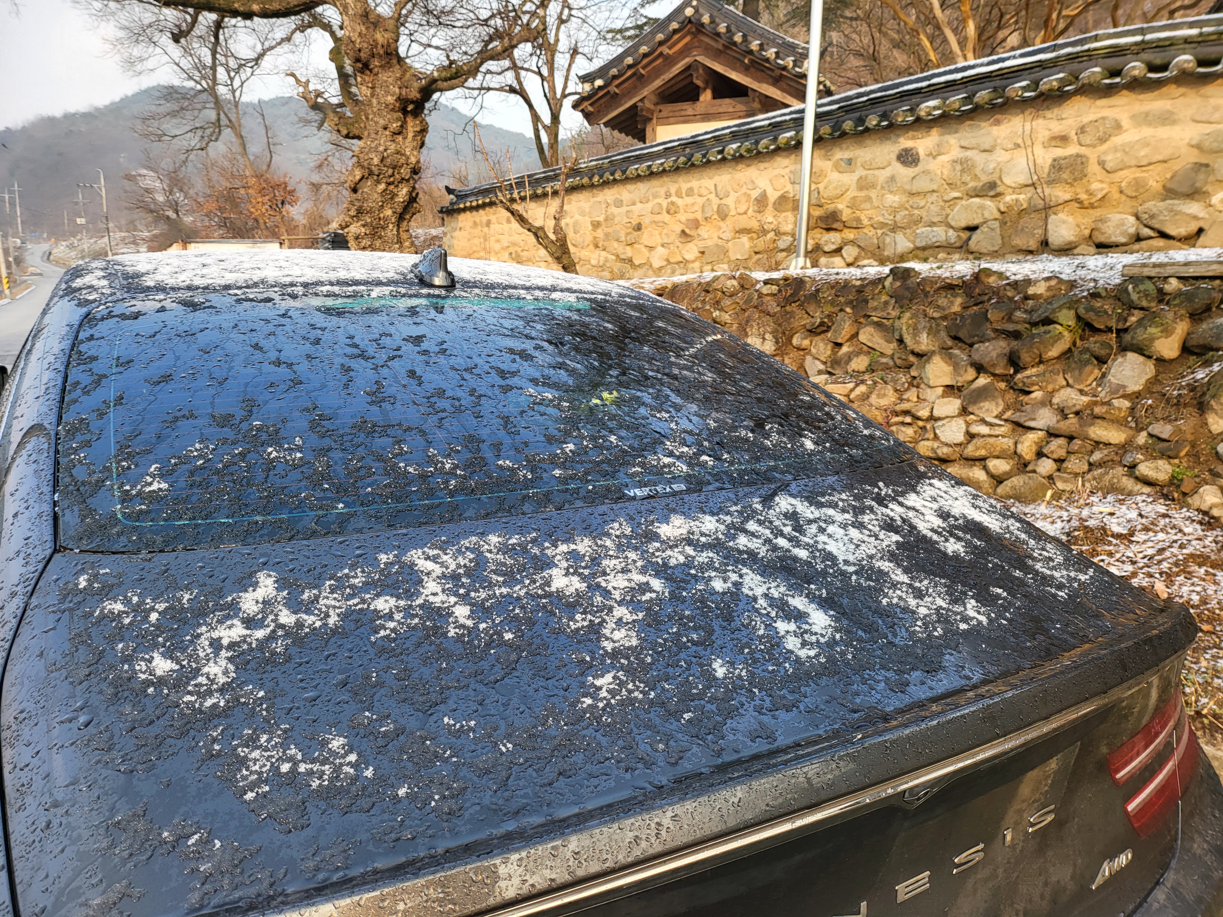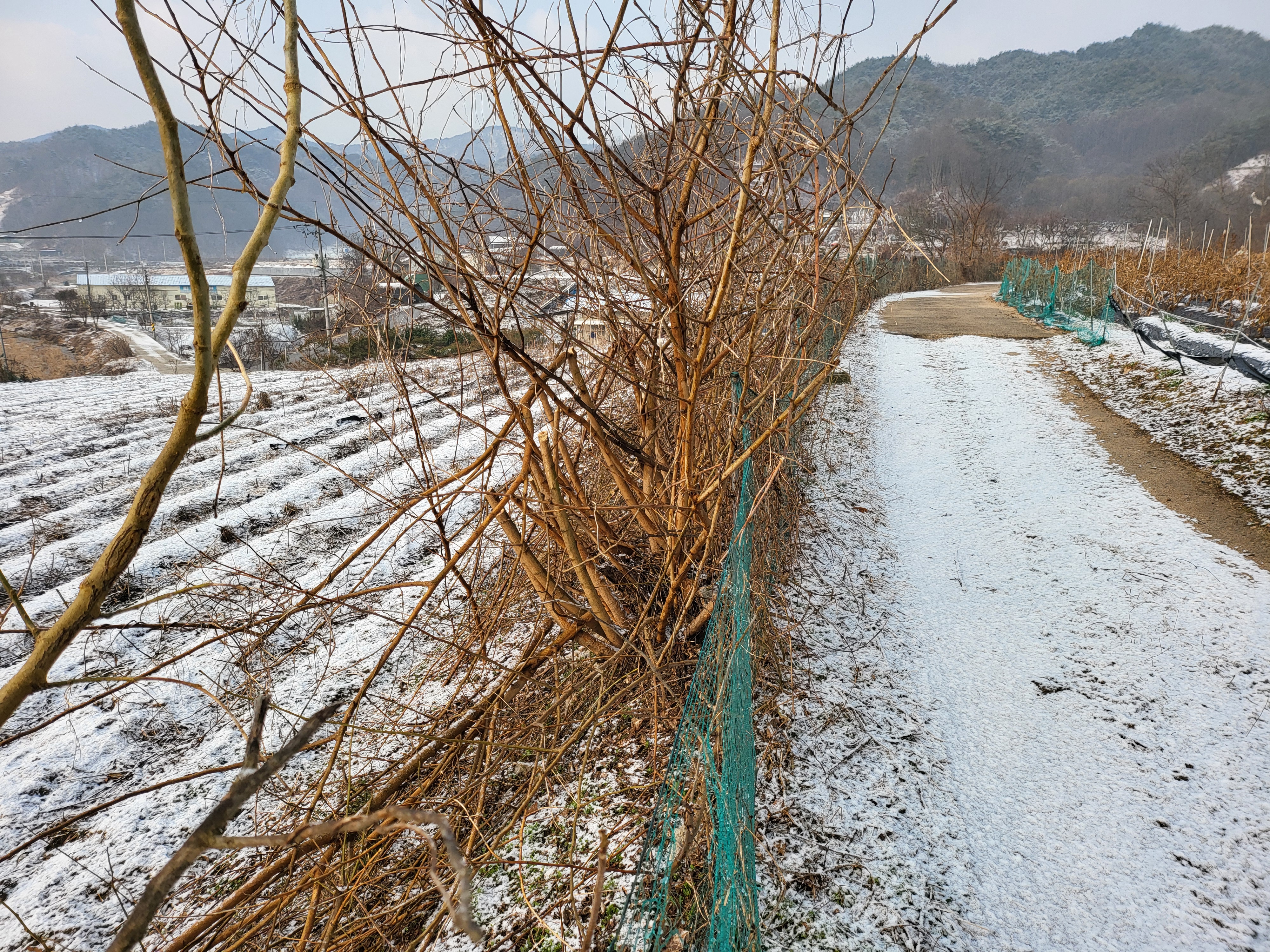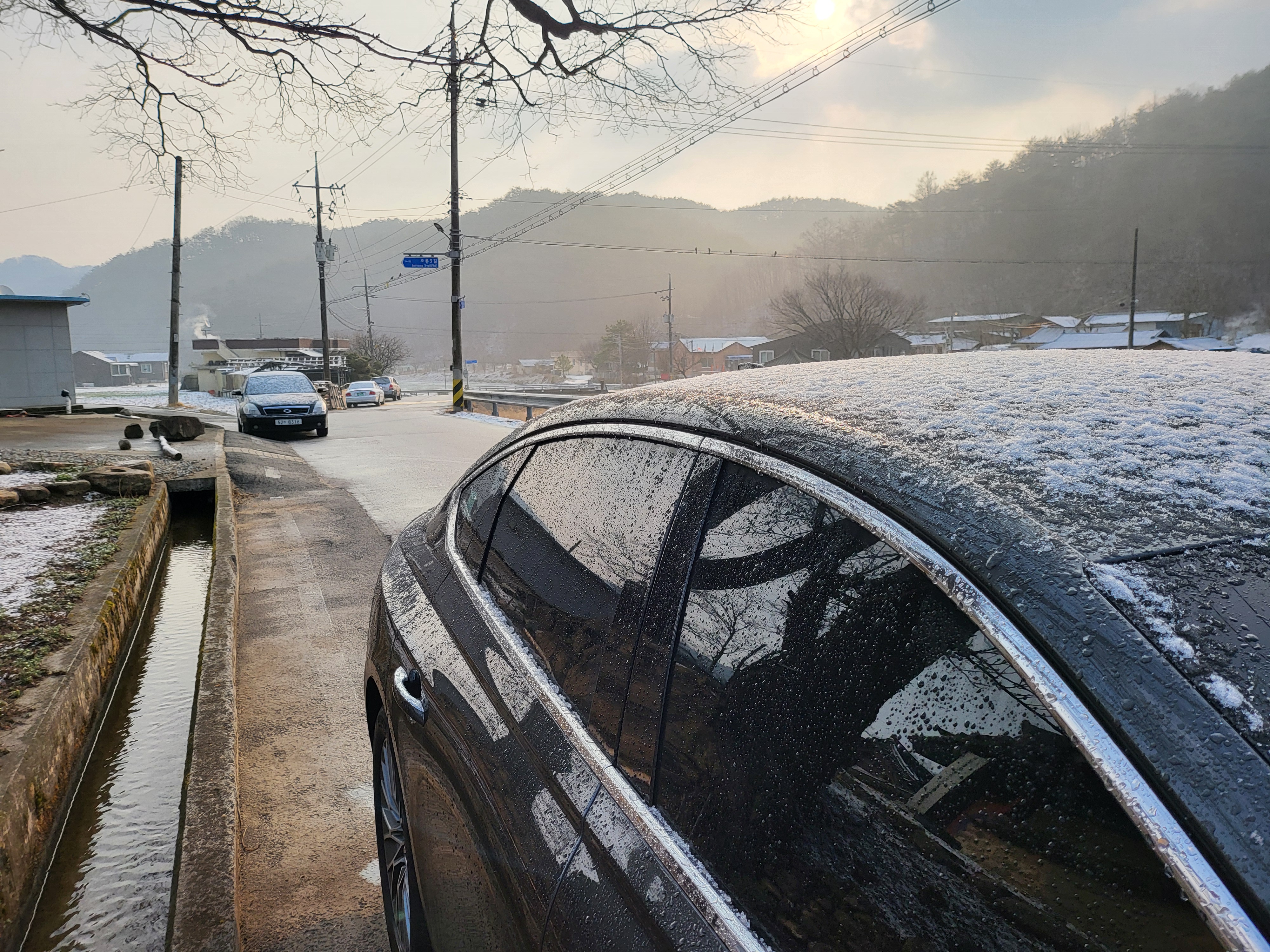 간밤 살짝 뿌린 눈이 녹아내린다.