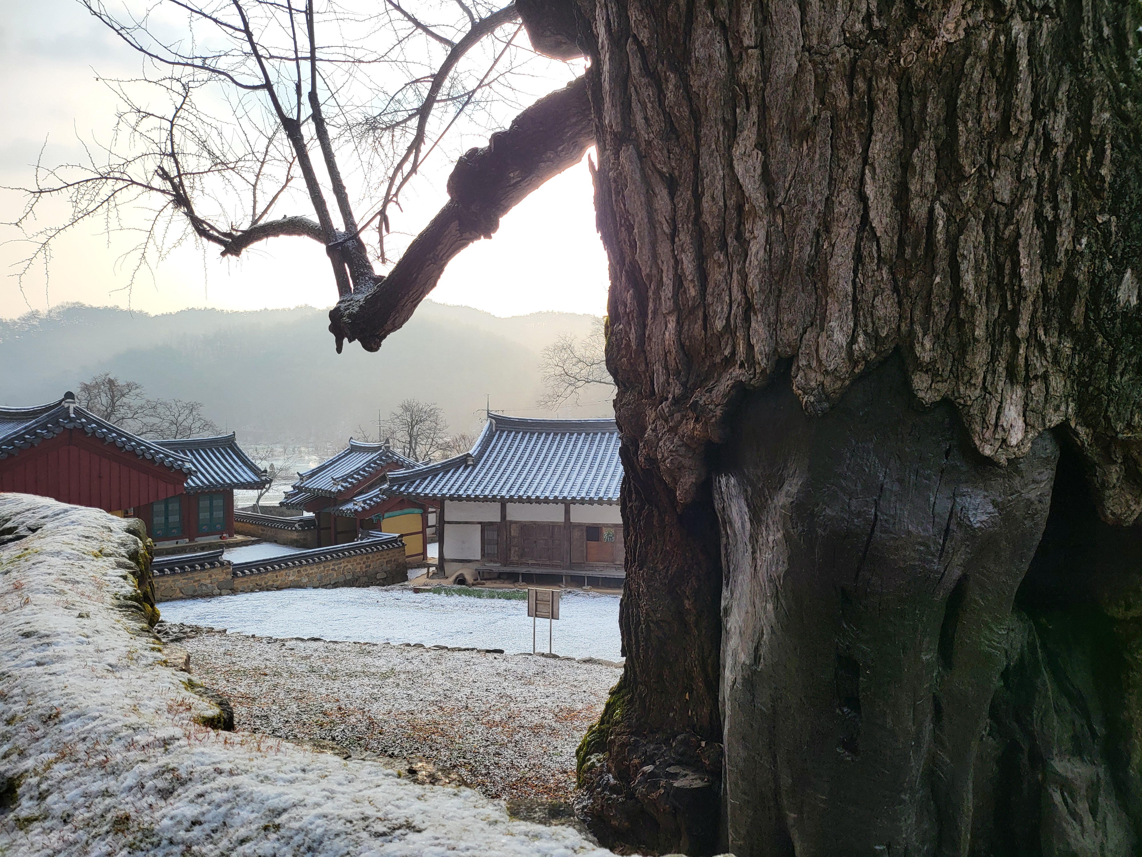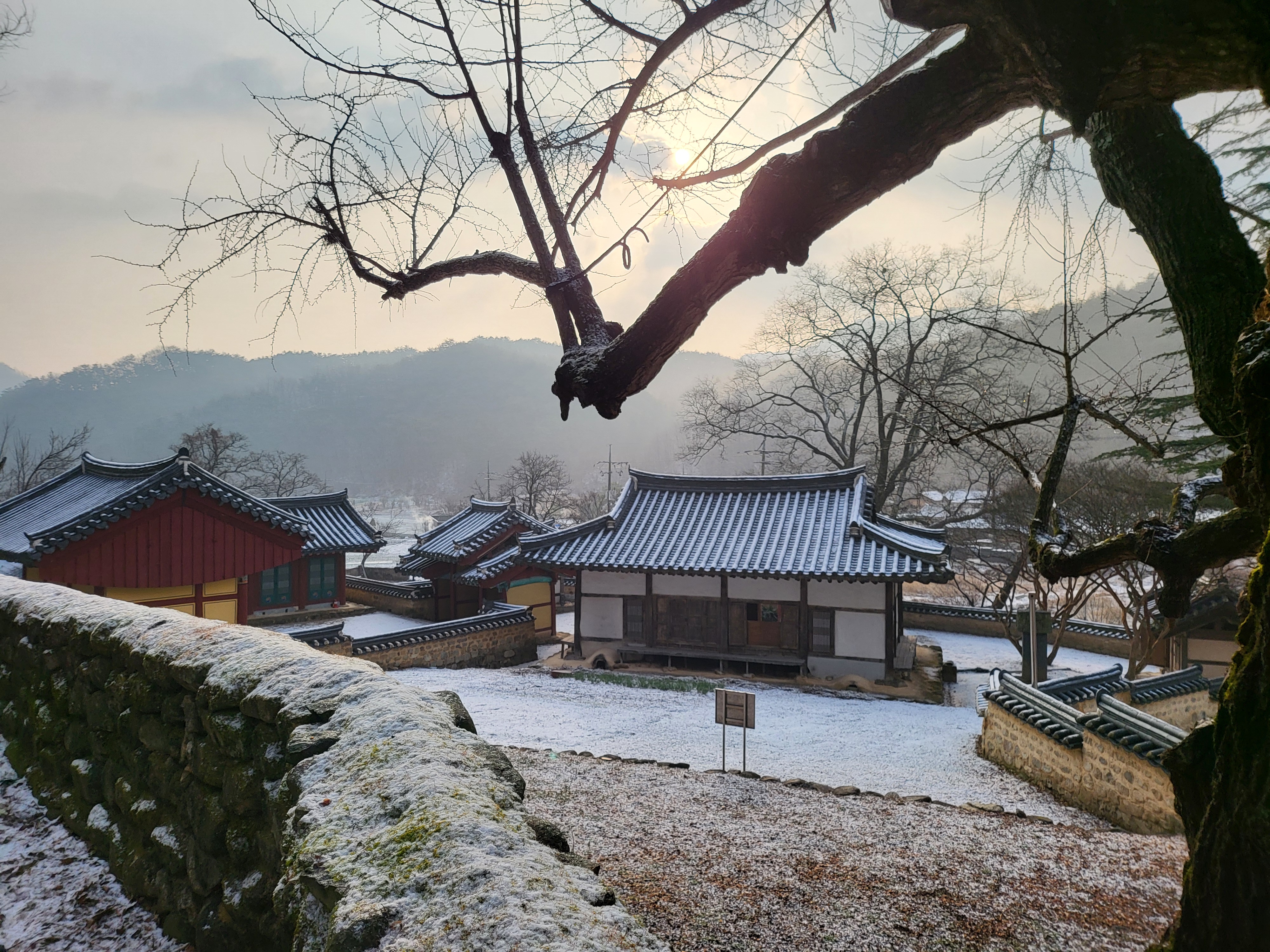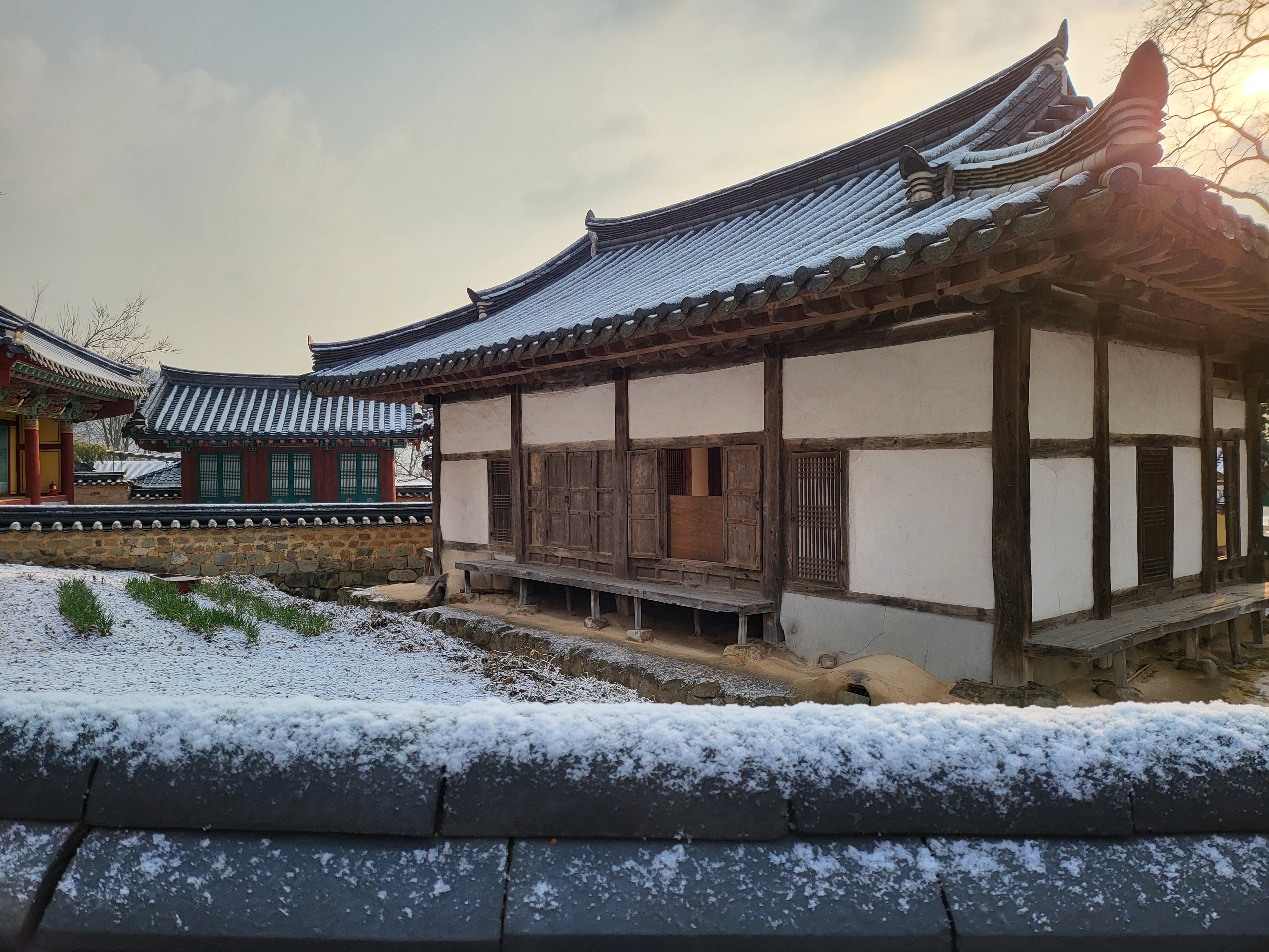 간밤 살짝 뿌린 눈이 녹아내린다.
