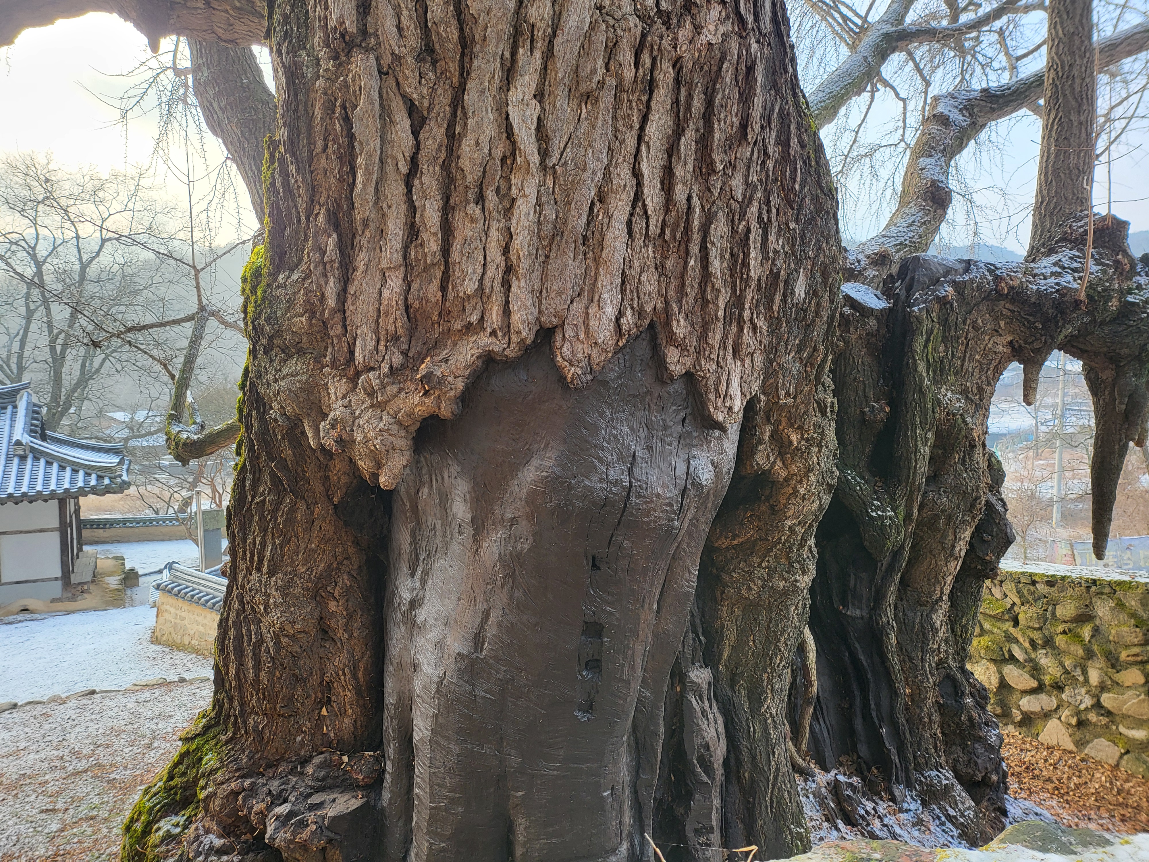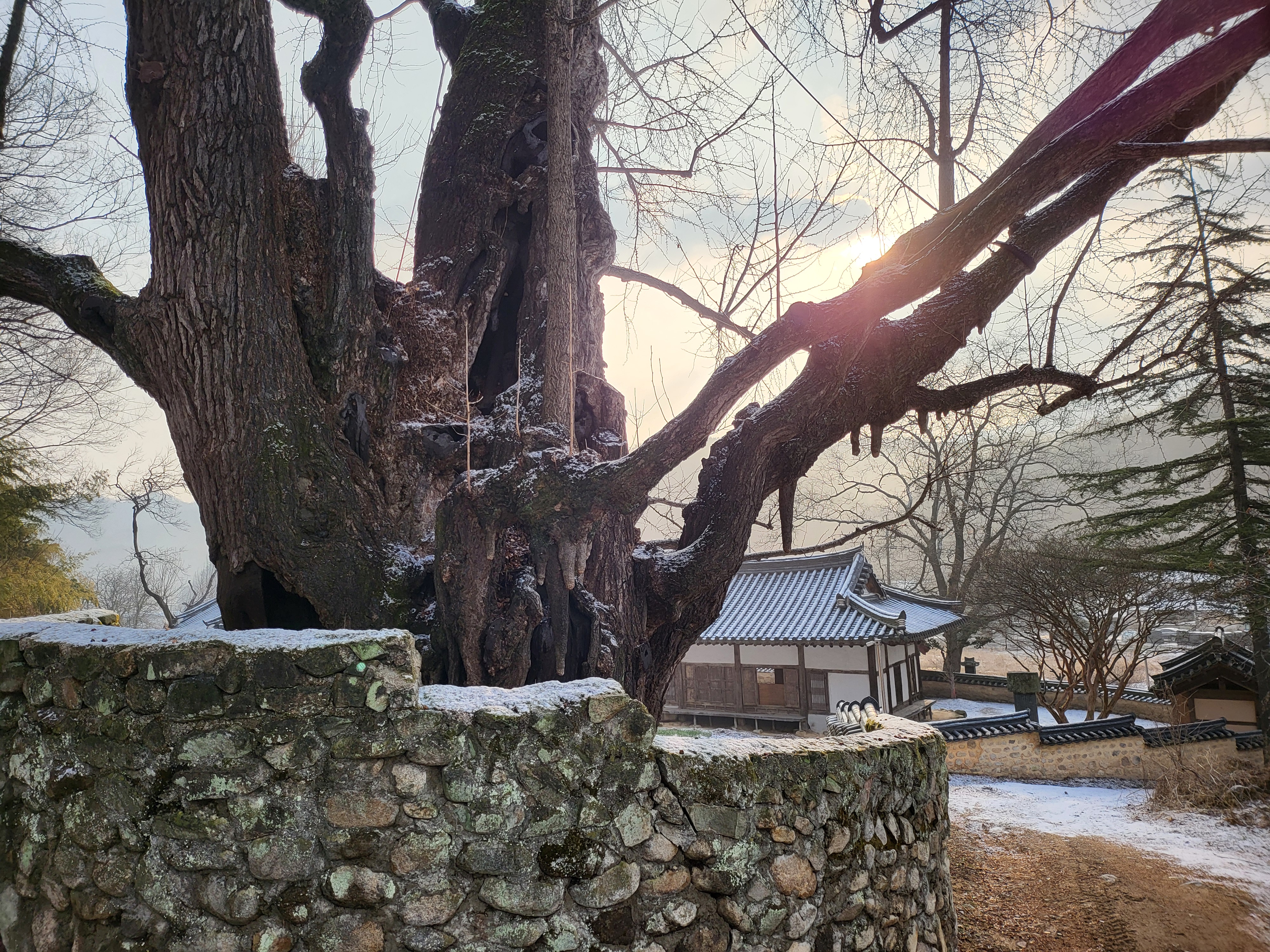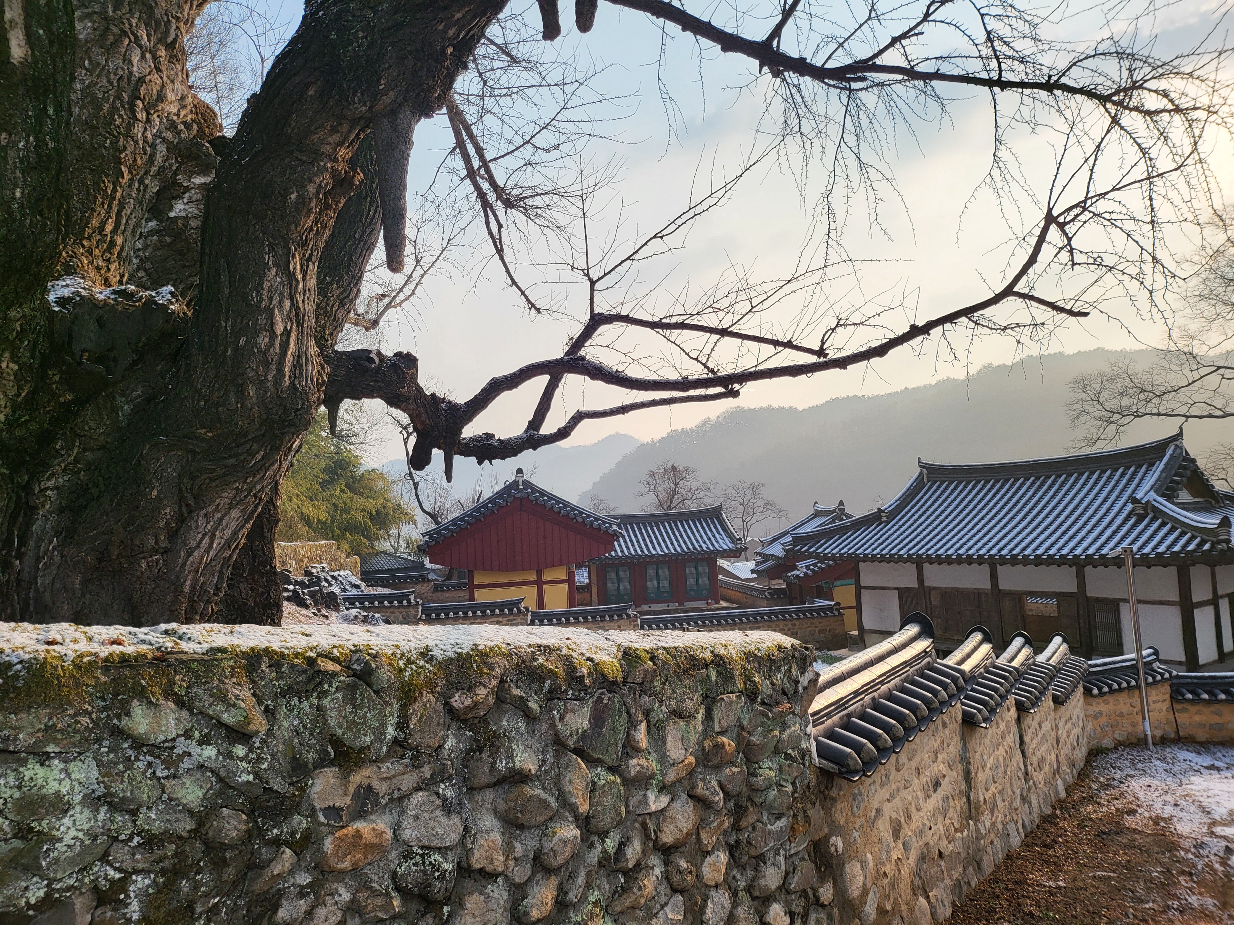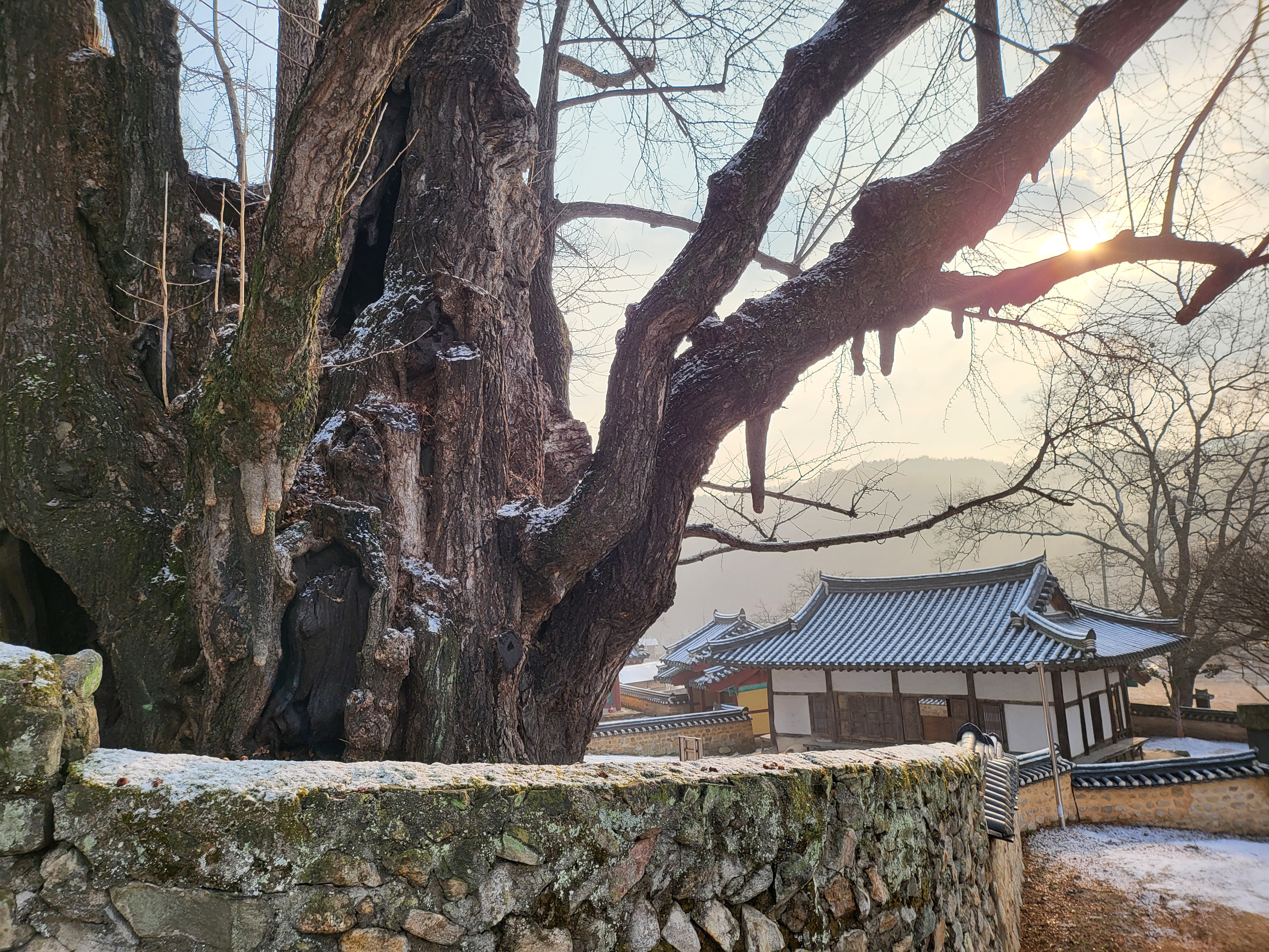 간밤 살짝 뿌린 눈이 녹아내린다.