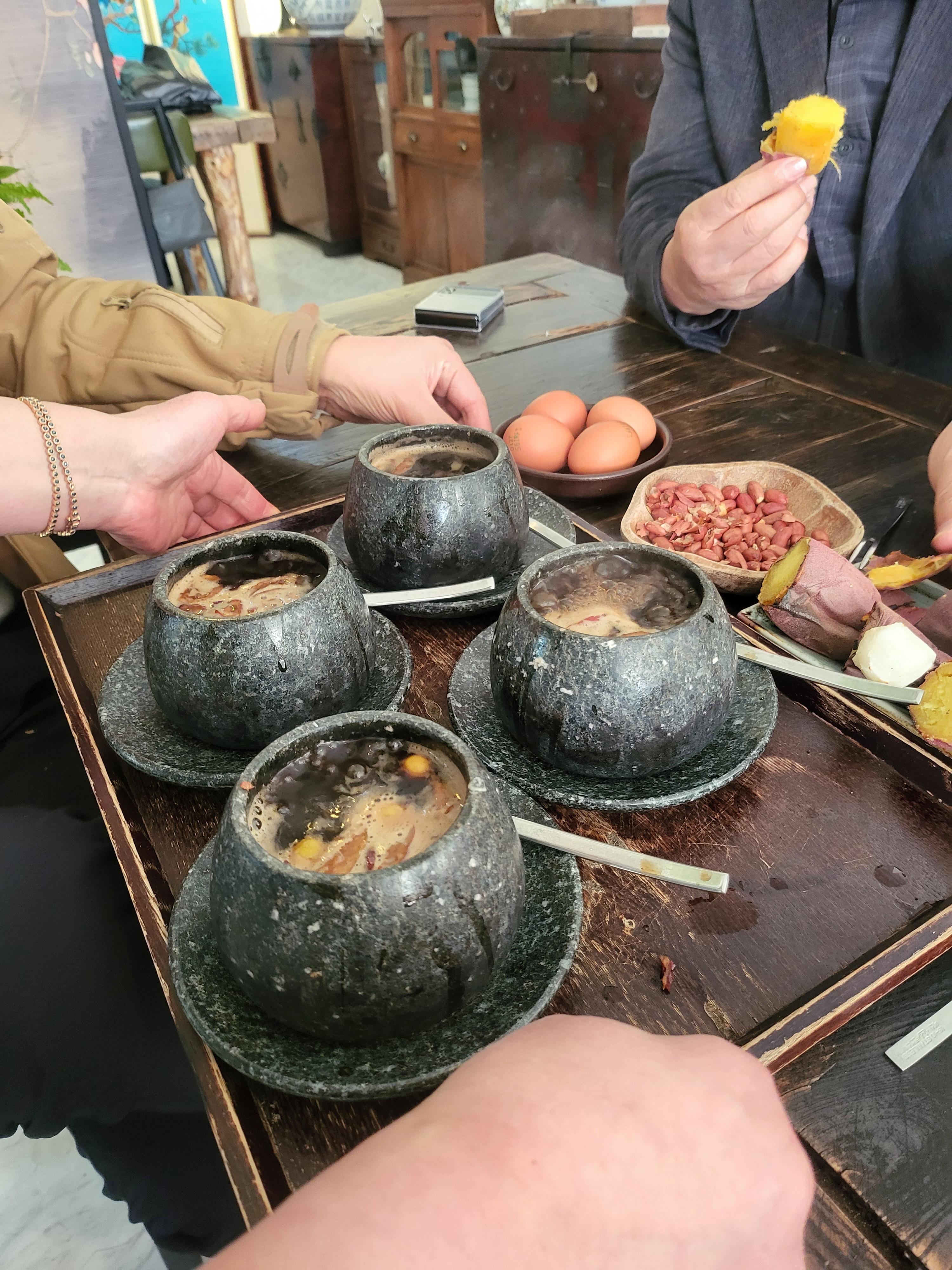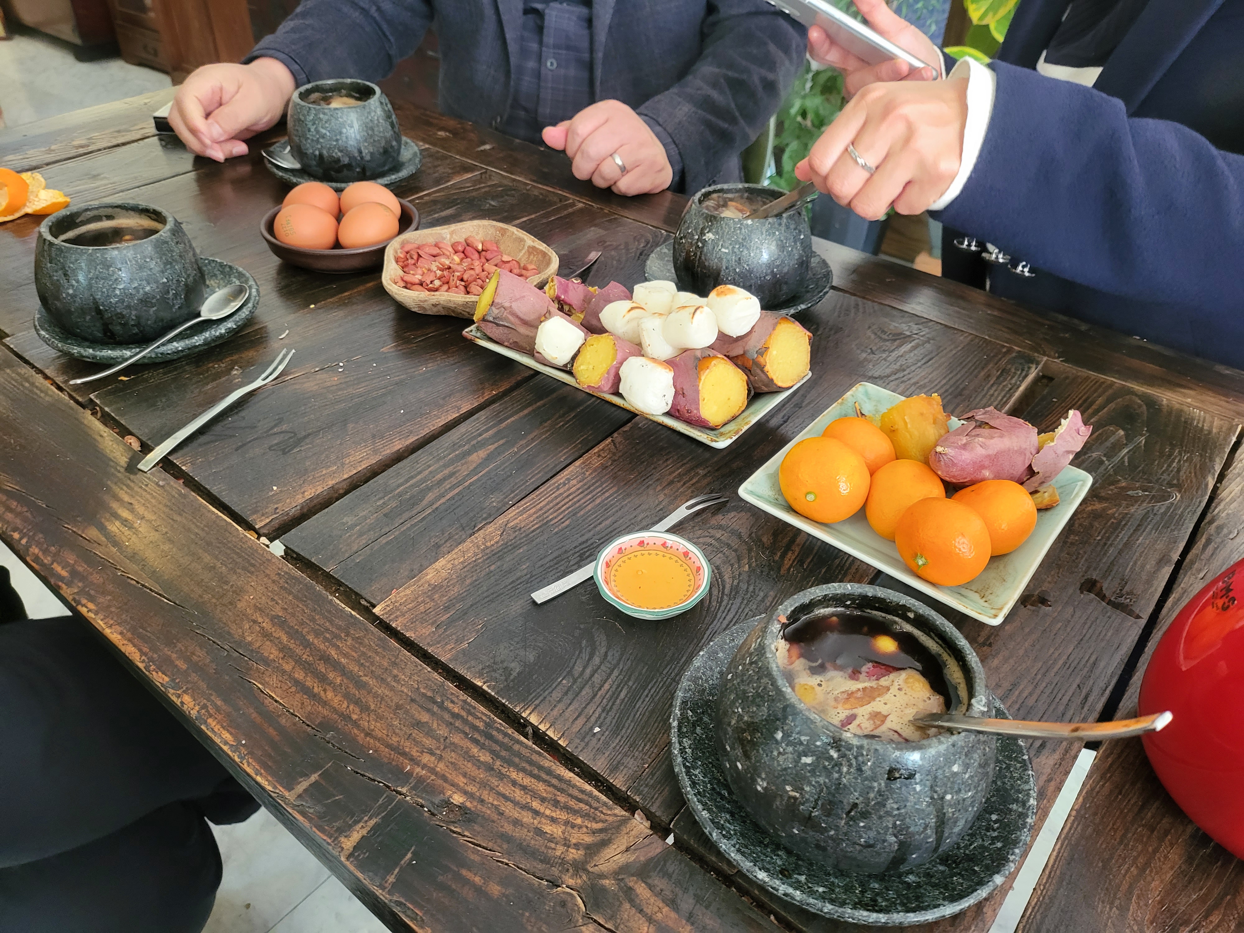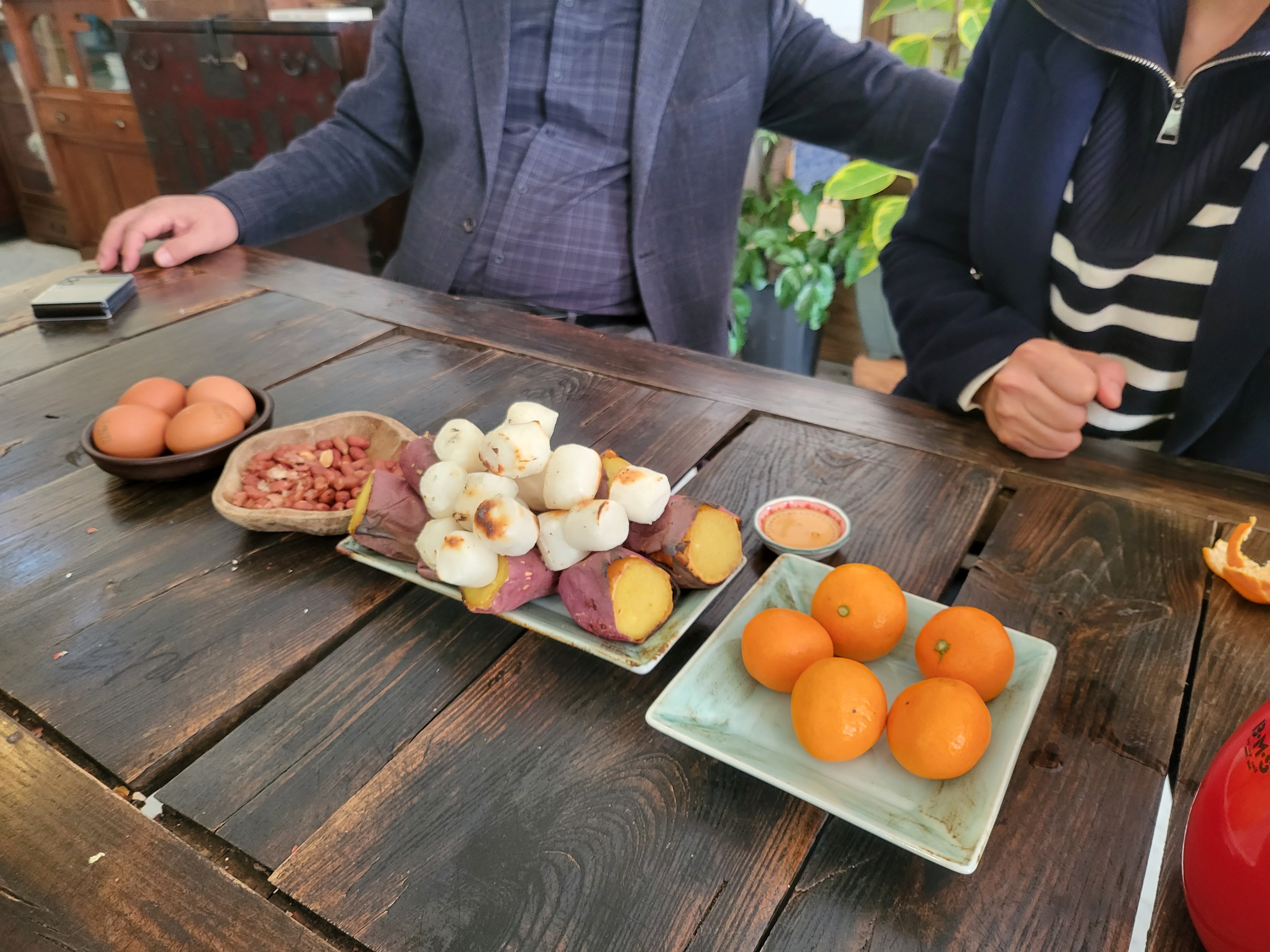 저 계란은 쌍화차 특징하는 그 날계란 아닌가 해서 나중에 우리 테이블에 나왔을 적에 저 계란 두들겨 깨서 넣으려 했더니 맥반석 삶은 계란이라 해서 머쓱했다.