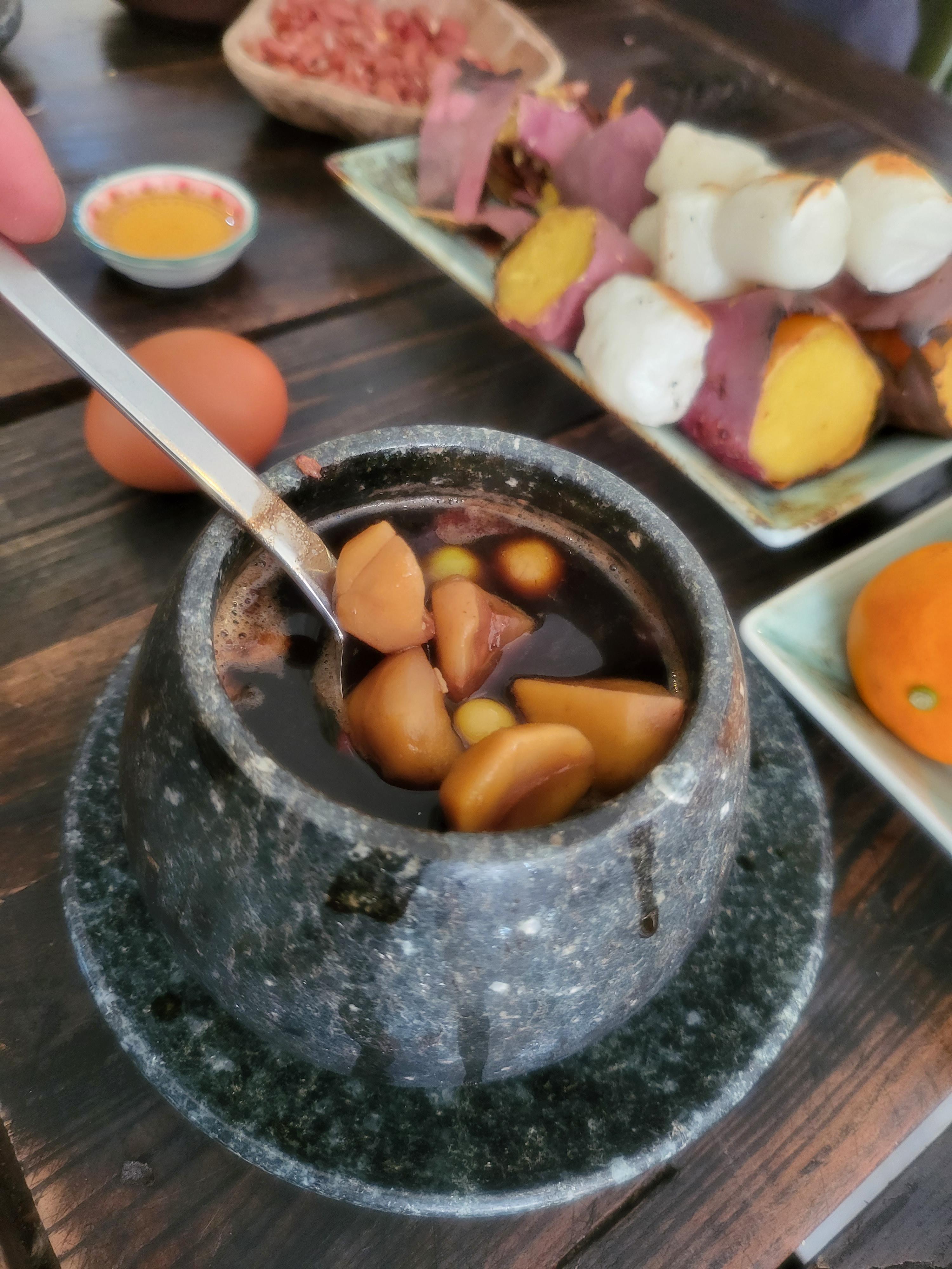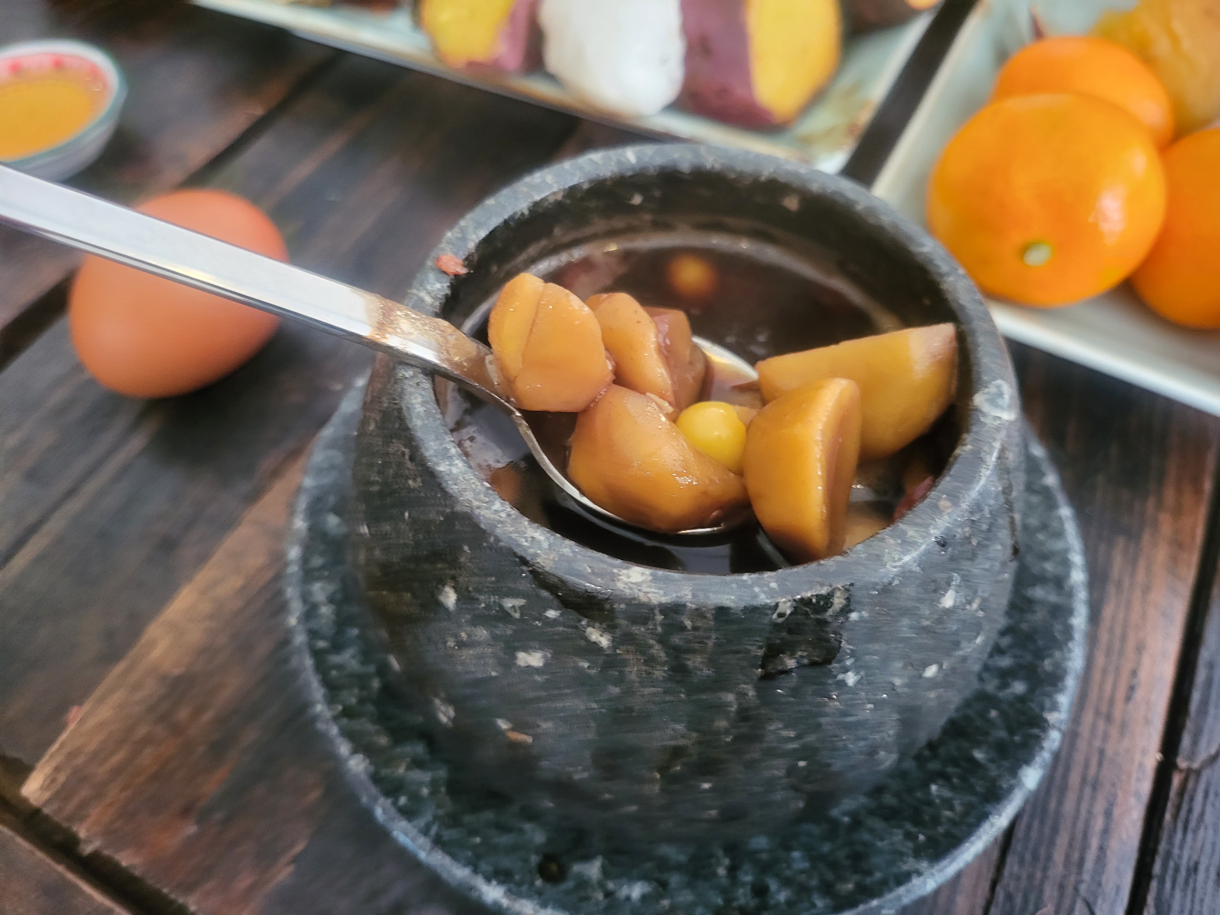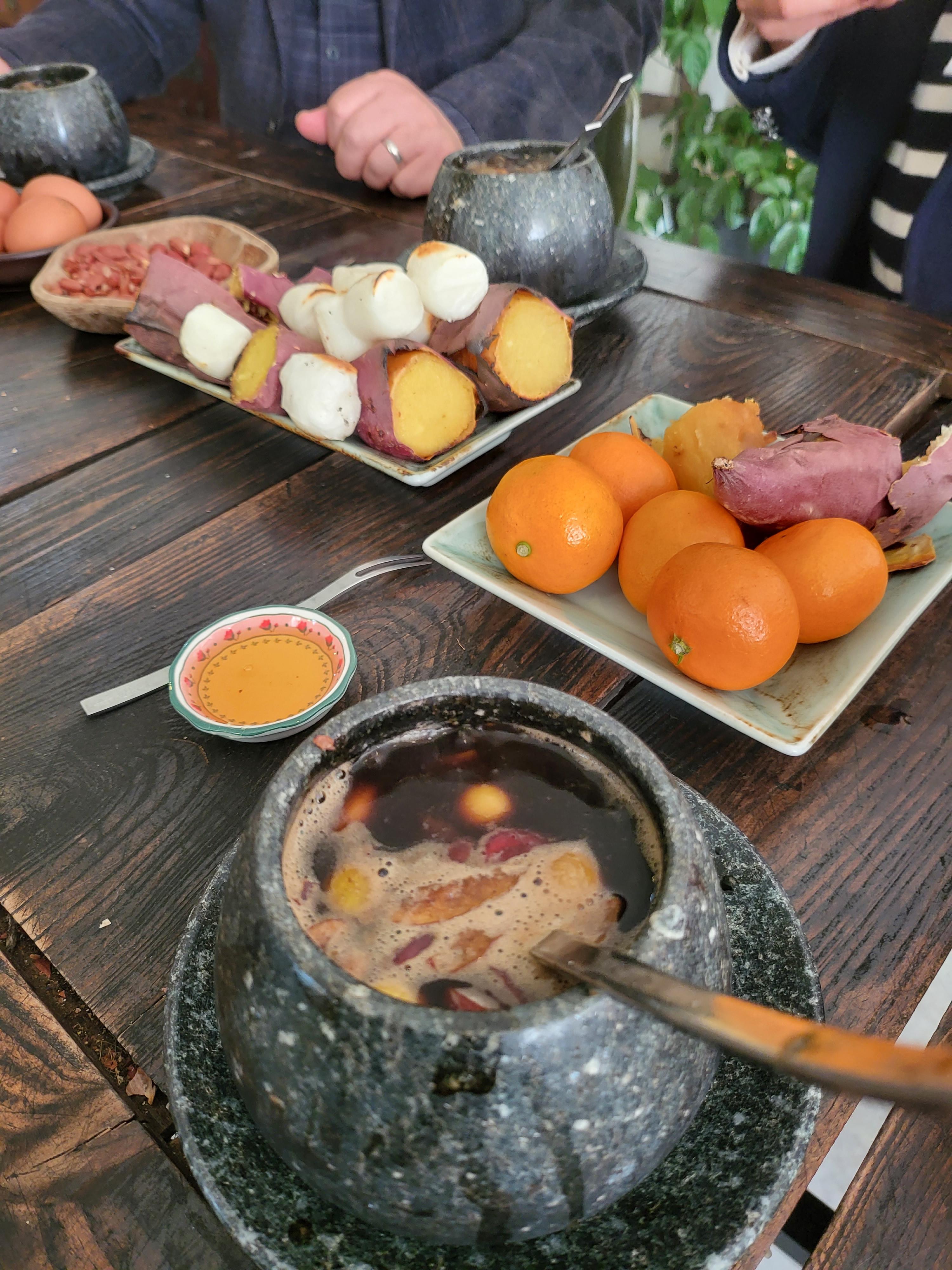 저 계란은 쌍화차 특징하는 그 날계란 아닌가 해서 나중에 우리 테이블에 나왔을 적에 저 계란 두들겨 깨서 넣으려 했더니 맥반석 삶은 계란이라 해서 머쓱했다.