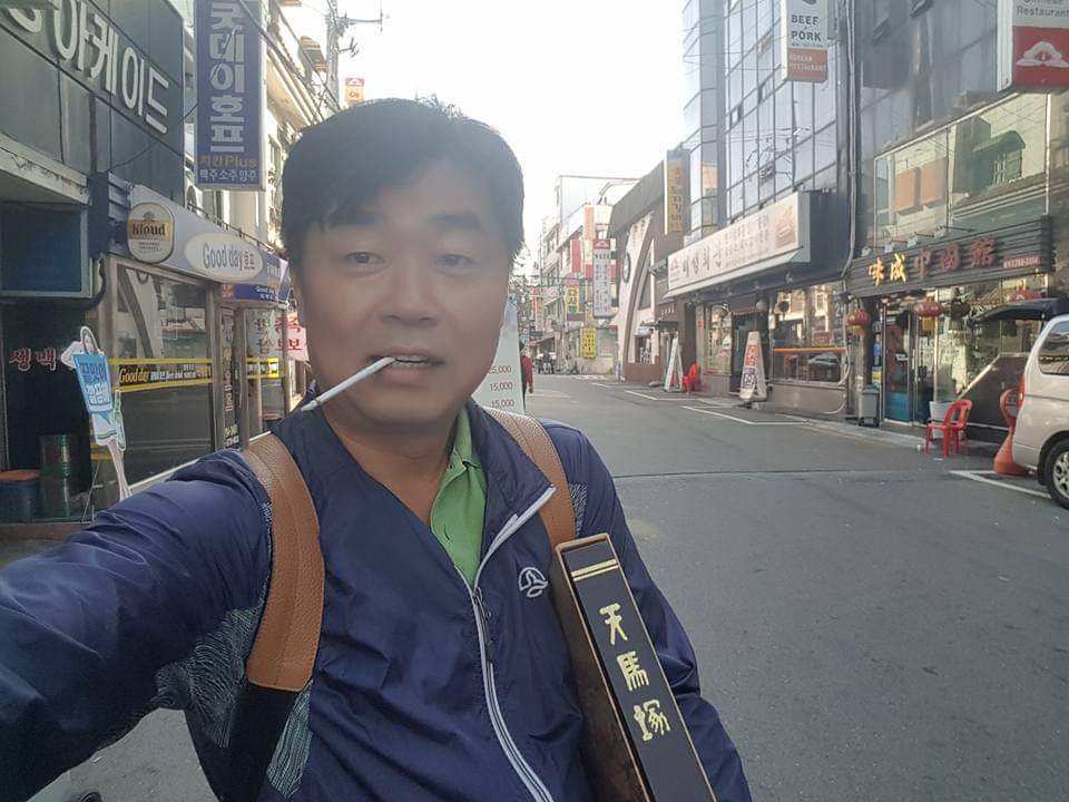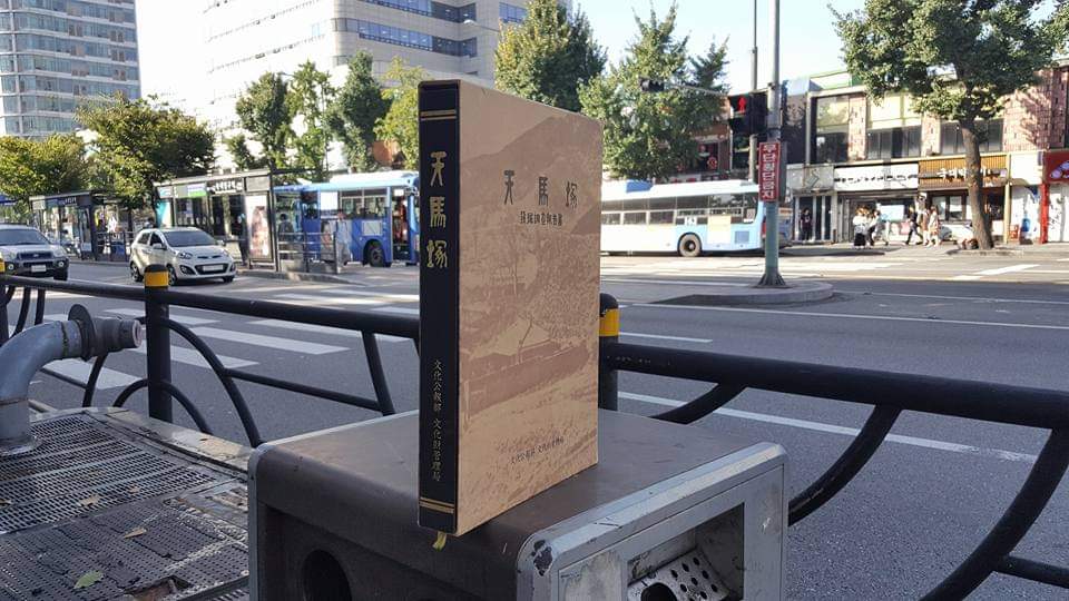 쓰레기통에 버려지기 직전 극적으로 구출되어 버스를 기다리는 《천마총》.