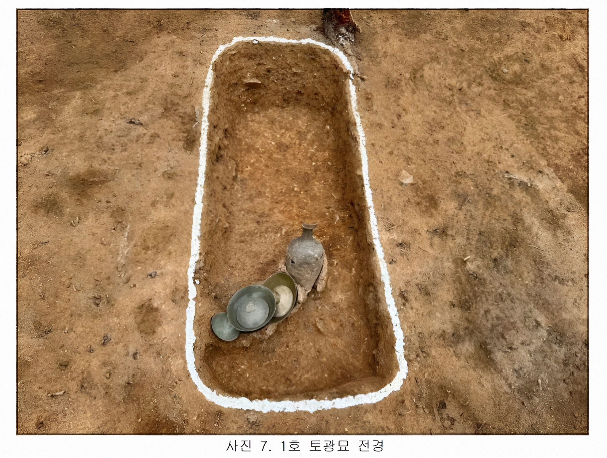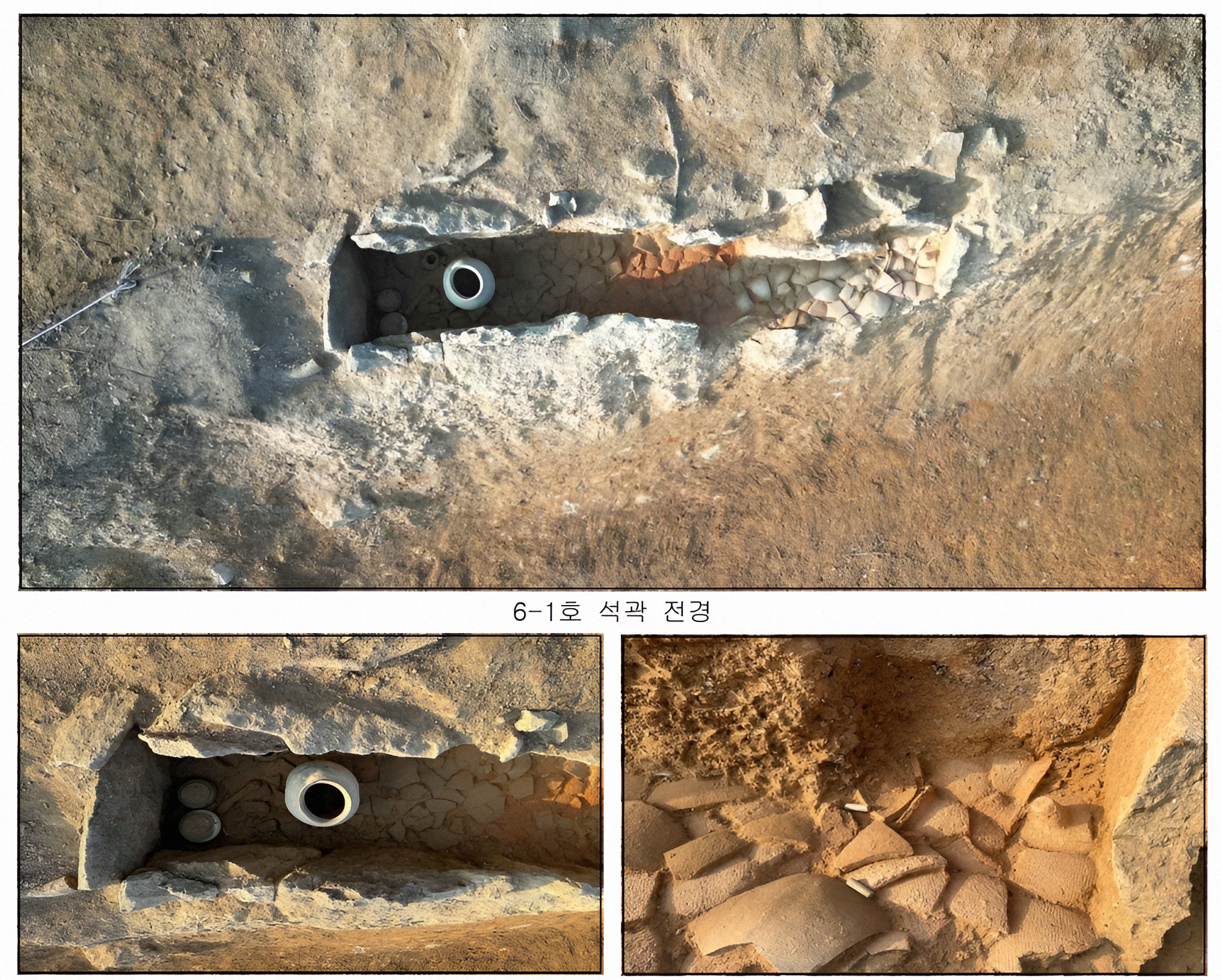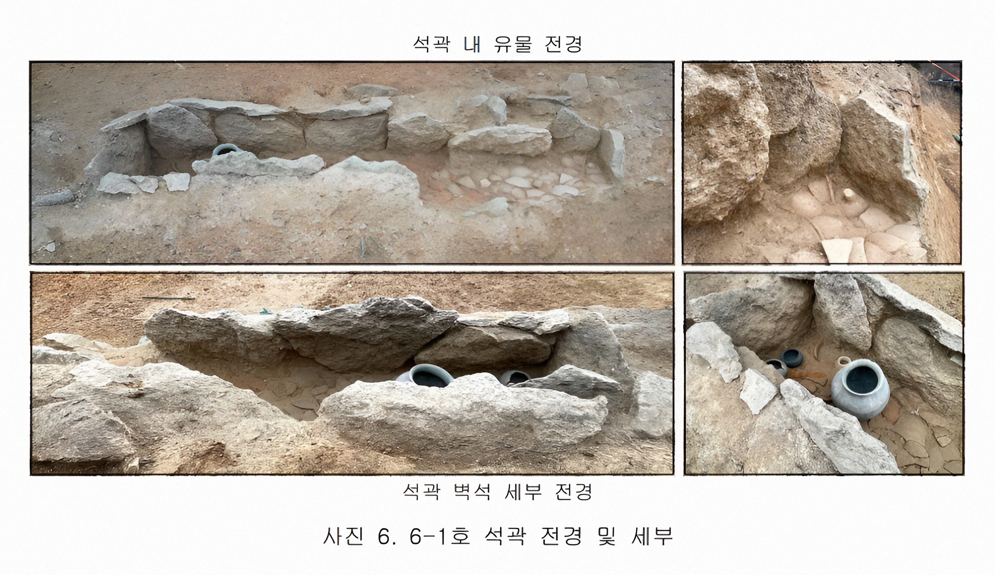 그 결과 지상으로 일부가 노출된 석곽 1기 말고도 그 북동쪽 경사진 데서 고려시대 토광묘 1기가 추가 확인되었다.