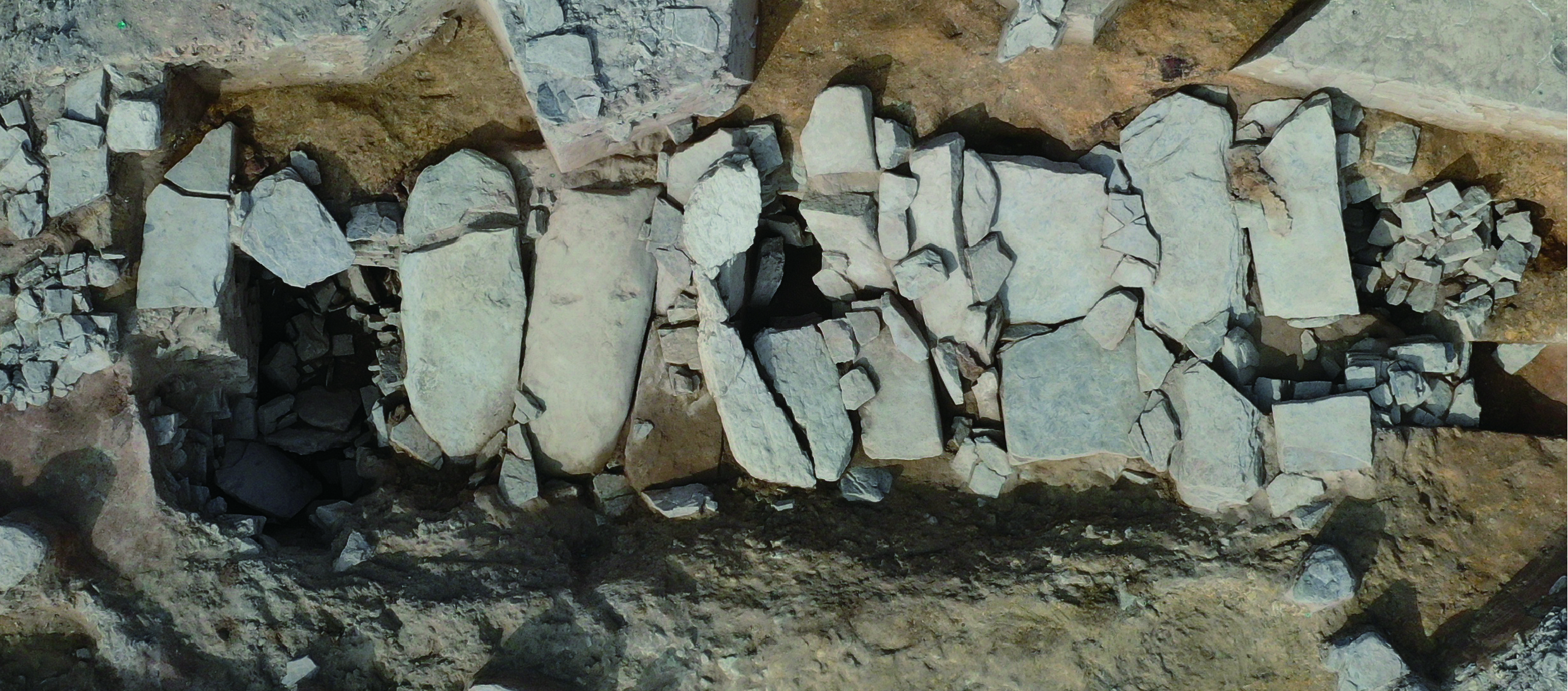 무덤방을 개방하기 전 상태다. 보다시피 길쭉한 돌들로 지붕 혹은 덮개로 삼았다. 저걸 들어내면 내부가 드러난다.