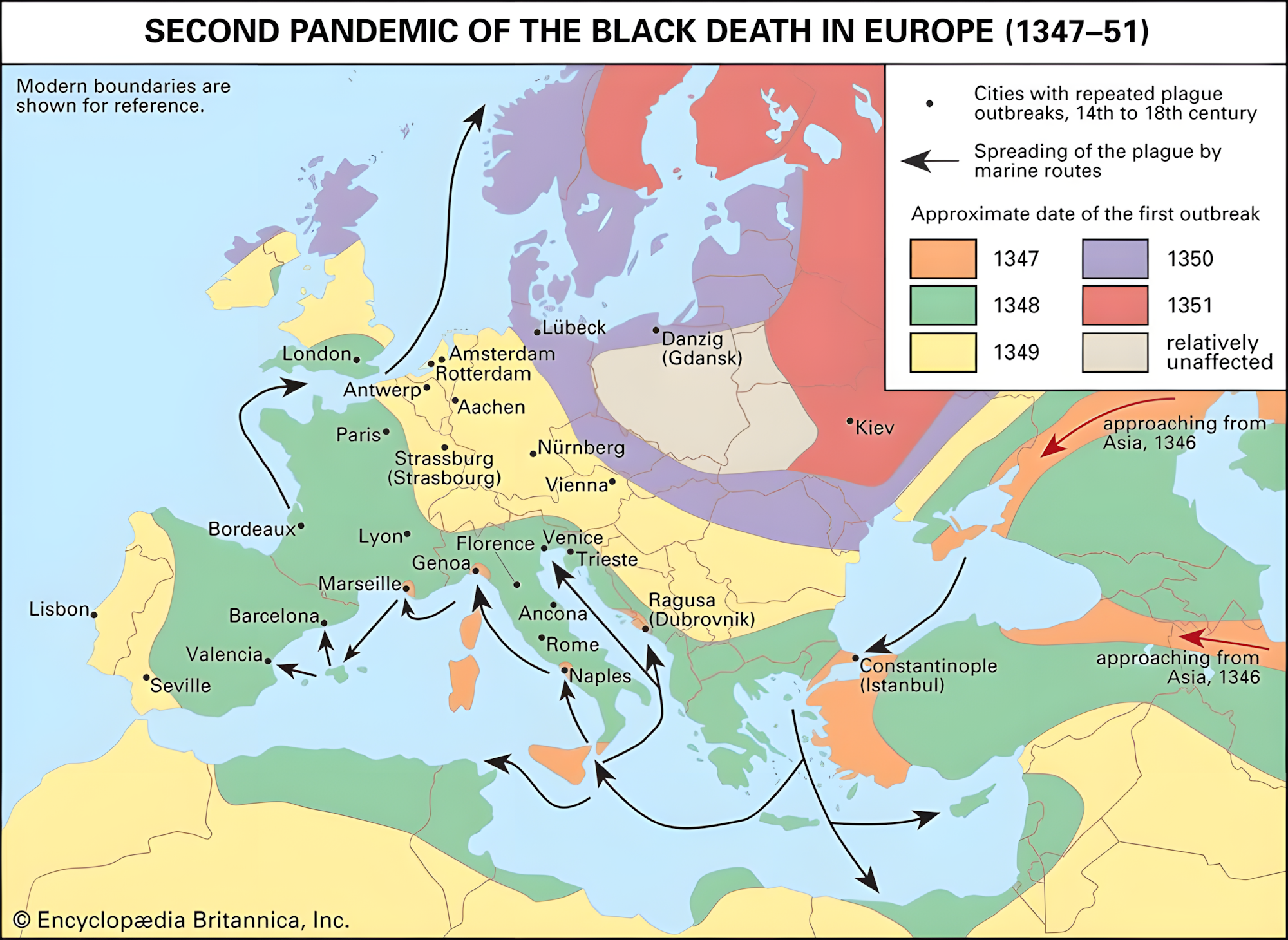 이는 왜냐하면 중세 유럽 흑사병의 처음 진원지가 동방,
