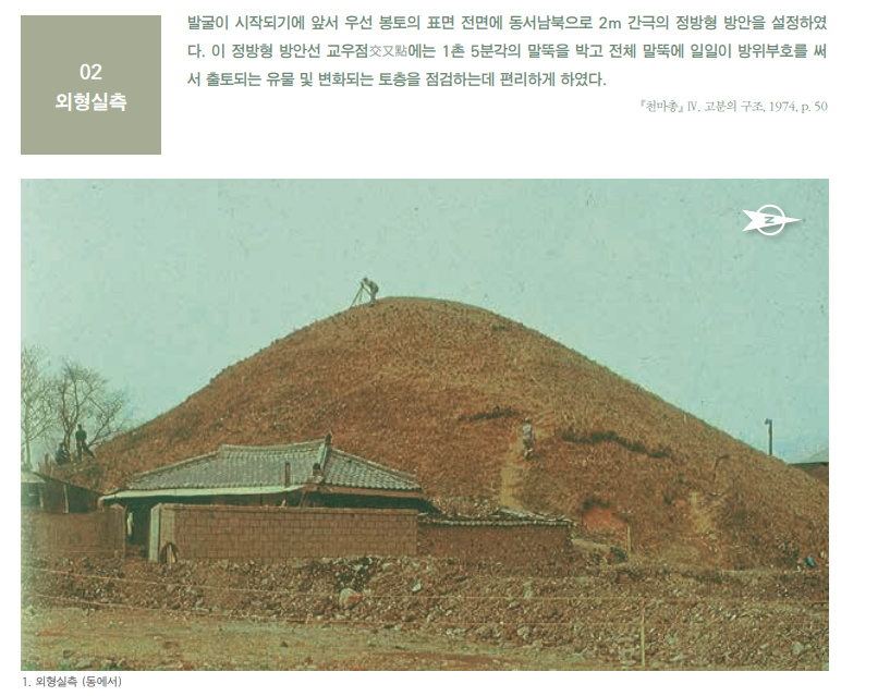 “실측을 하려면 그 중심점이 되는 나무 말뚝을 박아야 합니다. 가장 높은 곳에서 사방을 내려다 볼 수 있는 곳에 설치해야 하니, 당연히 봉분 제일 높은 곳에다가 말뚝을 박지요. 나중에야 그 이유를 알았지만, 당시 발굴단에선 아무도 말뚝을 박으려 하지 않았어요. 그래서 제가 했지요. 왜 남들은 나서지 않았는가? 무덤에다 말뚝 박으면 부정 탄다 해서 아무도 나서지 않았던 것입니다. 저야 그런 사정을 알 턱이 없었지요.”