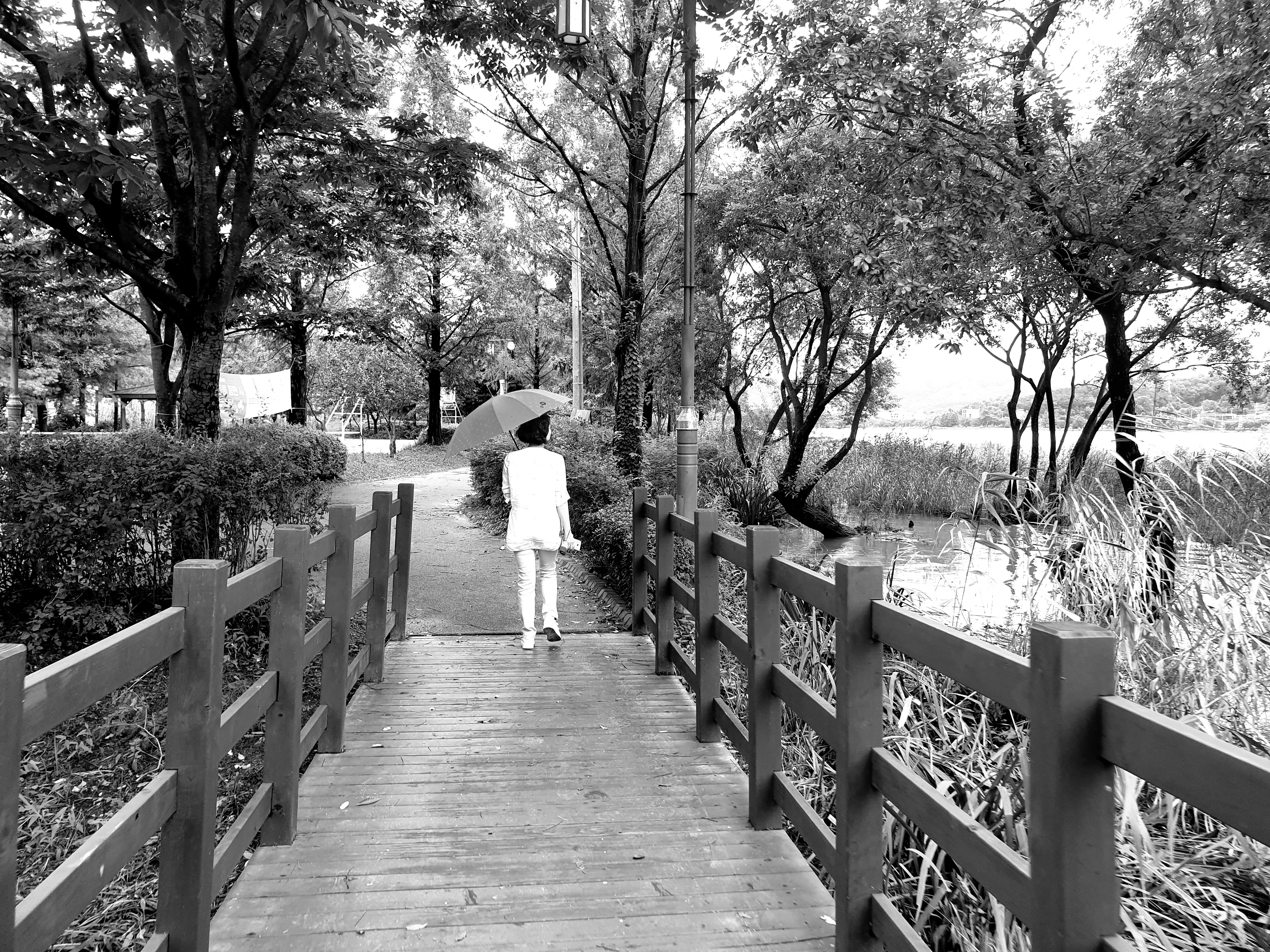 또박또박 때리는 걸음에 나무다리는 삐걱삐걱이라 응답한다.
