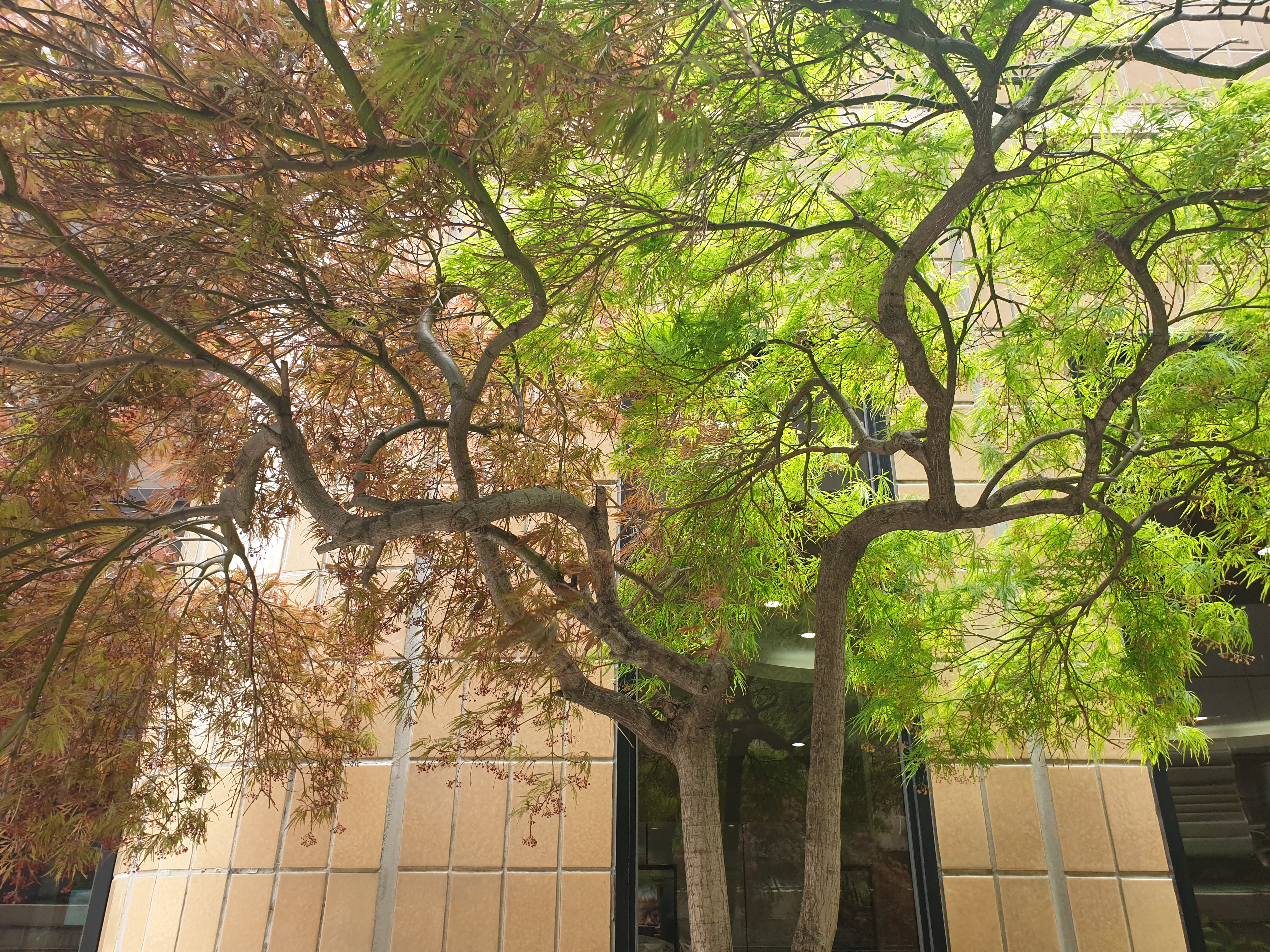 한데 이런 아수라백작 같은 단풍나무를 인사동 어느 건물채 화단에서 조우했으니, 분명 몸통은 하나인데 한쪽은 연두색 이파리요 다른 쪽은 갈색이라, 이런 현상은 접붙이지 아니하면 있을 수 없는 현상이라, 살피니 역사 접을 붙인 나무라, 갈색 쪽 줄기에서 포경수술 자극 흔연하더라.