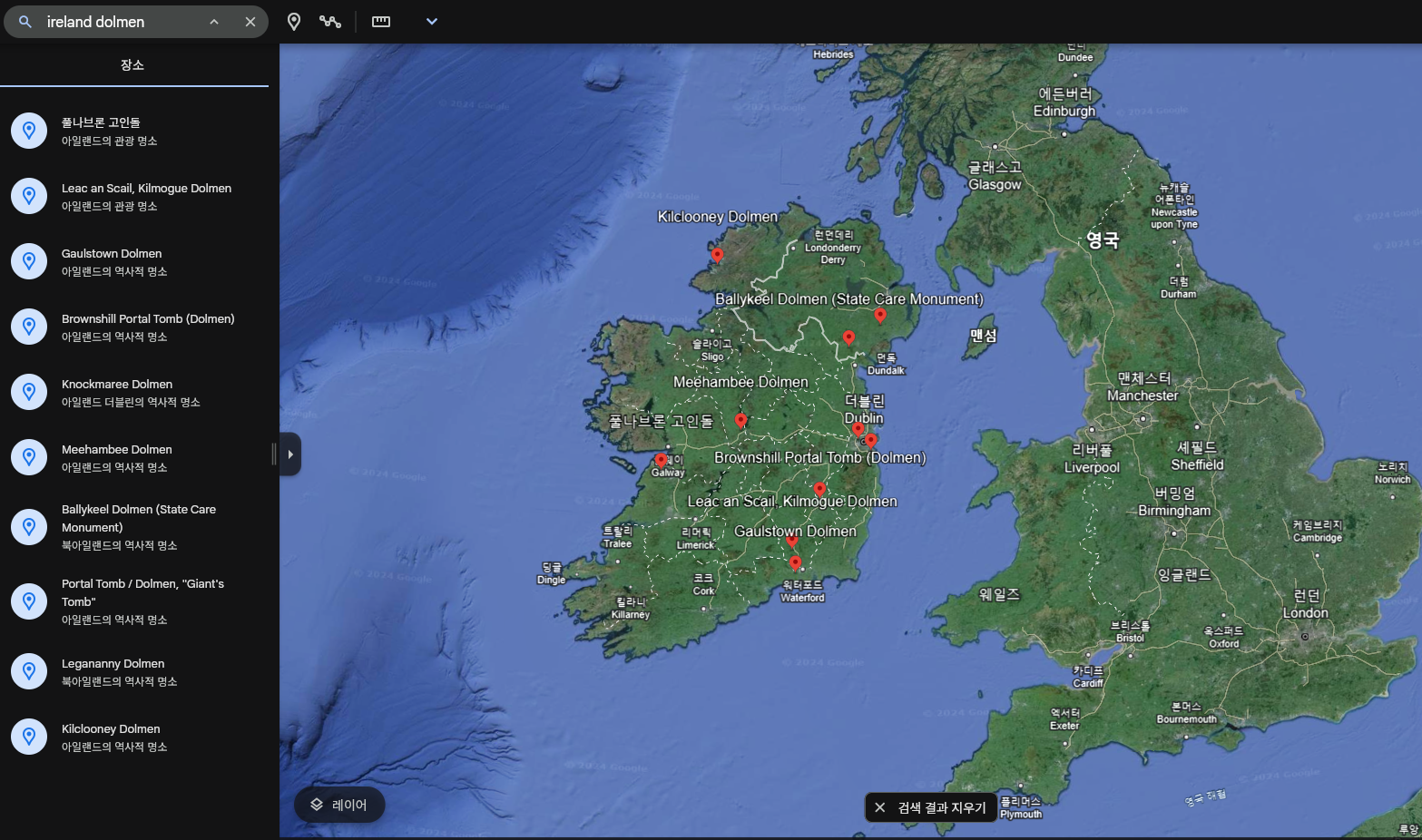 앞서 잠깐 사례 하나로 소개했지만, 우리네 고인돌과 아주 흡사한 그런 dolmen이 아일랜드 곳곳에는 현재 파악된 것이 170기 정도라 한다.