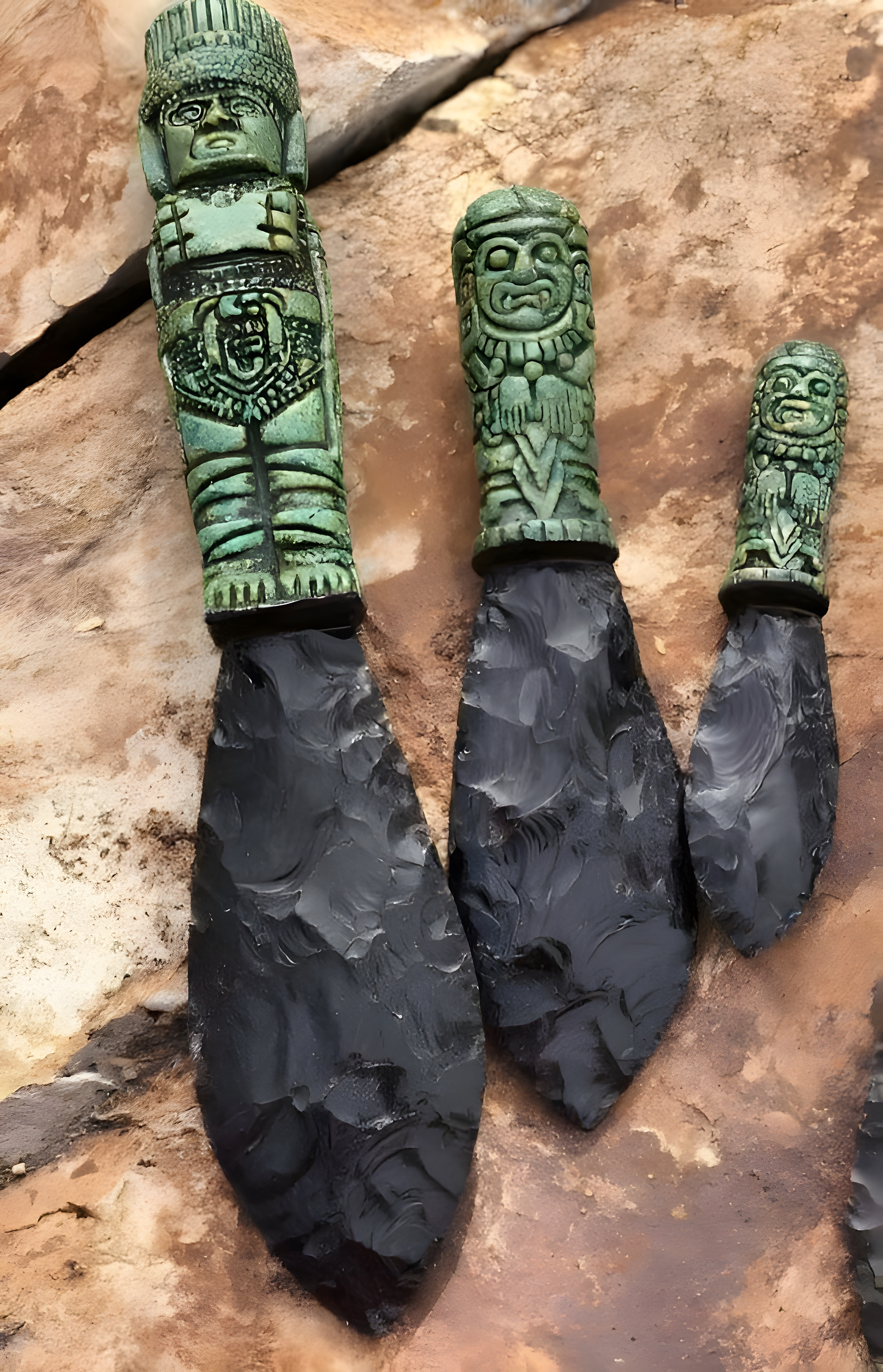 Aztec ceremonial knives (made of Black Obsidian stone)