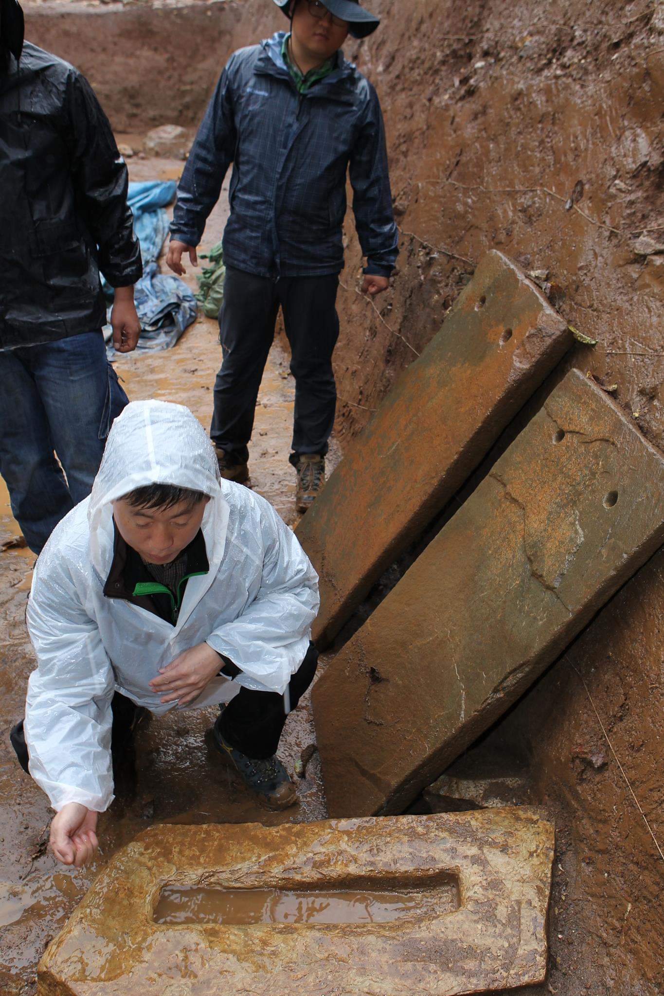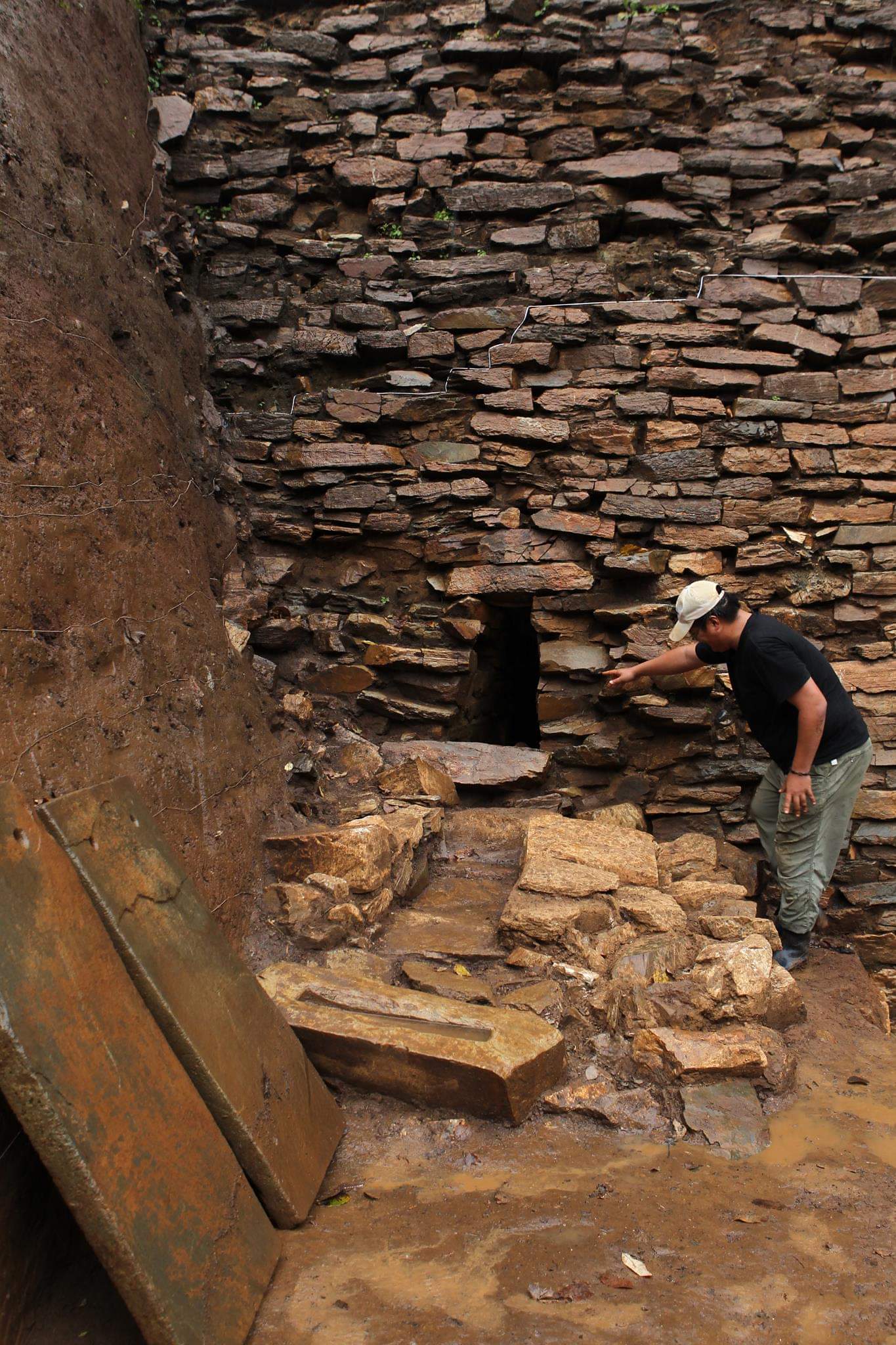 제 생각엔 차단석입니다. 수위조절용이러기 보다는 침투 방지용.. 맹수나 적군... 둘 다...저렇게 거칠어서야 어찌 수위를 조절한다고 하겠으며.. 수위조절은 목제로 된 마개를 사용해도...예컨대 벽골제에 복원해 논 수리시설처럼...