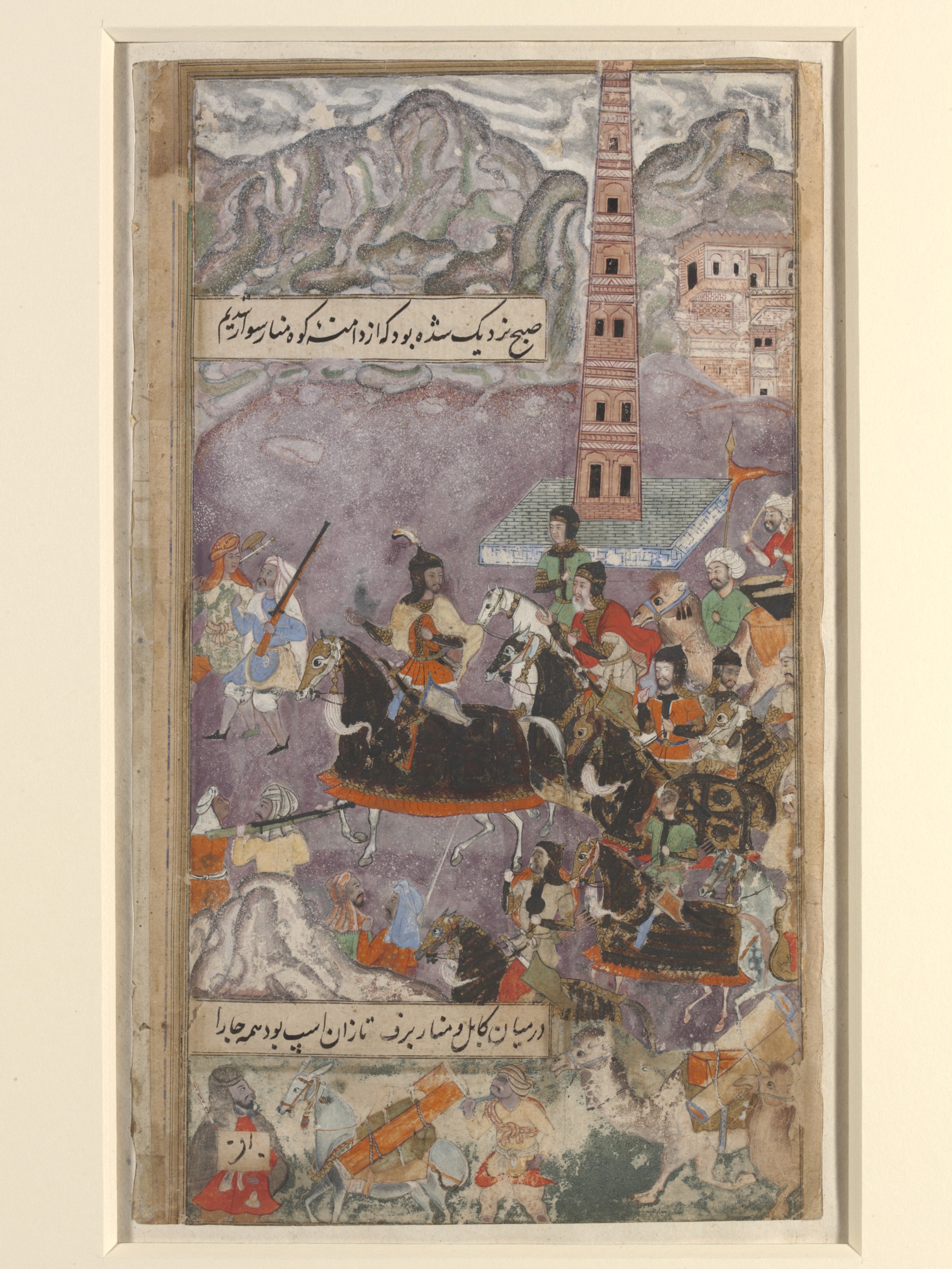 이를 보면 주변 큐슈칵? 언덕 Kushkak hill에는 일군의 돌무대기가 있어 거기에 11~12세기 헤브루 글자를 새겼다 하며, 또한 하리강을 따라 형성된 둔덕에 자리잡은 Ghurid settlements에는 성채와 탑 흔적이 있다 하며, 그런 흔적들이 첨탑 동쪽을 따라 있다 한다.