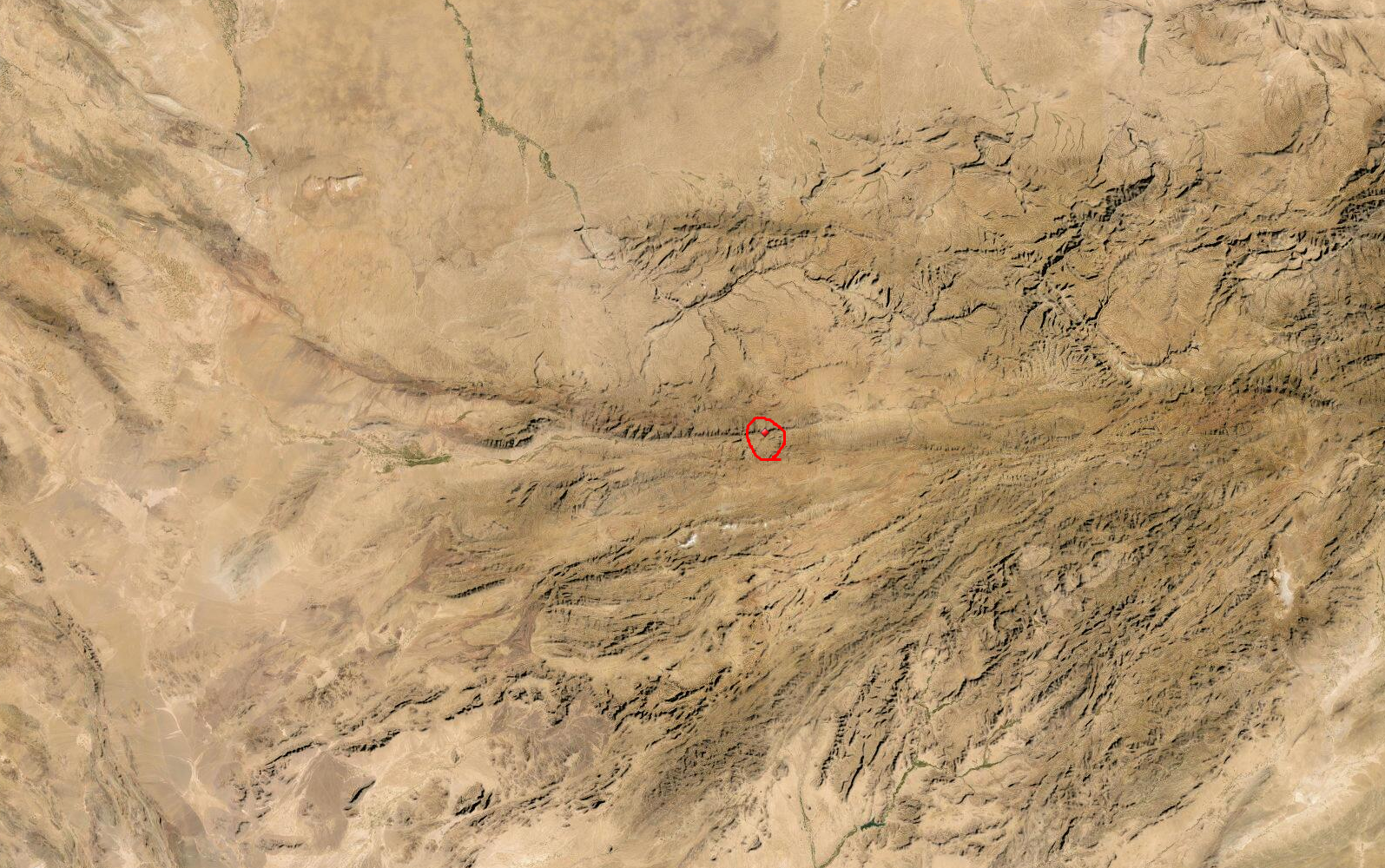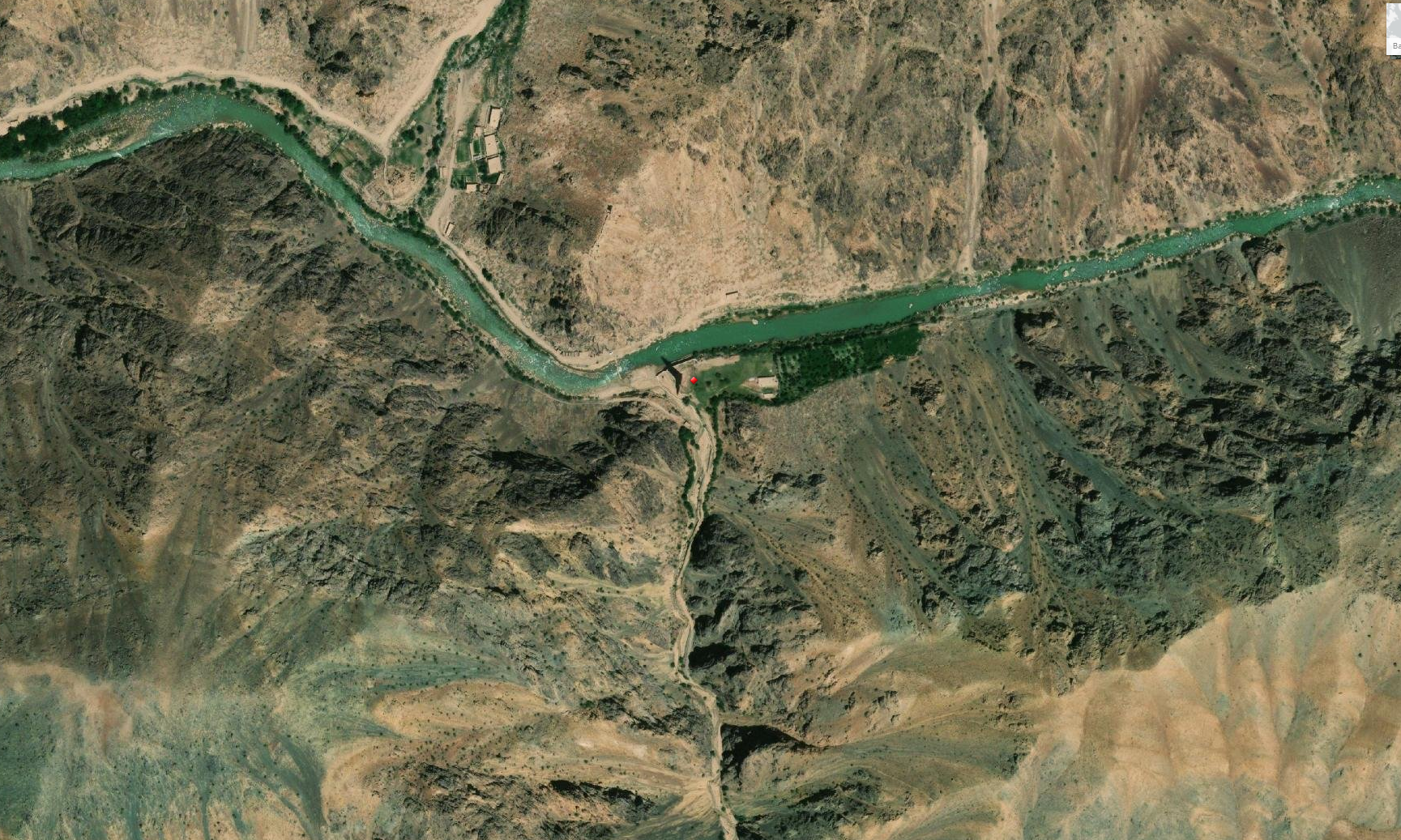 좀 더 상세한 정보를 찾으면 이 첨탑은 해발 1천900지점에 자리잡았다 하니, 고원지대임을 본다. 나아가 현재 기준이기는 하나, 주변으로는 이렇다 할 마을 하나 없는 절해고도 같은 곳이다. 주변은 온통 민둥산 사막산이며, 이 첨탑이 자리한 곳은 험준한 계곡을 뚫고 서쪽에서 동쪽(?) 방향으로 흐르는 얌강 the river Jam이 역시 계곡을 뚫고서는 남쪽에서 흘러드는 하리-루드강 the Hari-rud River이라는 지류를 빨아들이는 딱 그 지점에 섰다.