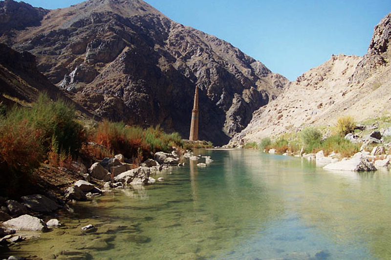 The 65m-tall Minaret of Jam is a graceful, soaring structure, dating back to the 12th century. Covered in elaborate brickwork with a blue tile inscription at the top, it is noteworthy for the quality of its architecture and decoration, which represent the culmination of an architectural and artistic tradition in this region. Its impact is heightened by its dramatic setting, a deep river valley between towering mountains in the heart of the Ghur province.