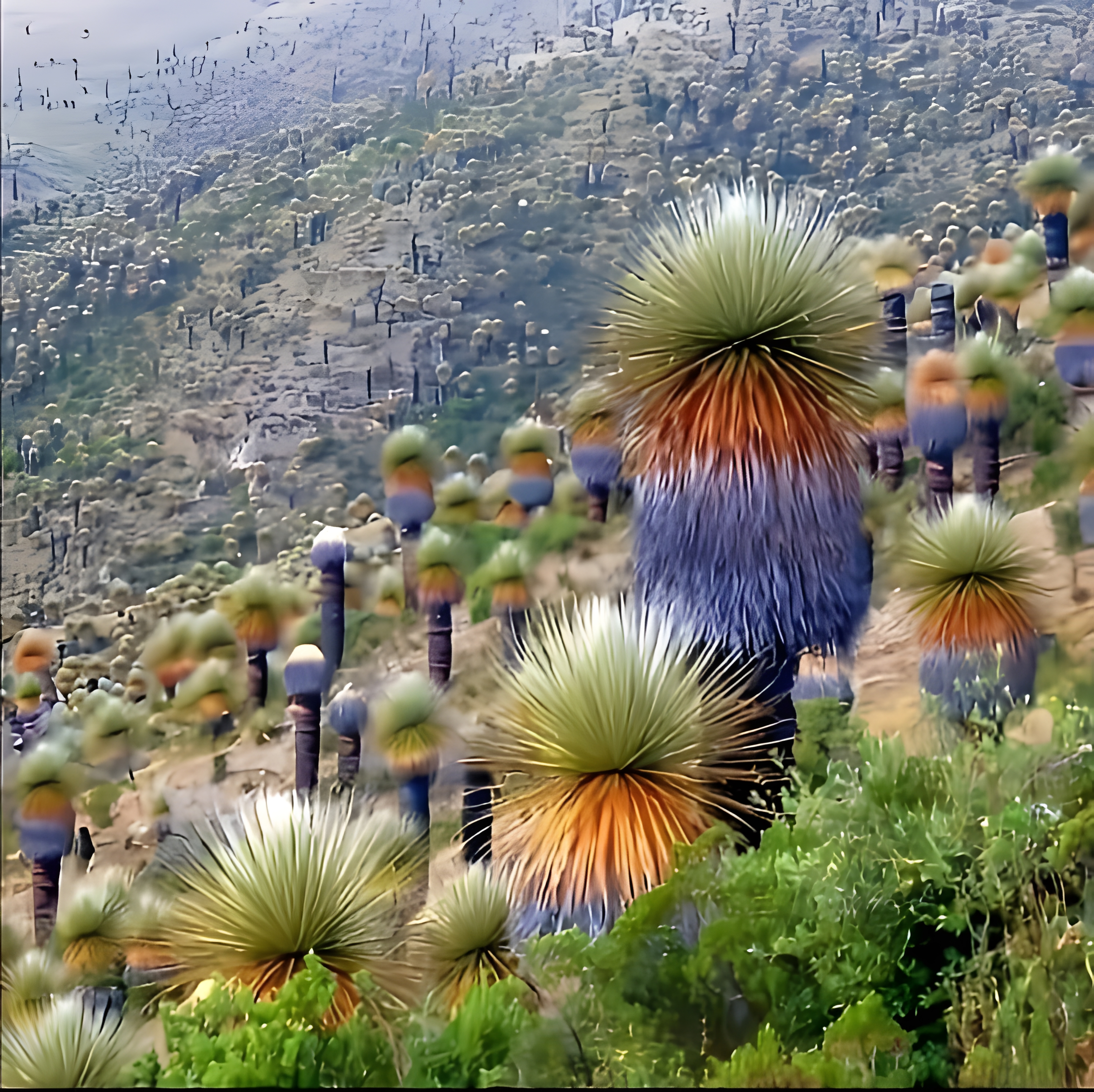 어떤 페이스북 계정에 이런 사진이 오르고, 그 설명에 이르기를 푸야 라이몬디 Puya raimondii 라는 풀나무? 로 일명 안데스의 여왕Queen of the Andes 이라 일컫는다 하면서